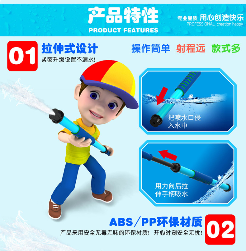 大号水枪水儿童玩具喷水抽拉喷水抽拉式滋吸呲水沙滩漂流打水仗