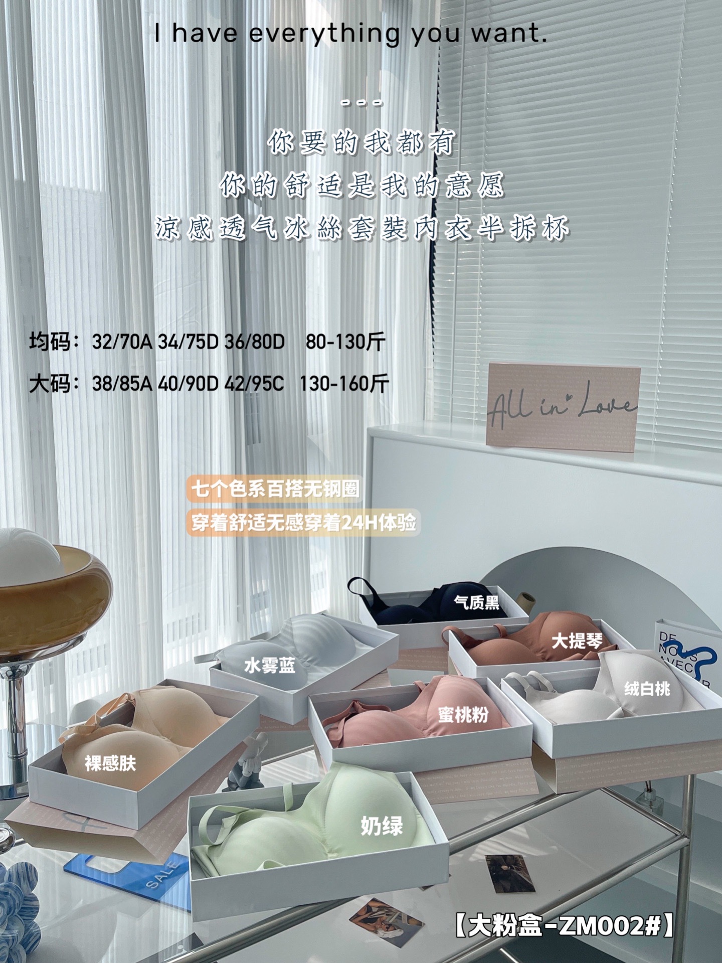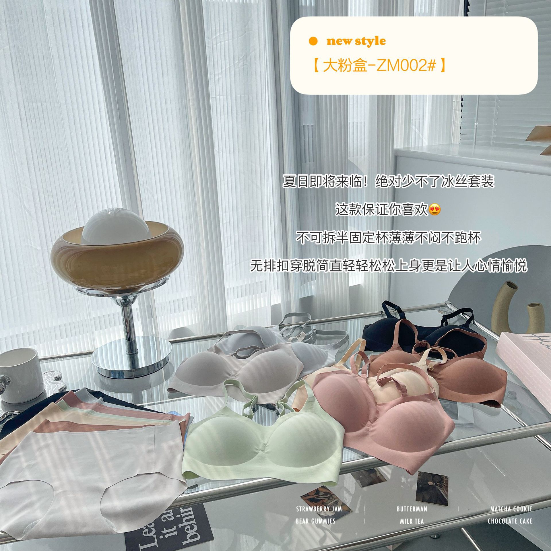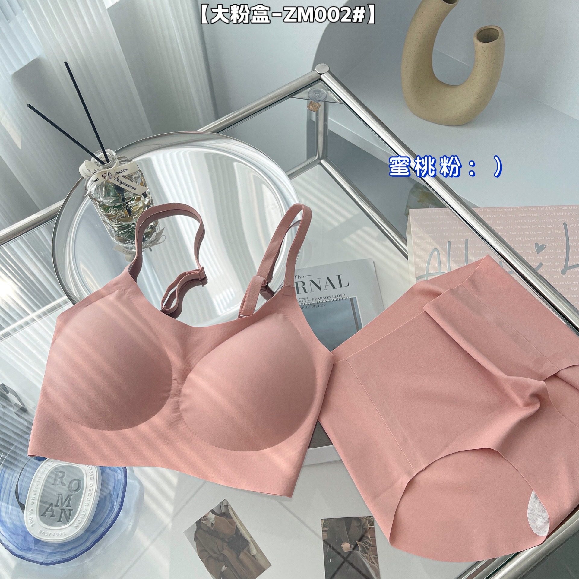 2022爆款无痕内衣内裤套装大牌同款大粉盒吊带美背背心固定杯文胸