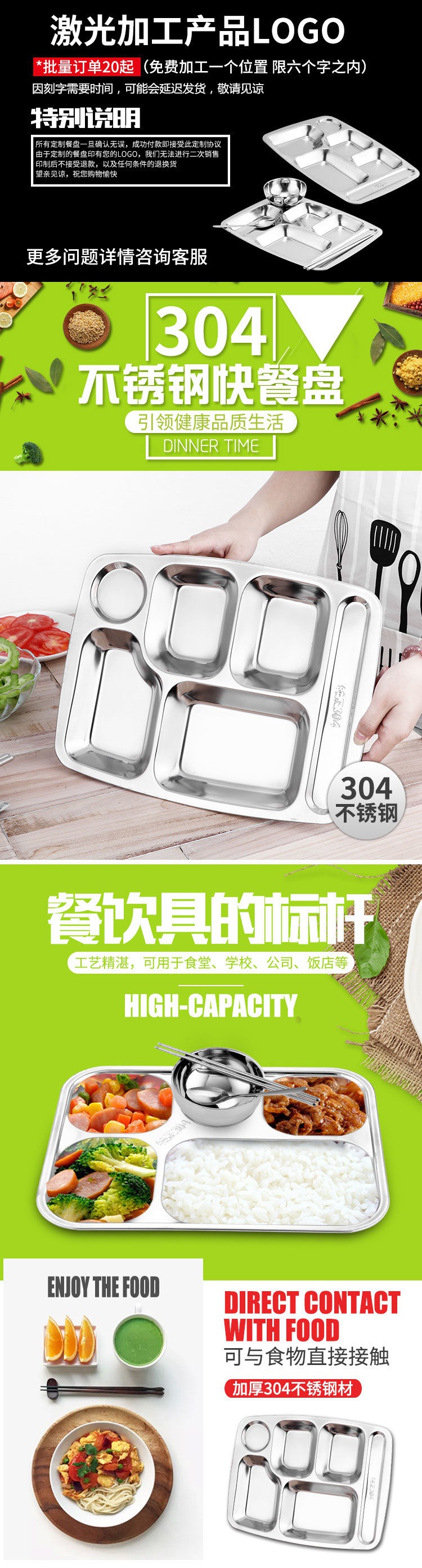 餐盘食堂【加厚不锈钢快餐盘】儿童幼儿园学生成人快餐盘餐具