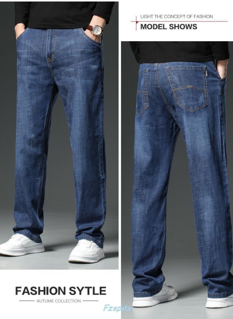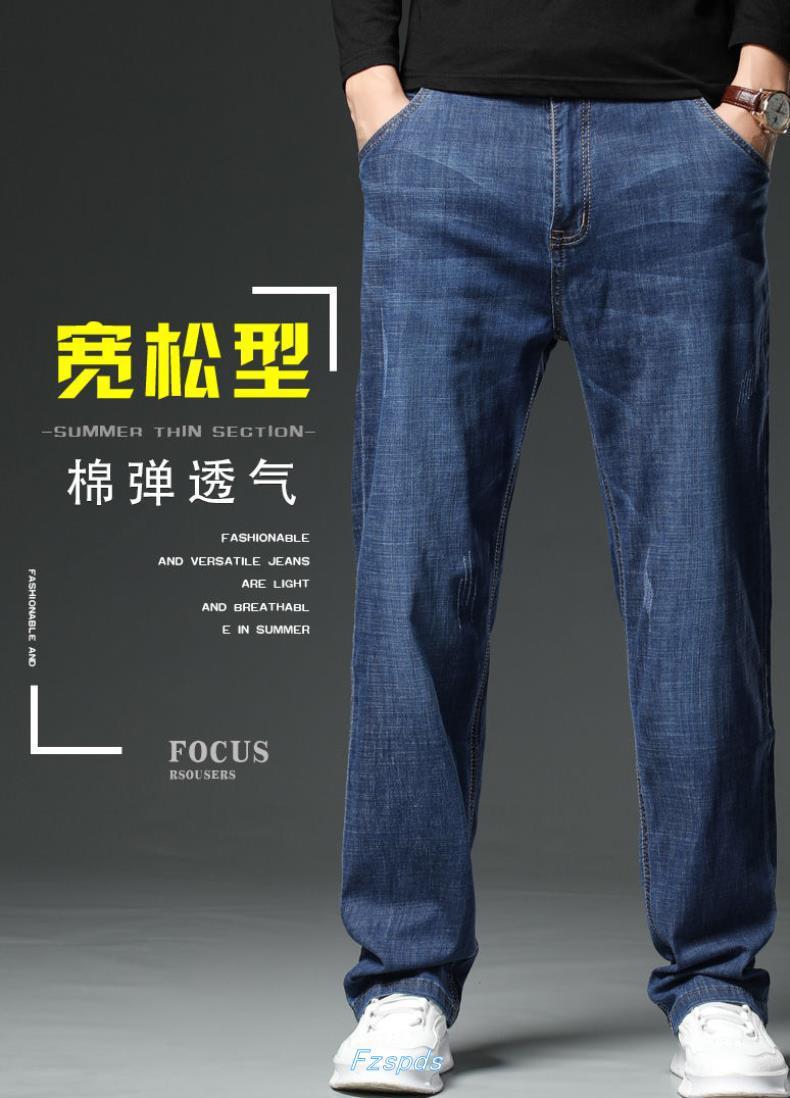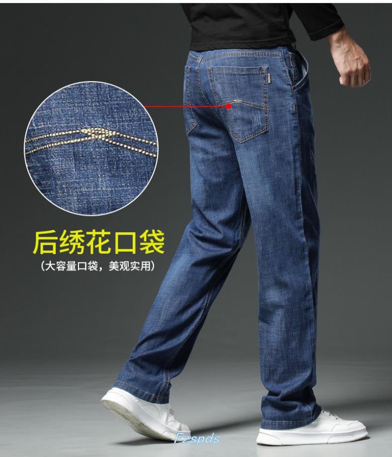 深蓝色阔腿牛仔裤男士宽松直筒大裤脚春秋季弹力休闲春款长裤子潮