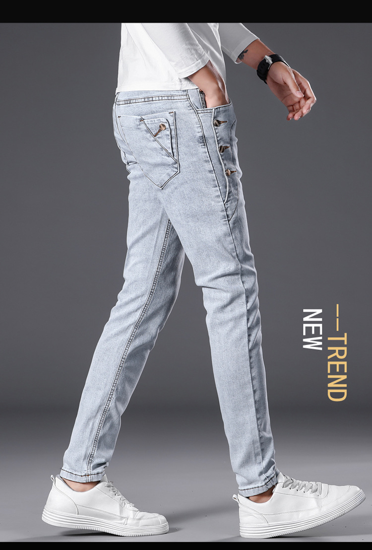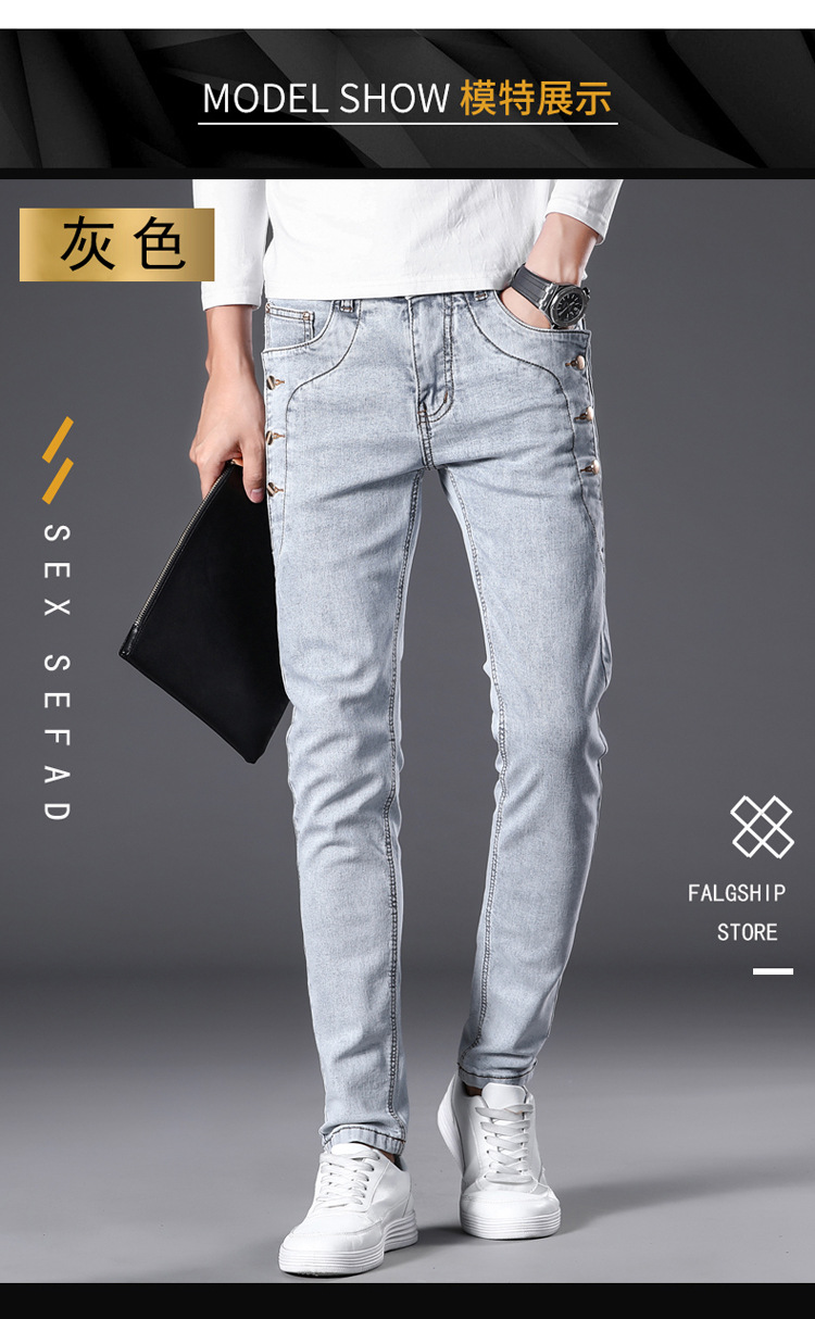 8913烟灰色男士弹力修身小脚牛仔裤男中腰韩版潮男裤子潮厂家直销