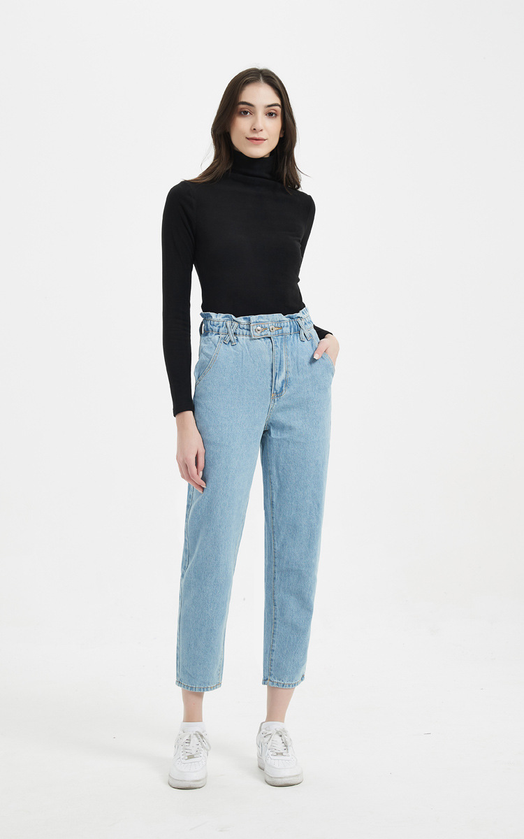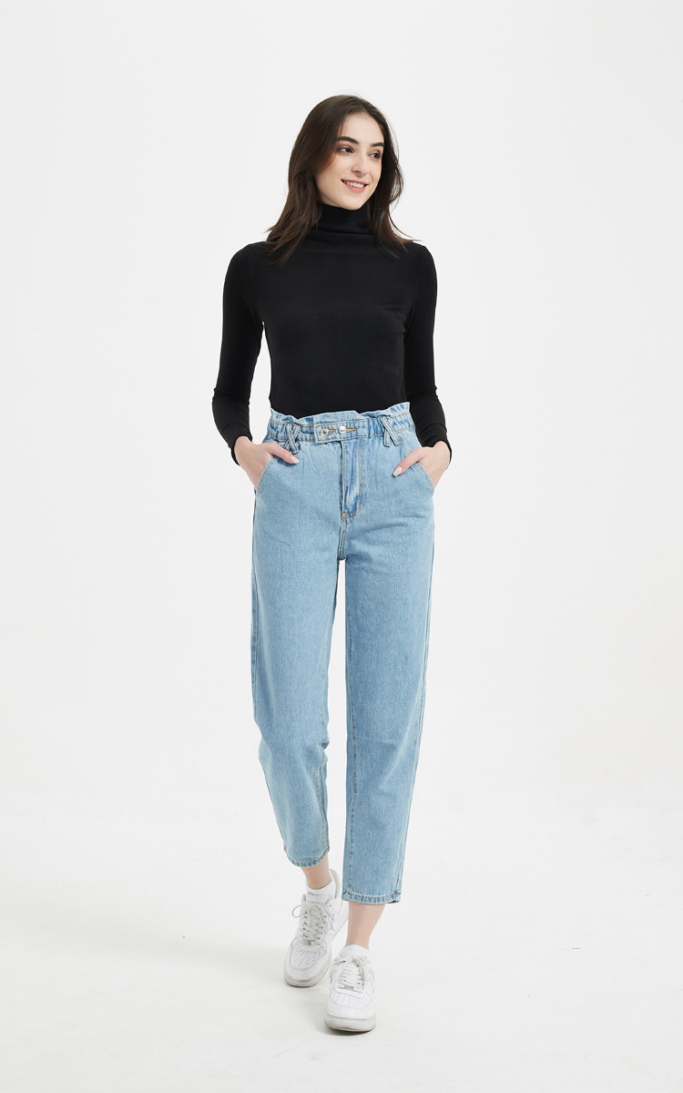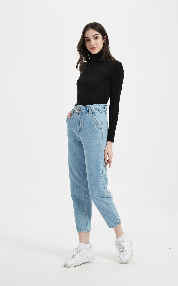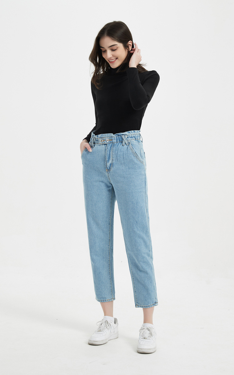 2022亚马逊跨境欧现货女士春季牛仔水洗直筒宽松长裤