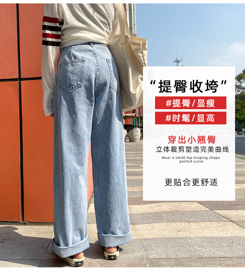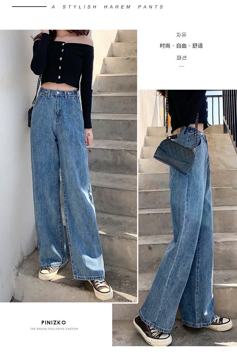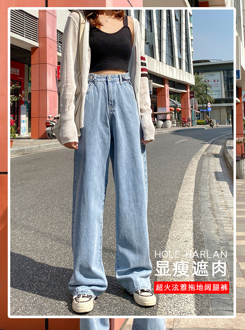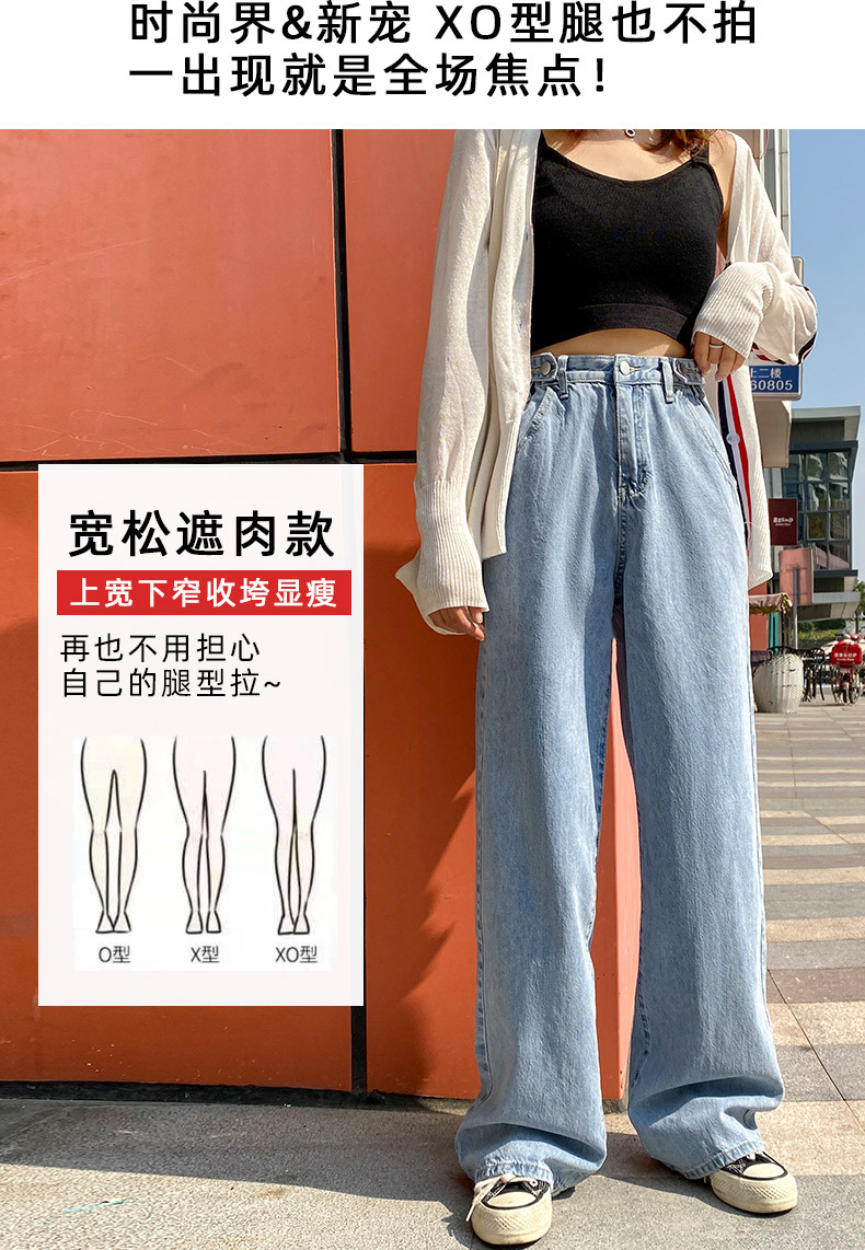 阔腿牛仔裤女高腰2022春款宽松小个子泫雅老爹裤垂感直筒拖地裤子