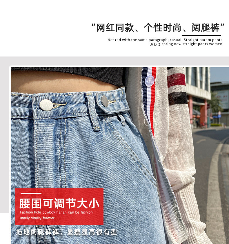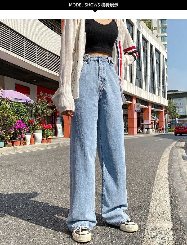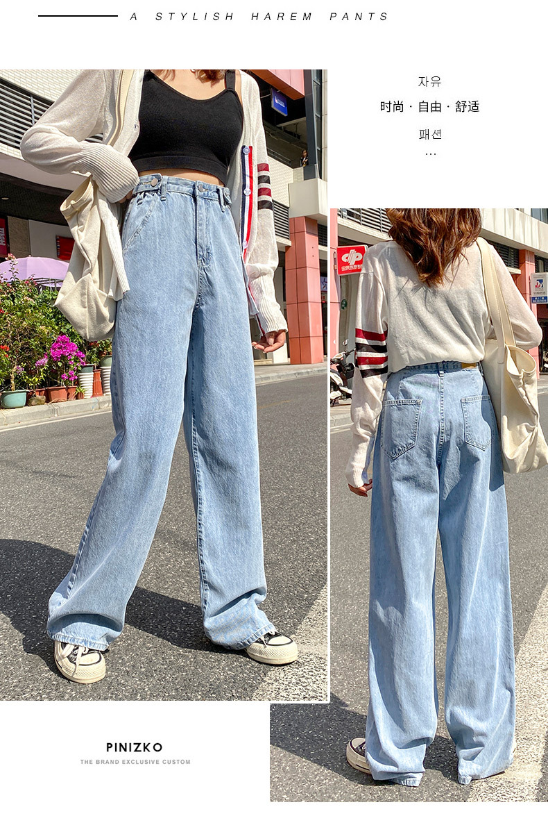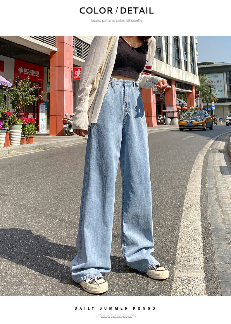 阔腿牛仔裤女高腰2022春款宽松小个子泫雅老爹裤垂感直筒拖地裤子