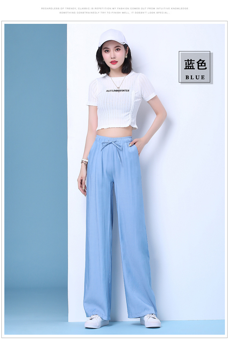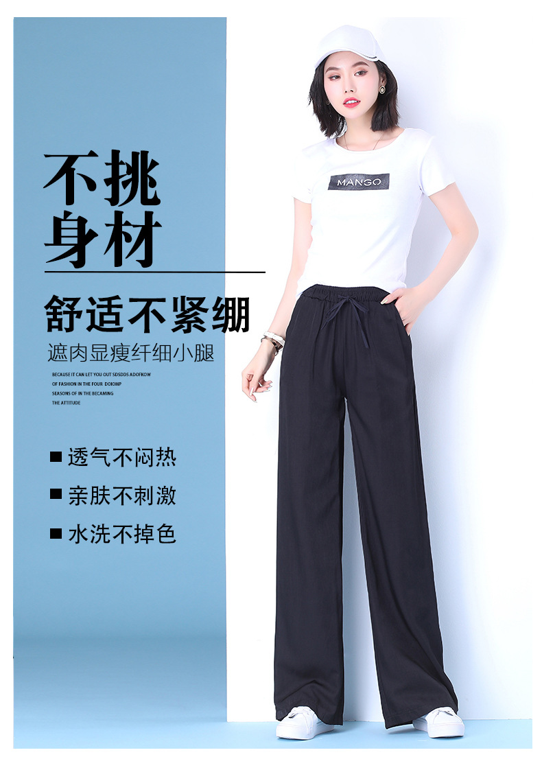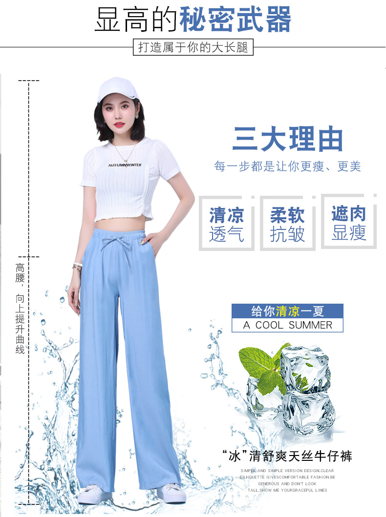 春夏季新款直筒仿天丝牛仔裤女阔腿高腰大码垂感宽松冰丝休闲长裤