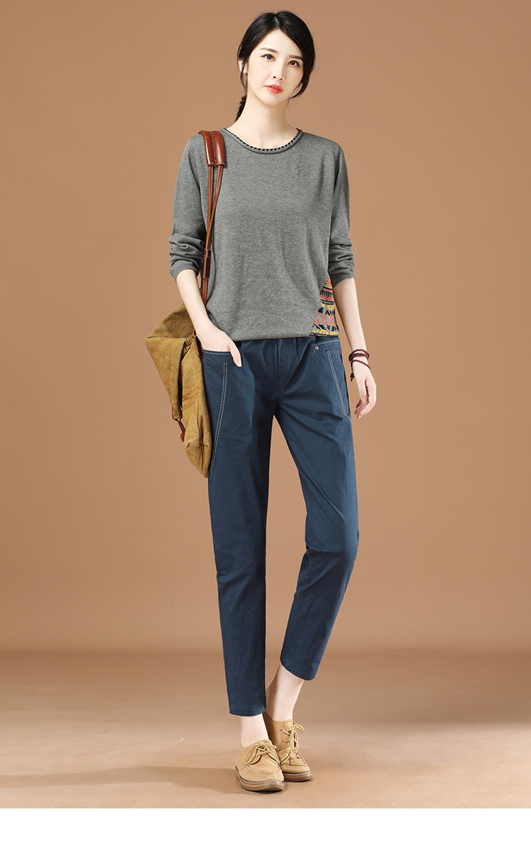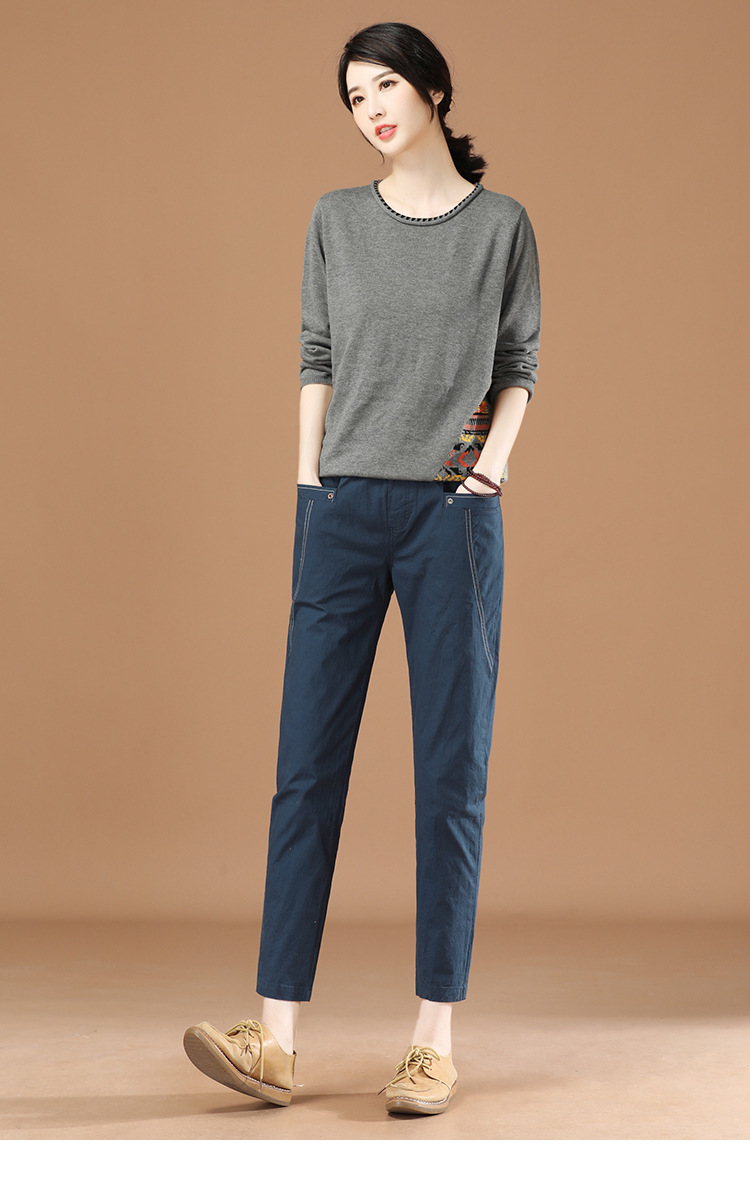 松紧腰休闲女士牛仔长裤2022年秋装新款韩版宽松显瘦直筒裤PT8192