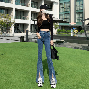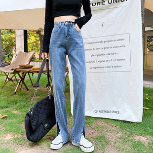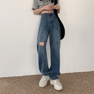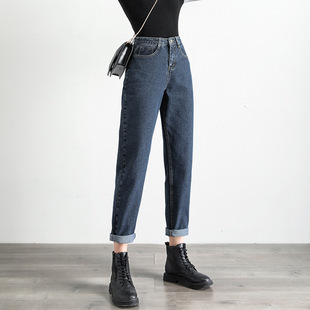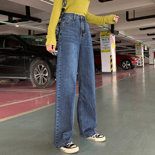 秋冬女装韩版牛仔裤女士高腰宽松复古文艺BF风阔腿牛仔裤