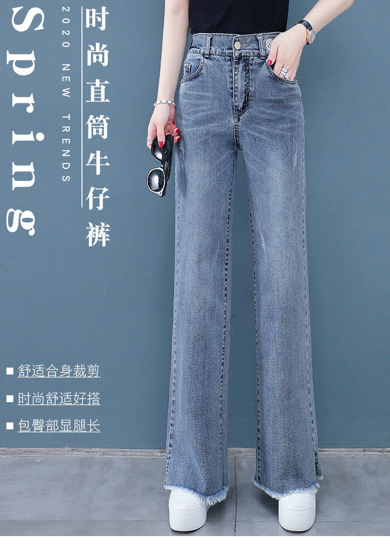 阔腿牛仔裤女士春夏2021年新款高腰宽松直筒百搭显瘦拖地裤裤子潮
