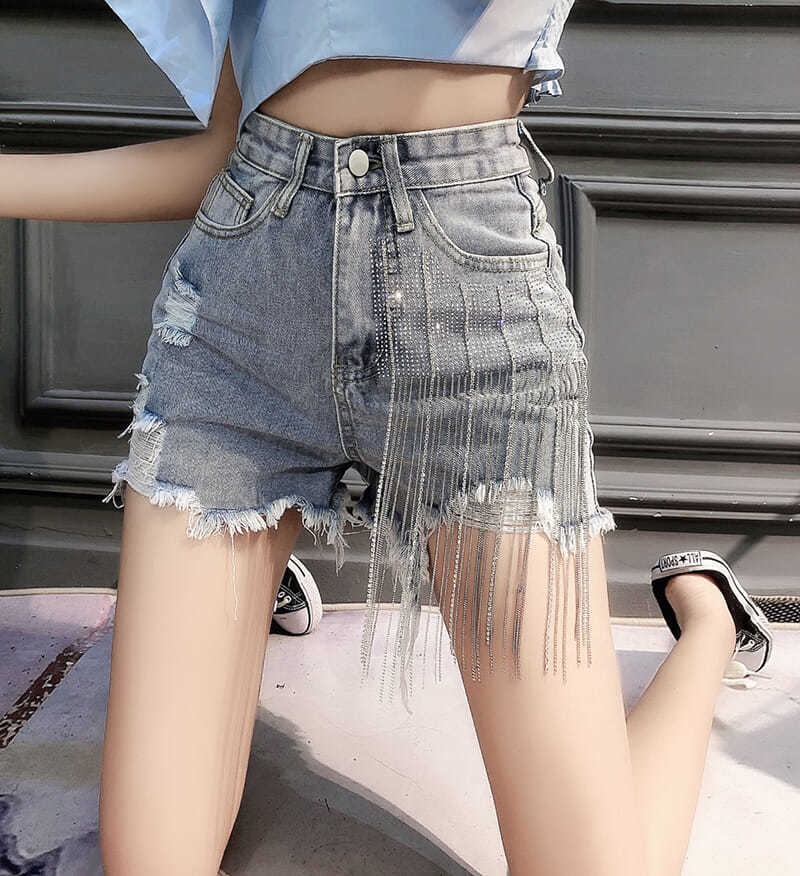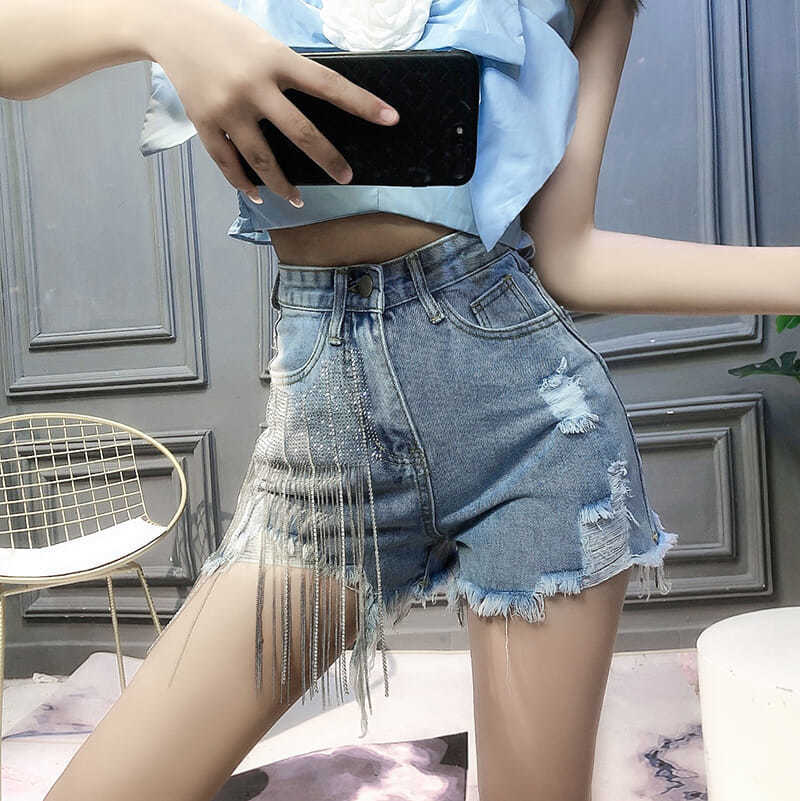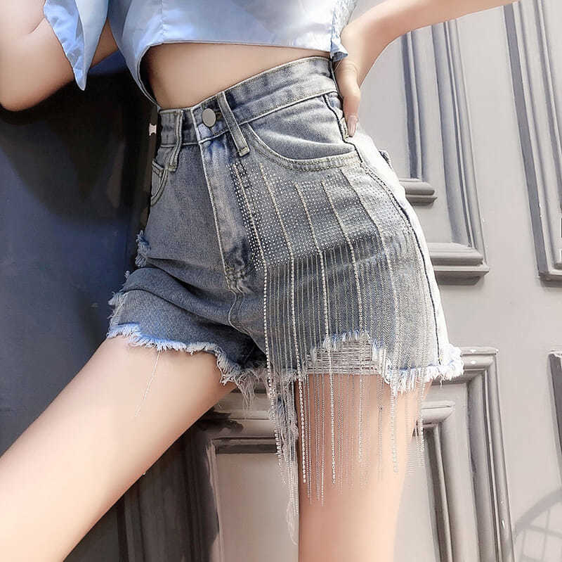 2022年夏季新款直筒牛仔裤女士高腰宽松个性显瘦阔腿流苏短裤子潮