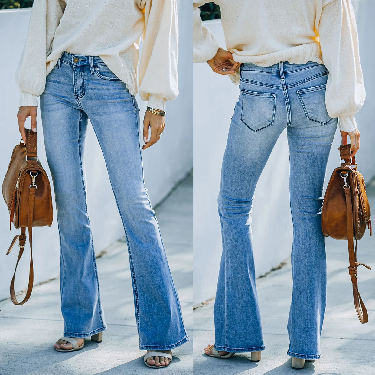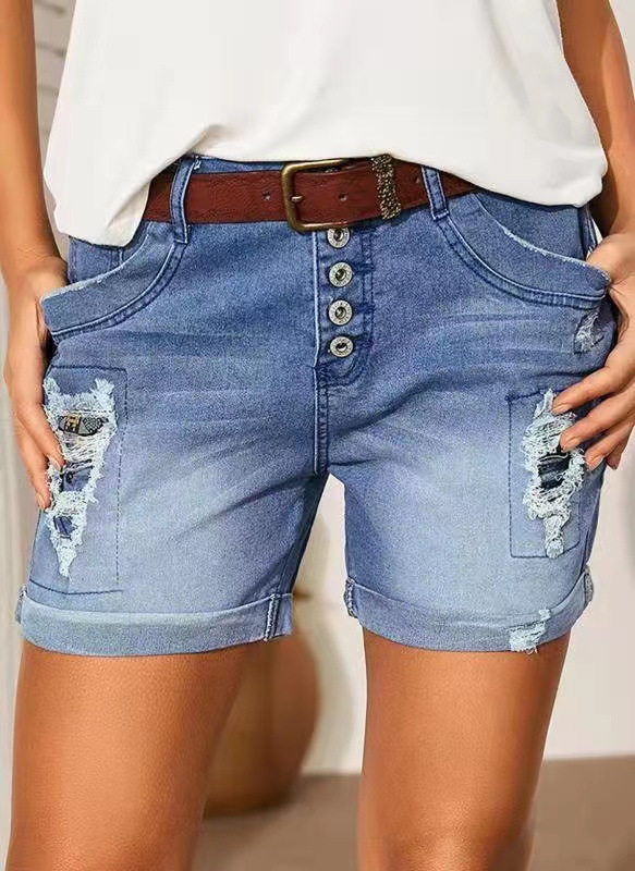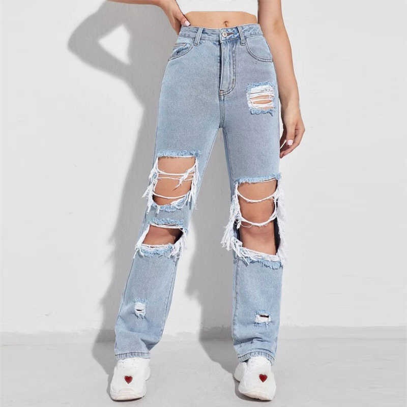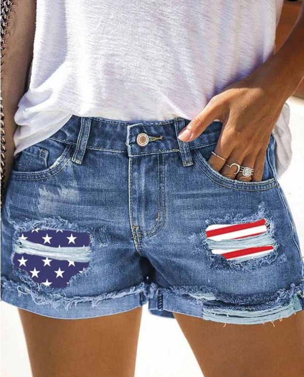 现货2022速卖通热销独立日跨境女士牛仔裤破洞印花时尚牛仔裤女裤