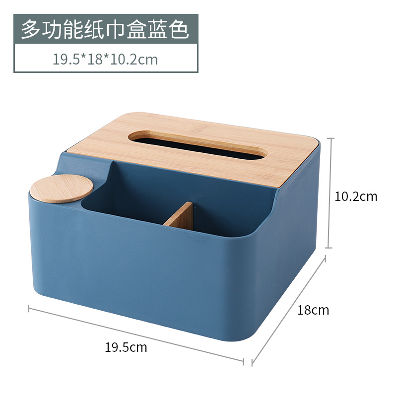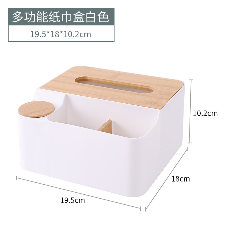 家用多功能抽纸盒 客厅遥控器纸巾收纳盒 竹木盖收纳桌面纸巾盒
