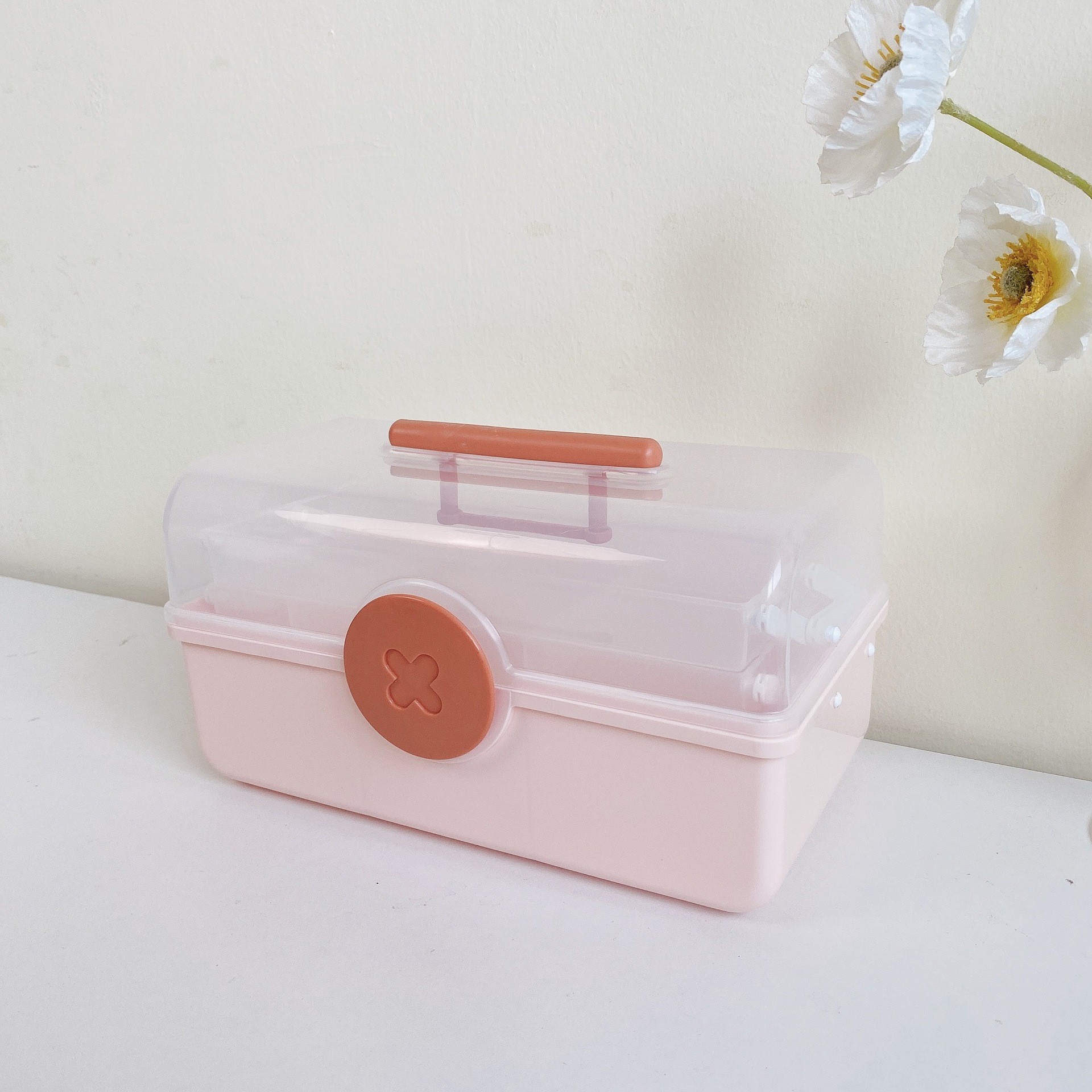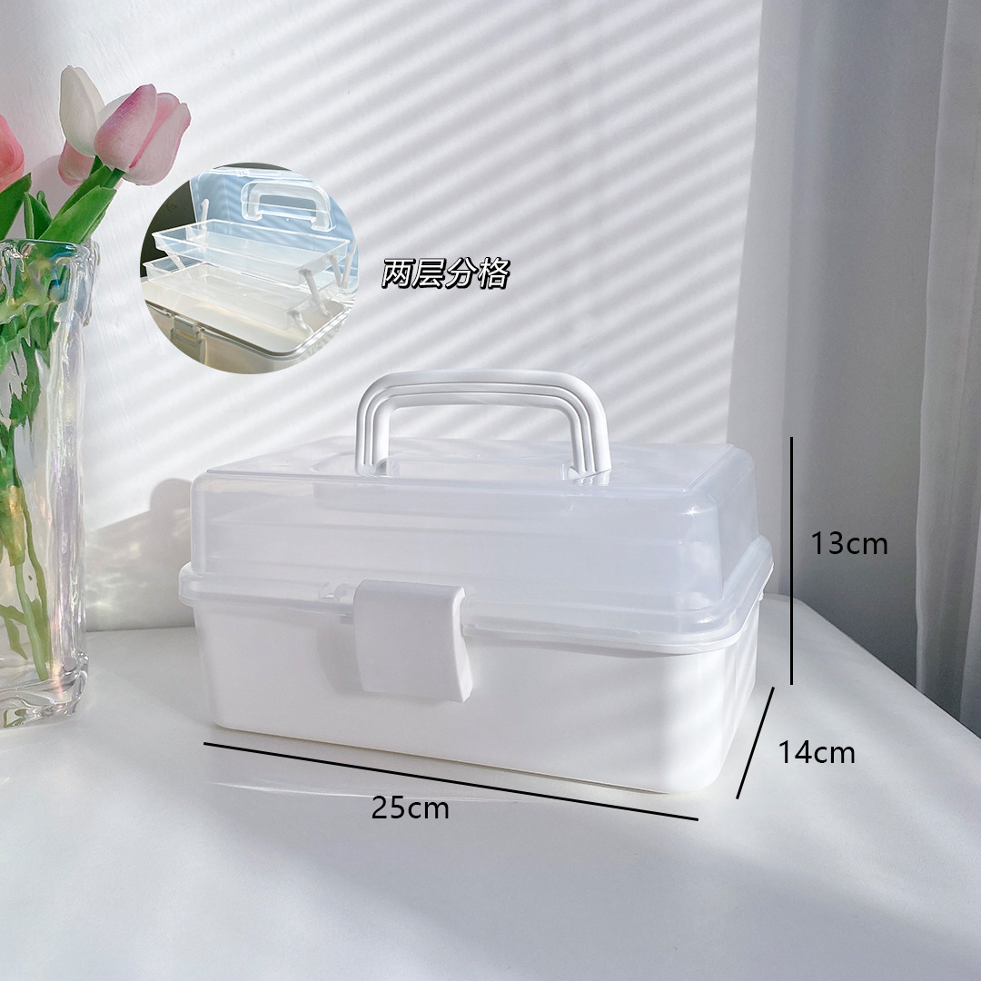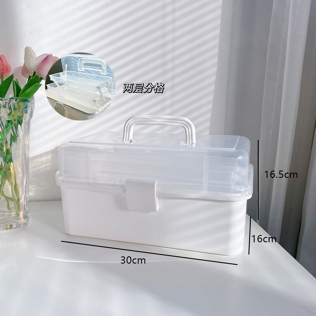 简约化妆品收纳盒宿舍桌面整理收纳箱多功能透明手提美术生工具箱