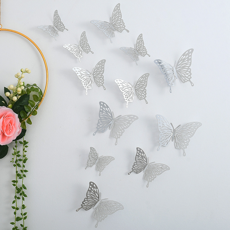亚马逊3d立体镂空蝴蝶墙贴墙面装饰客厅墙上布置金属质感创意贴纸