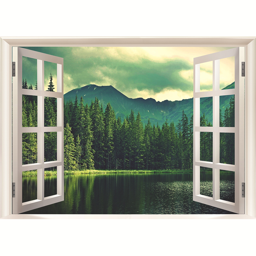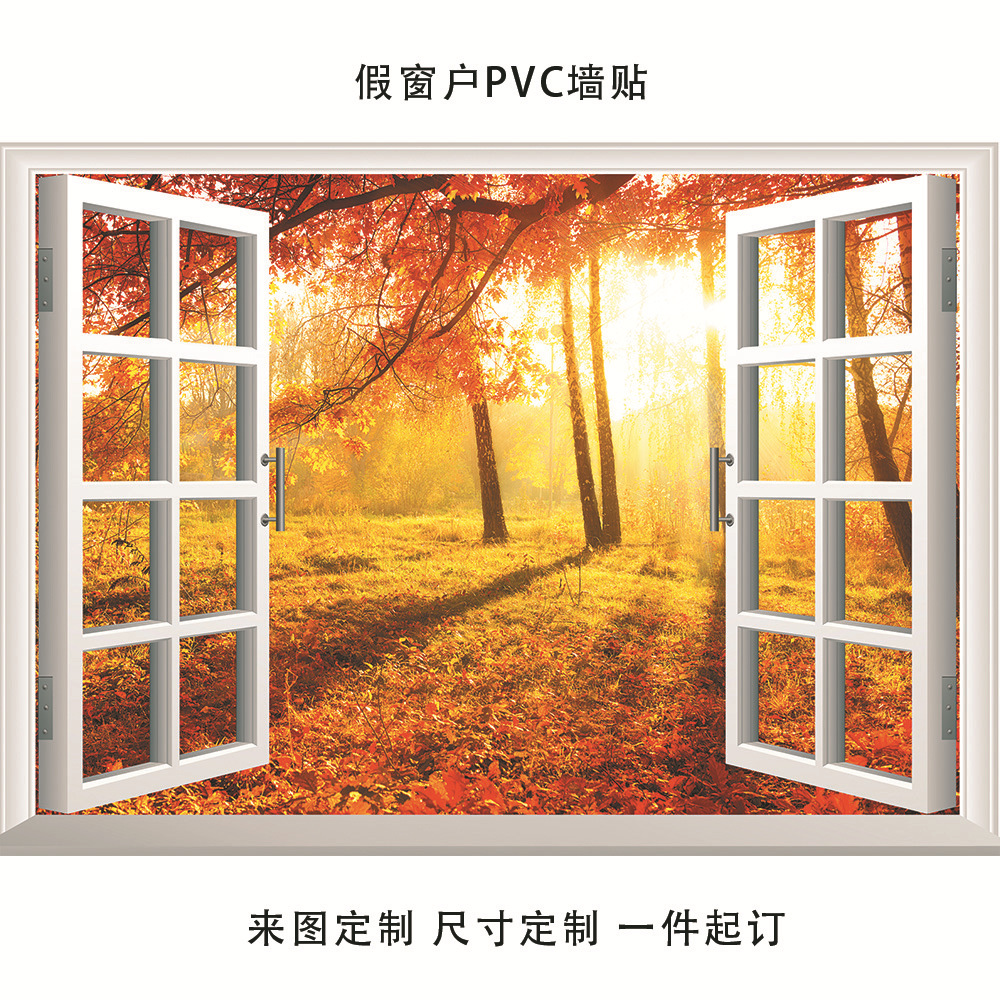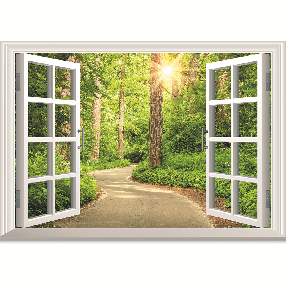 3D仿真假窗户装饰画墙贴 树林风景贴画客厅卧室自粘墙面装饰贴纸