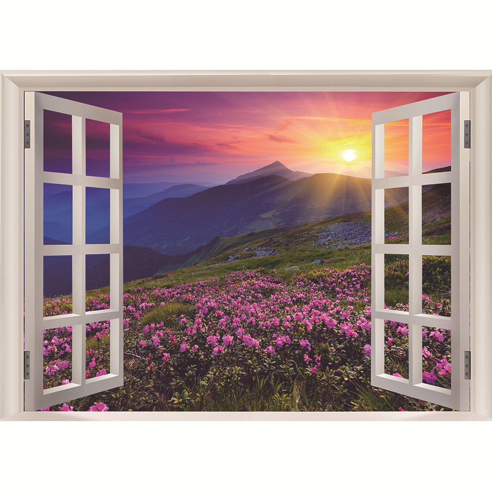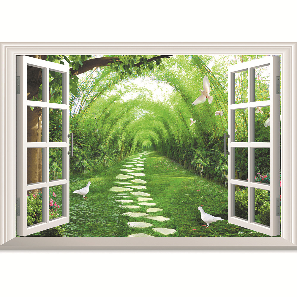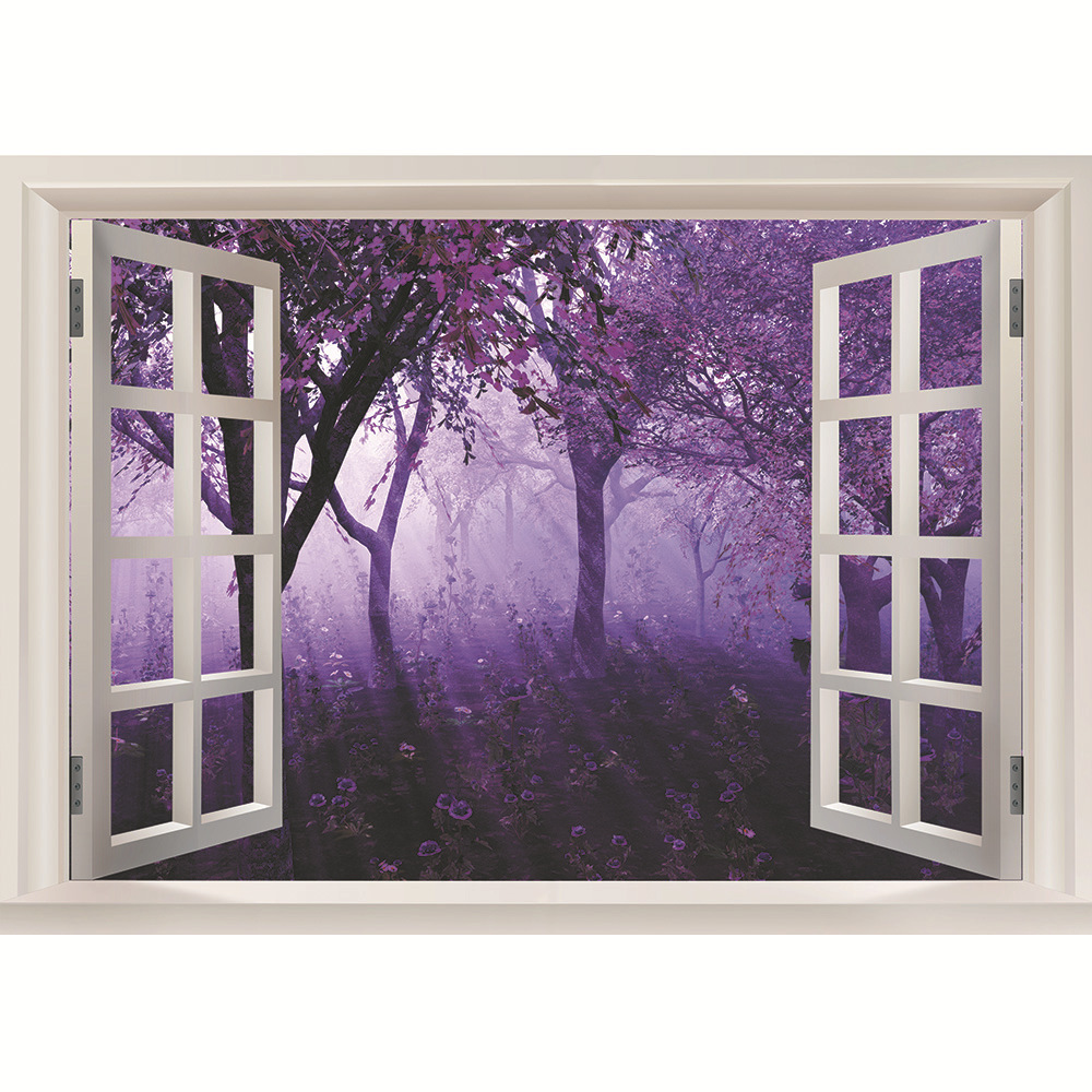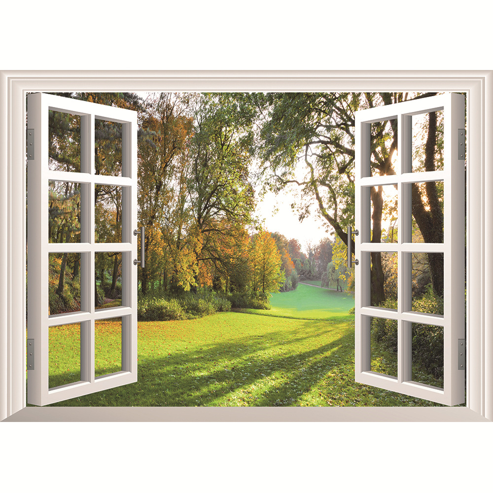 3D仿真假窗户装饰画墙贴 树林风景贴画客厅卧室自粘墙面装饰贴纸