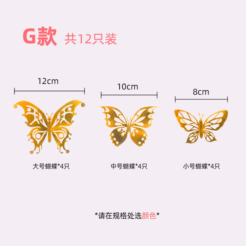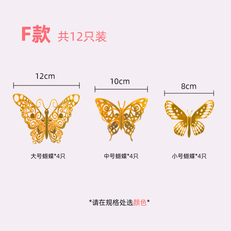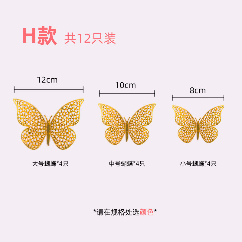 12只装3D金属质感镂空蝴蝶跨境外贸墙贴立体仿真蝴蝶家居贴纸装饰