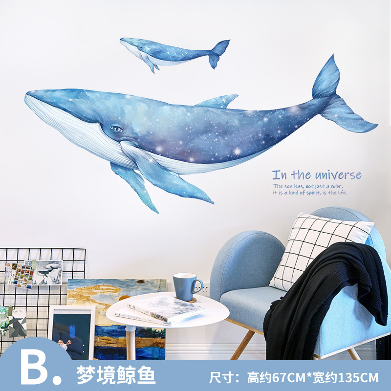 川豪创意个性鲸鱼墙贴卧室墙壁贴画房间装饰贴纸沙发背景墙布置