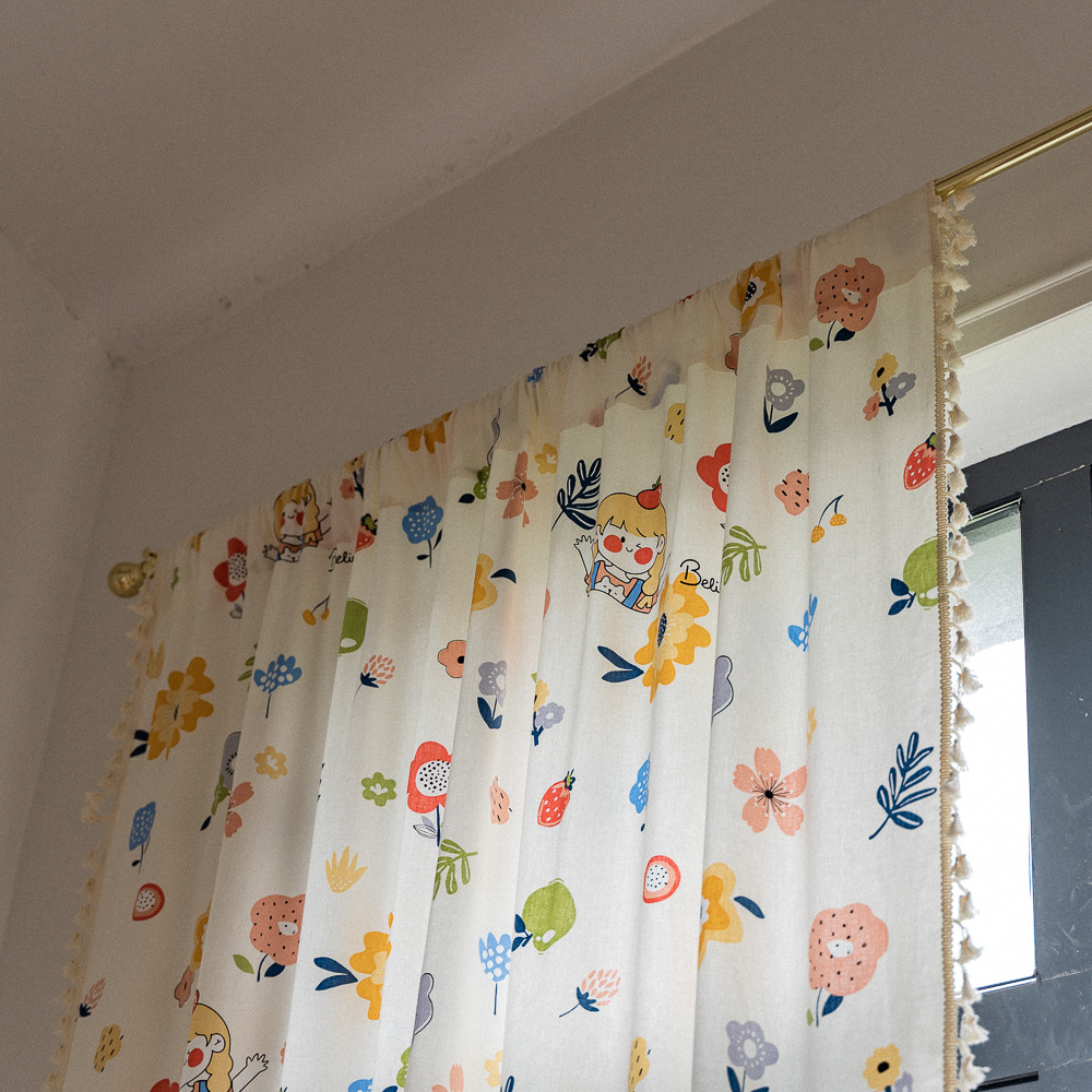 跨境卡通儿童印花窗帘成品飘窗装饰布艺短帘厨房阳台半遮光半帘