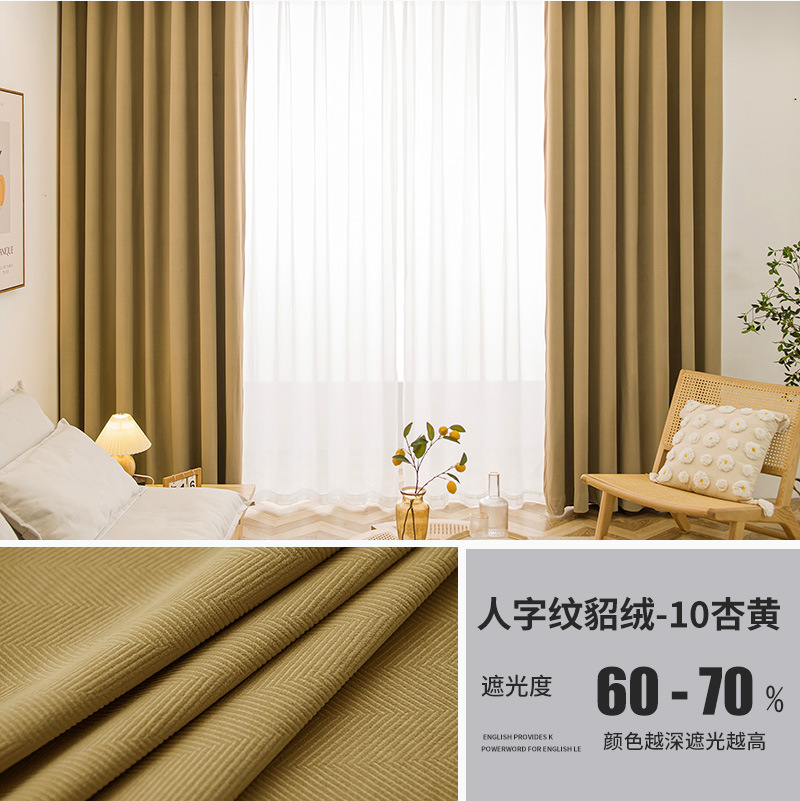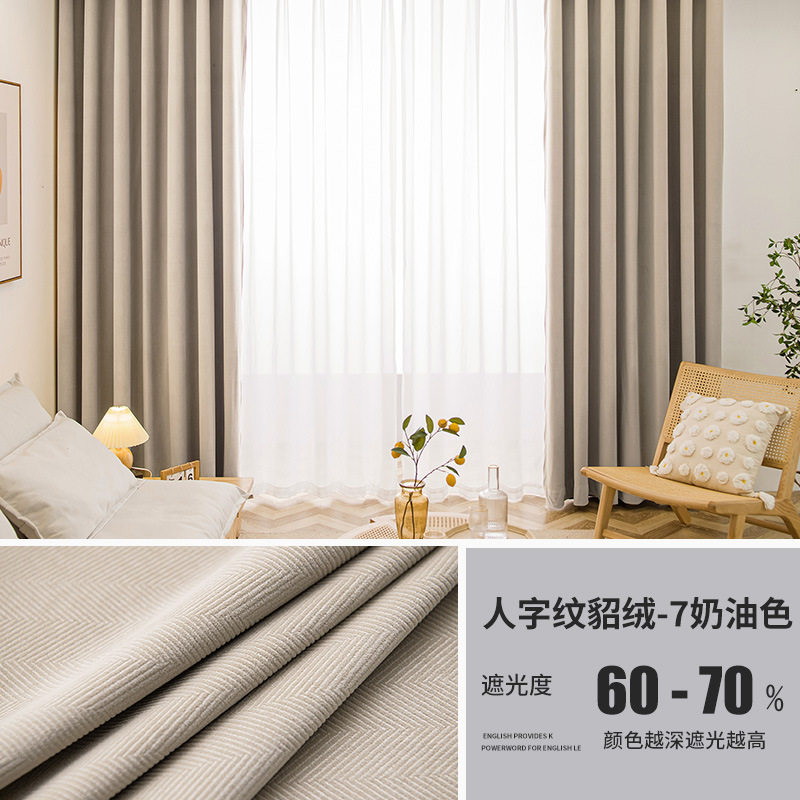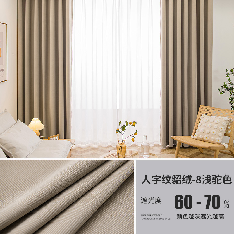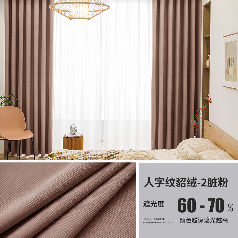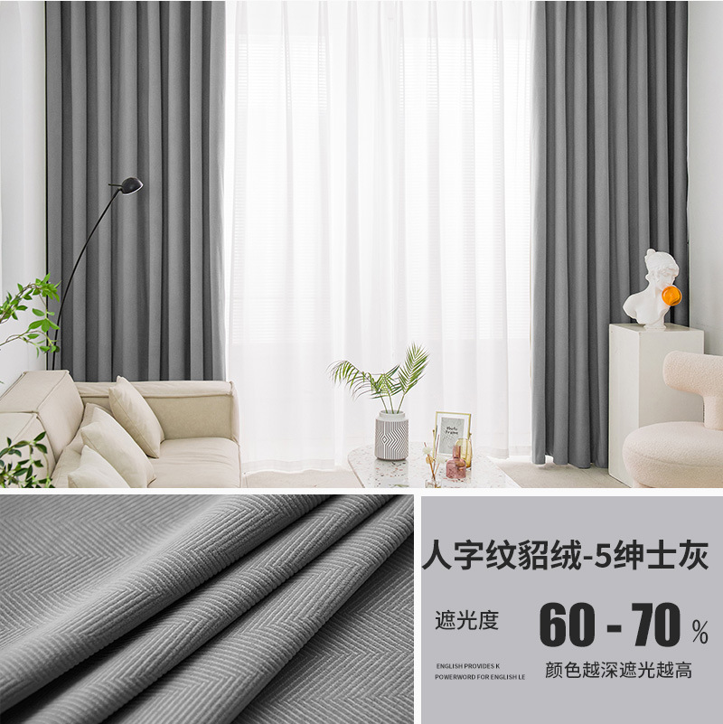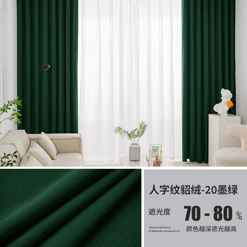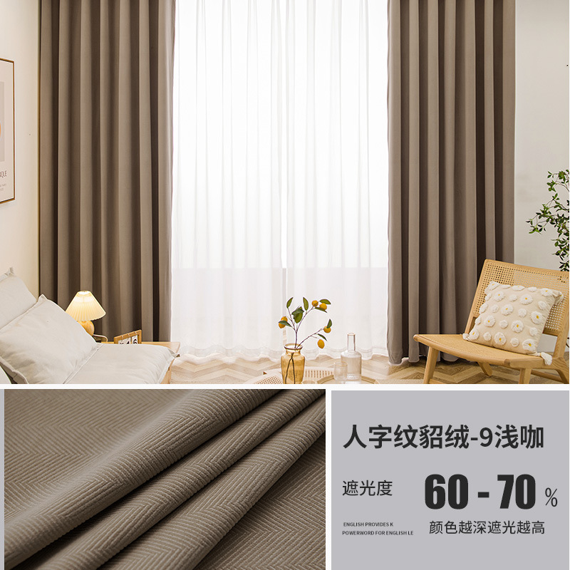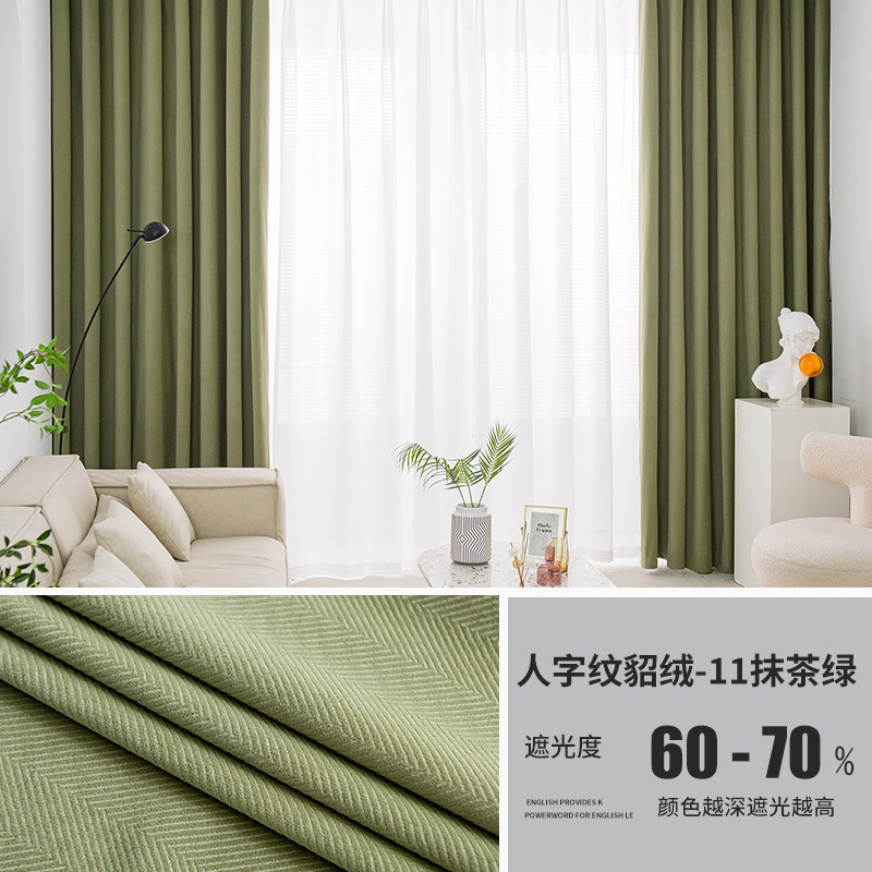 绍兴窗帘简约轻奢抹茶色压花人字纹绒布窗帘客厅卧室阳台窗帘成品