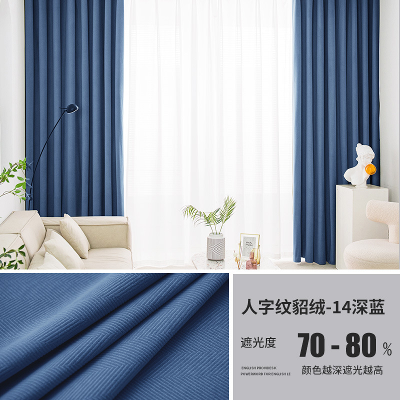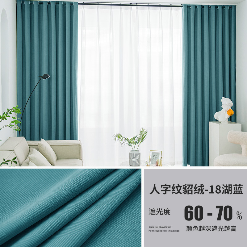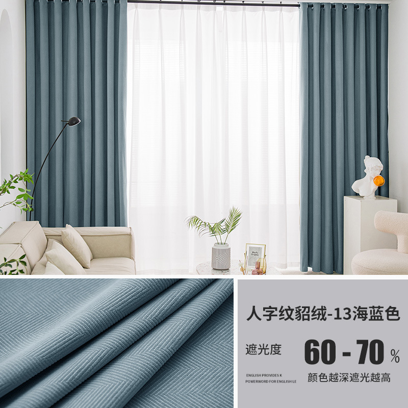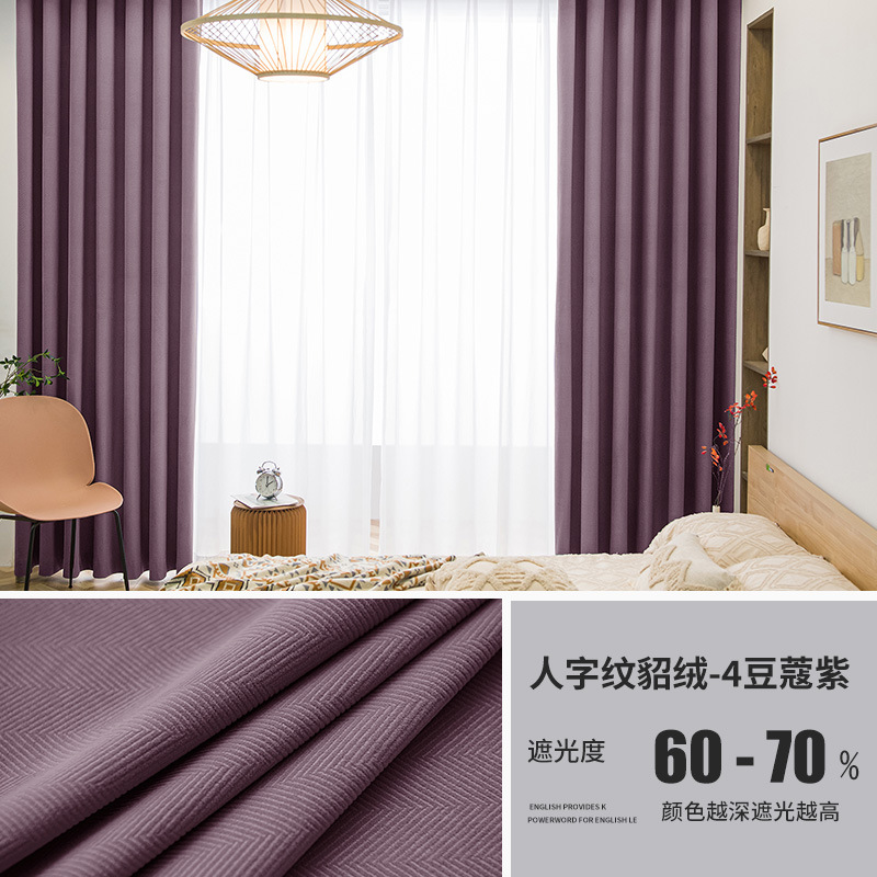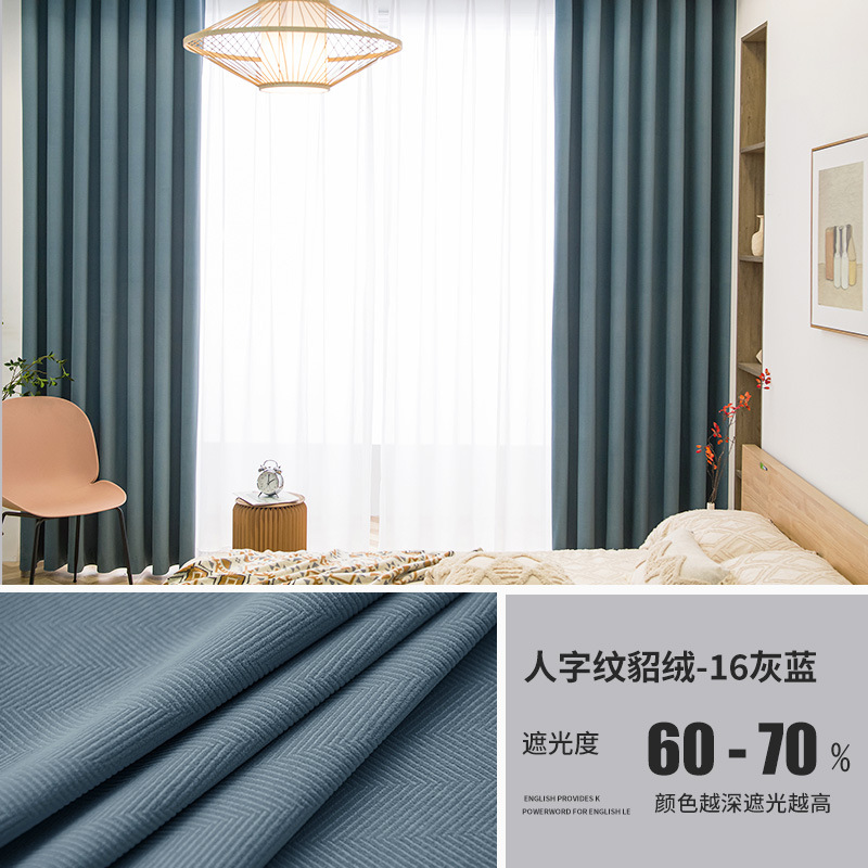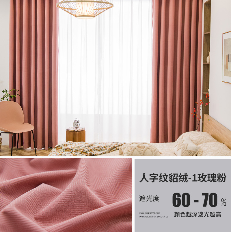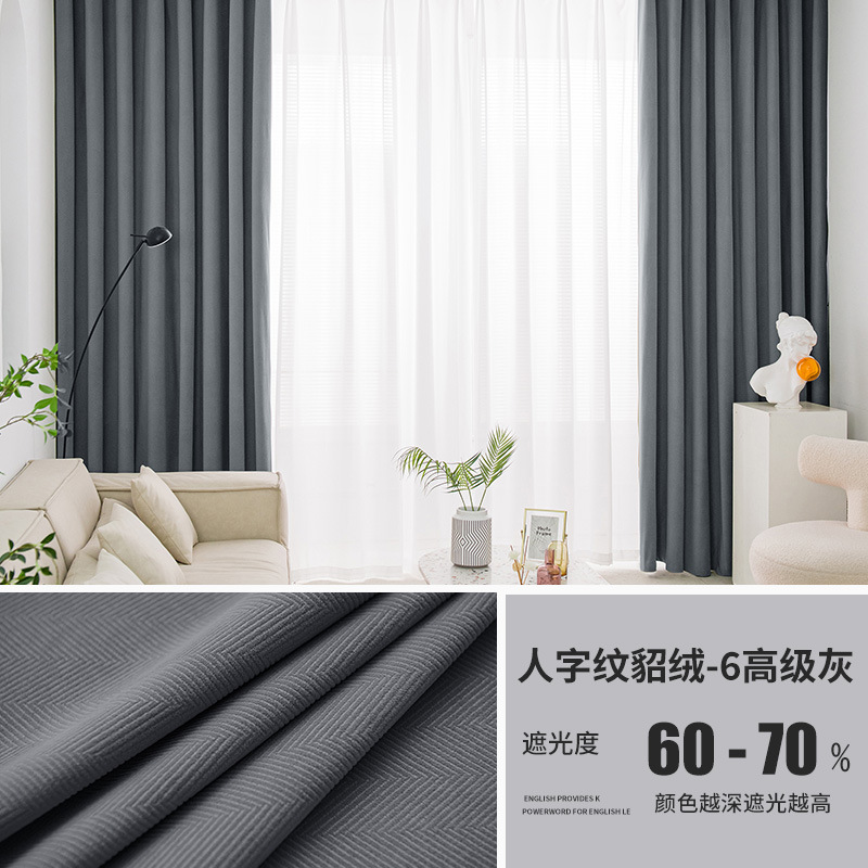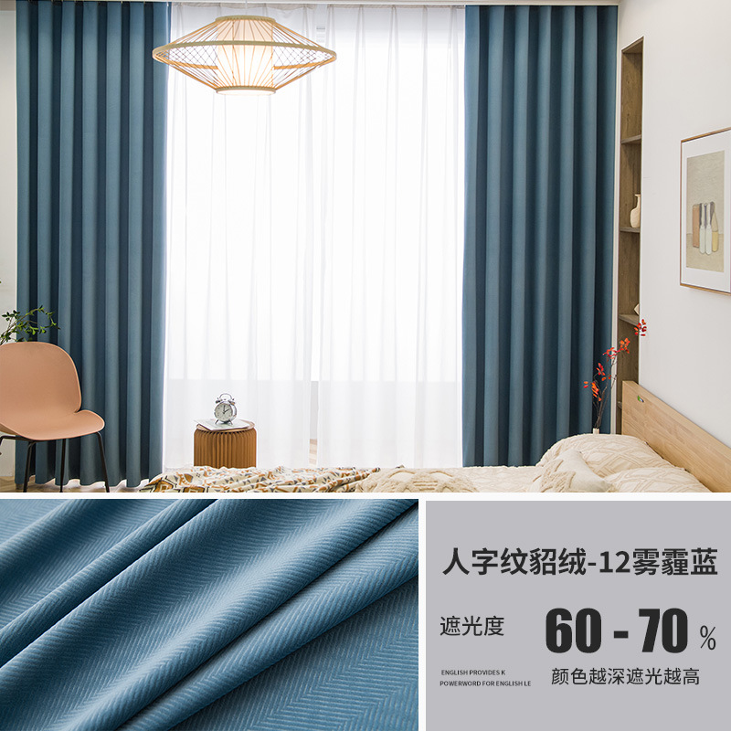 绍兴窗帘简约轻奢抹茶色压花人字纹绒布窗帘客厅卧室阳台窗帘成品
