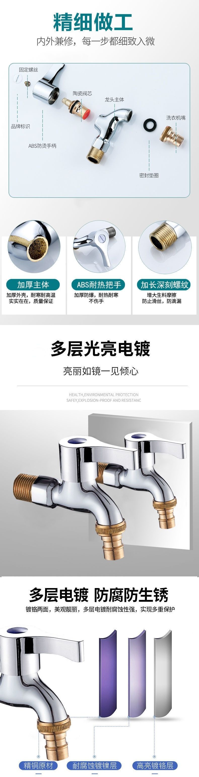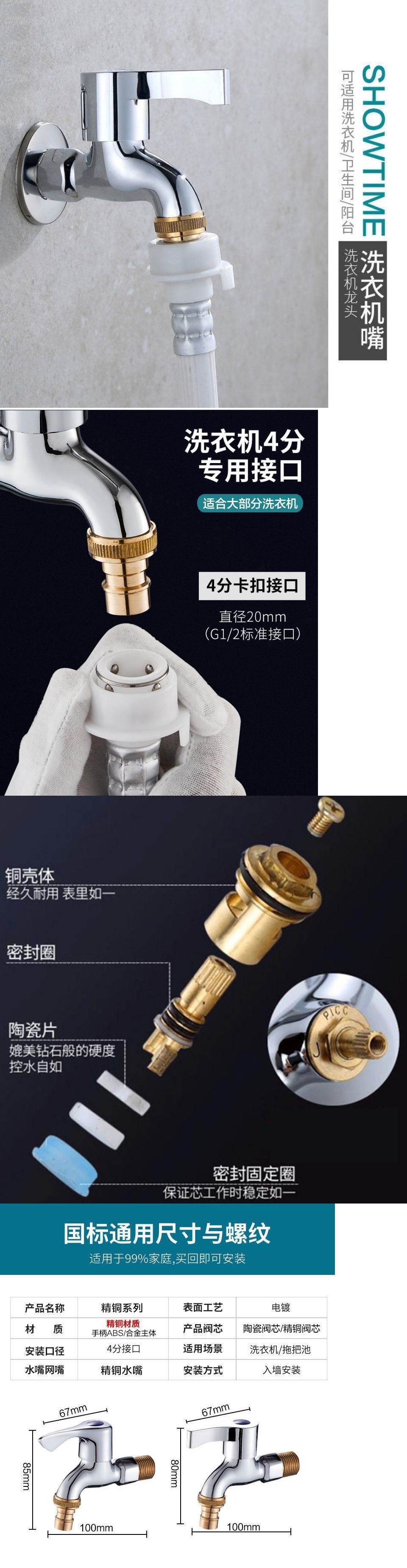 水龙头全铜洗衣机加厚防爆4分多用单冷不锈钢洗衣机拖把池快开