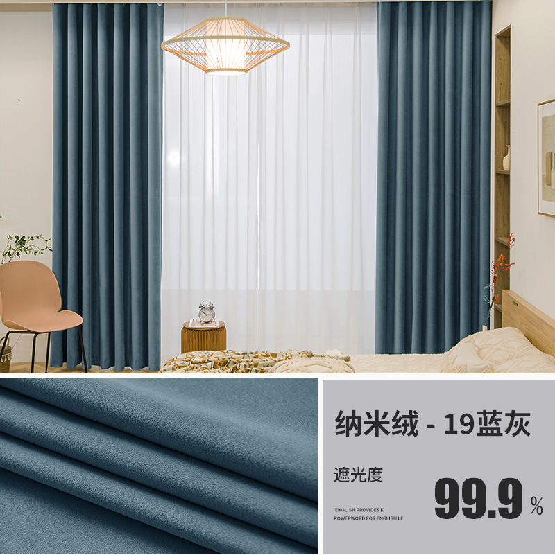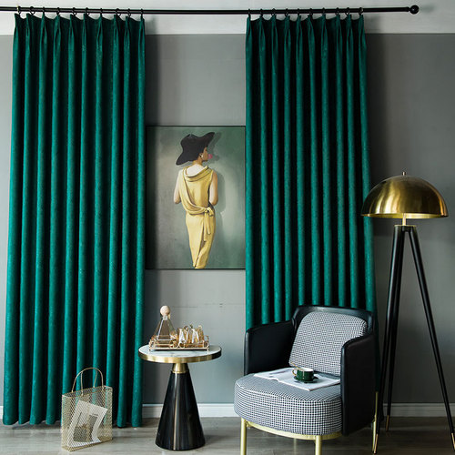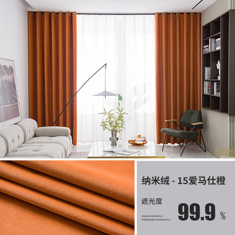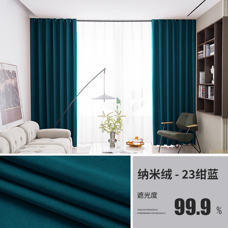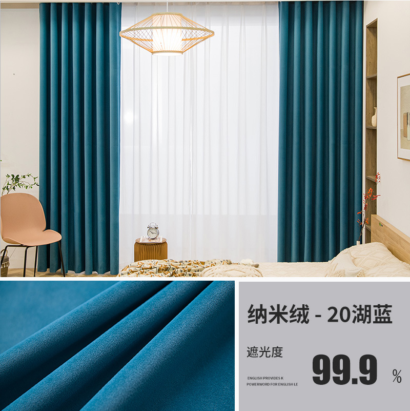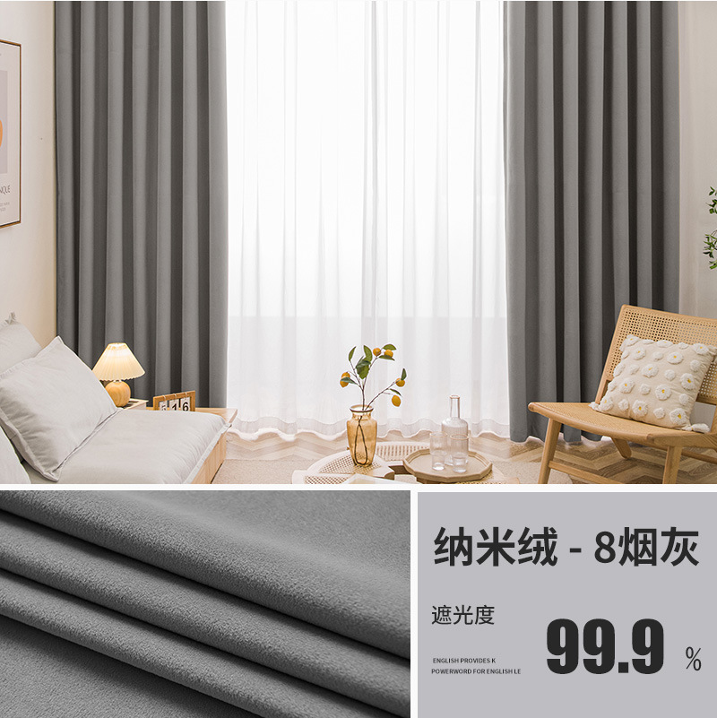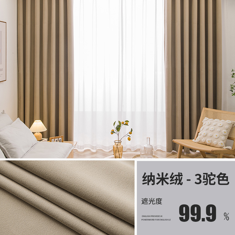 北欧轻奢绒布窗帘卧室客厅遮阳窗帘布加厚遮光客厅别墅窗帘成品