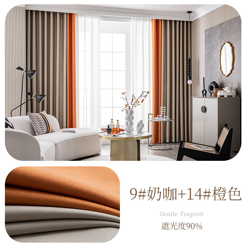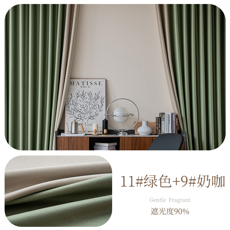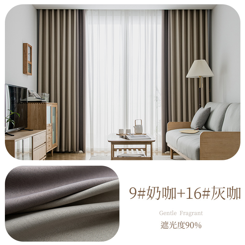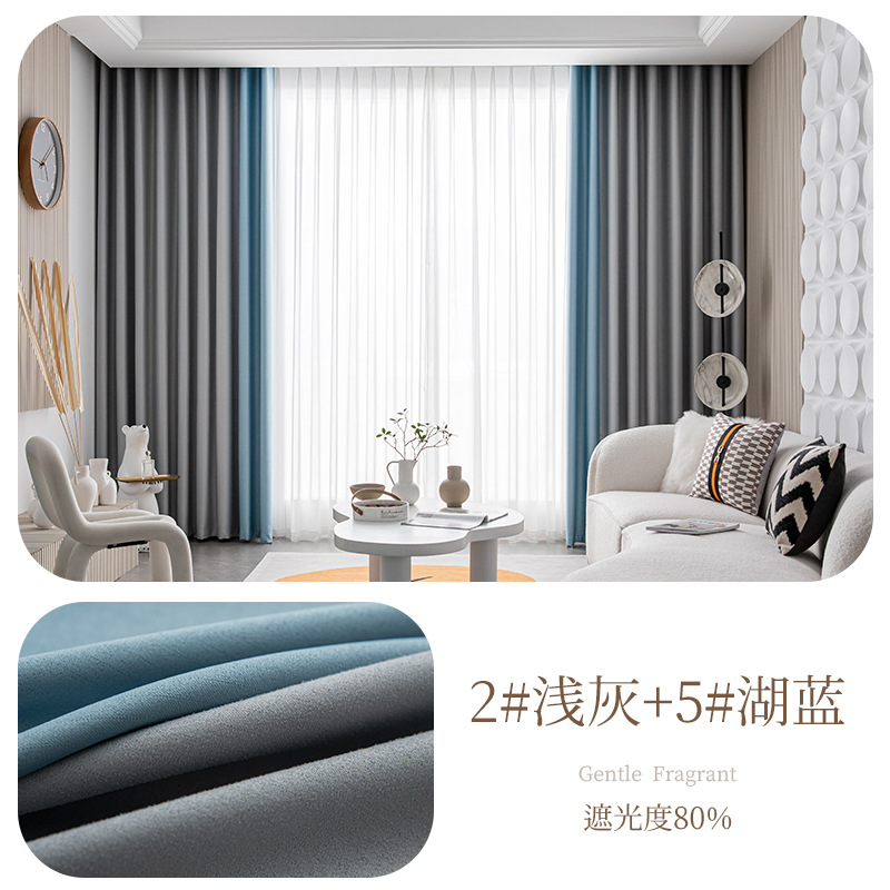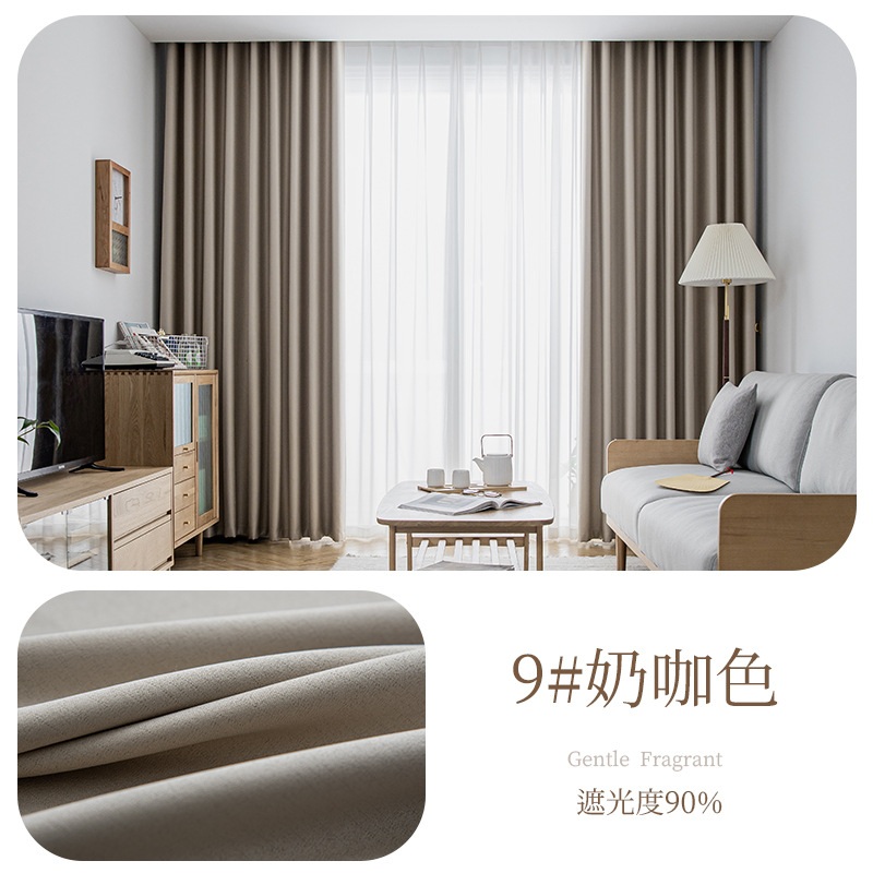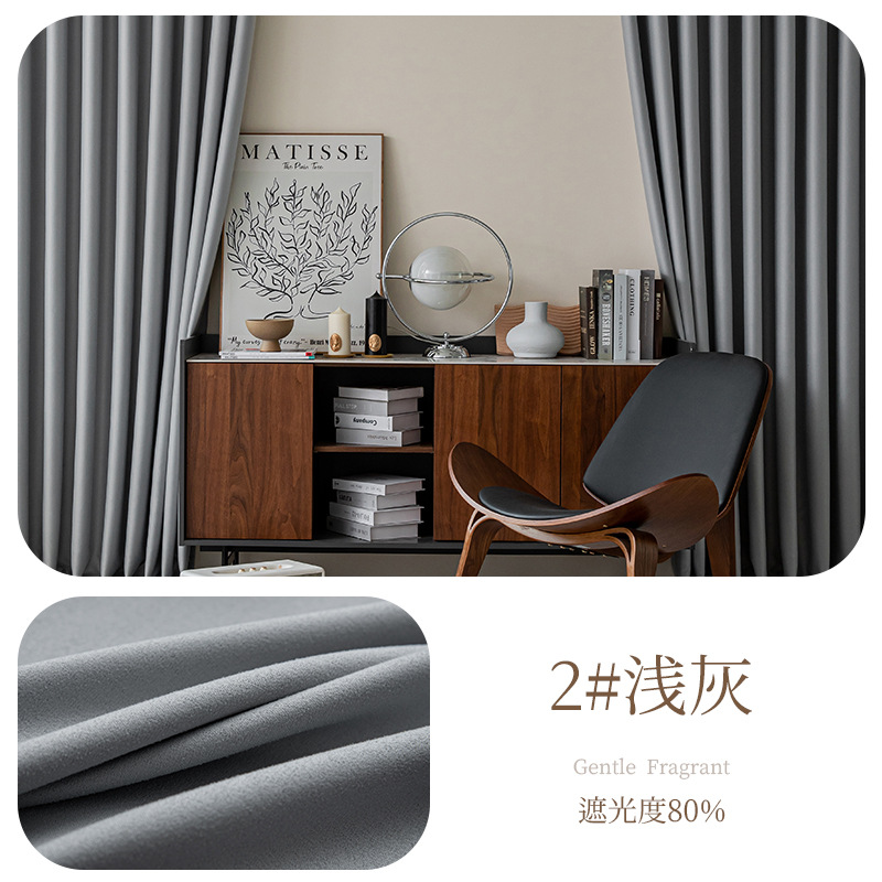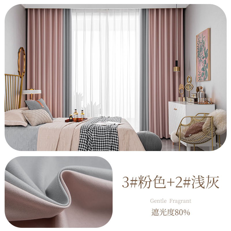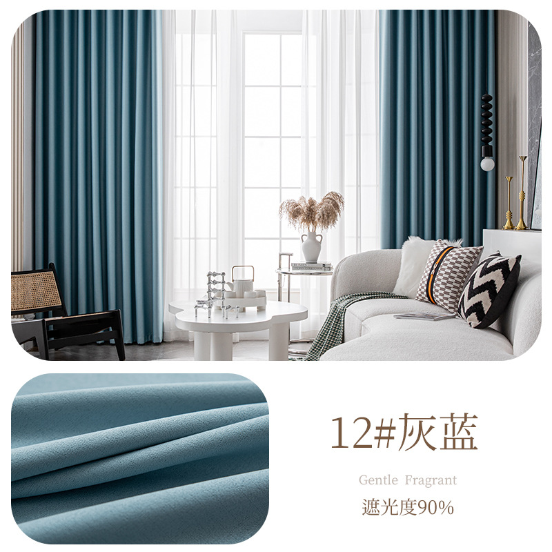 爱吉欣新款纯色莫兰迪窗帘成品遮光布客厅卧室酒店工程阻燃隔音帘