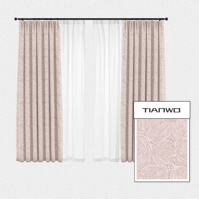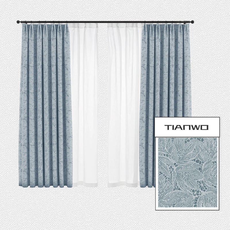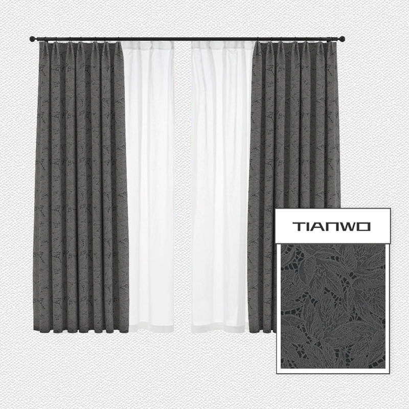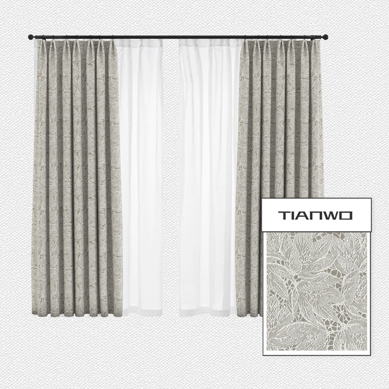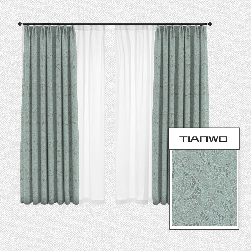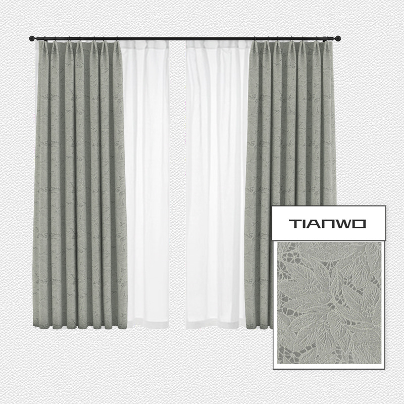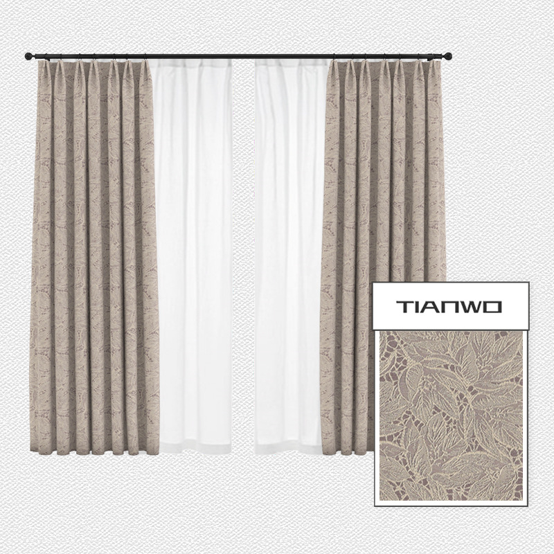 法式蕾丝窗帘卧室ins风隔热遮光窗帘 北欧棉麻奶油色叶子提花飘窗