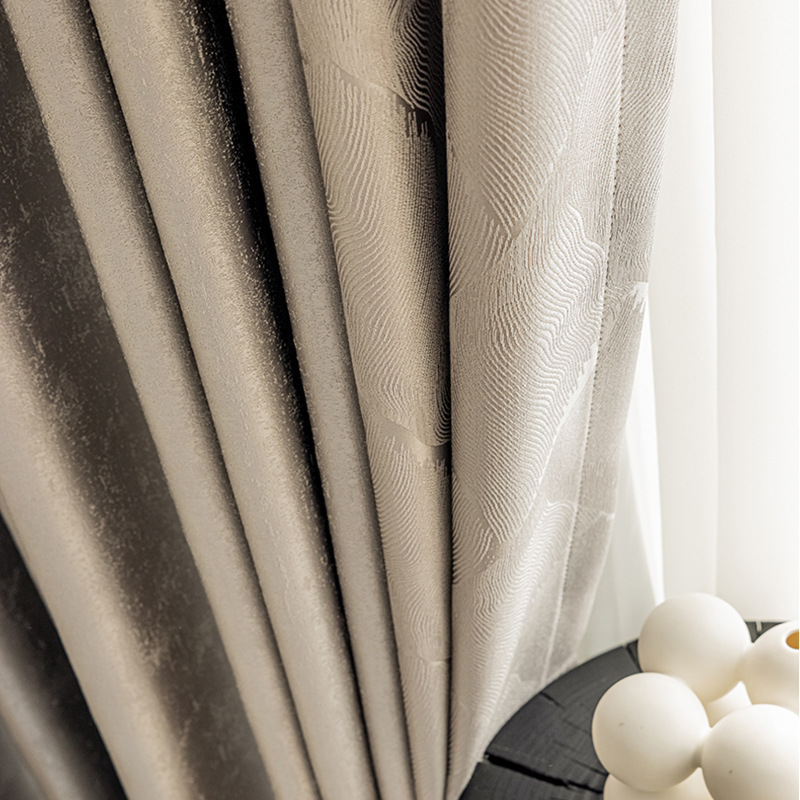 高精密肌理纹孔雀绿云母灰现代轻奢遮光窗帘布成品别墅大宅窗帘