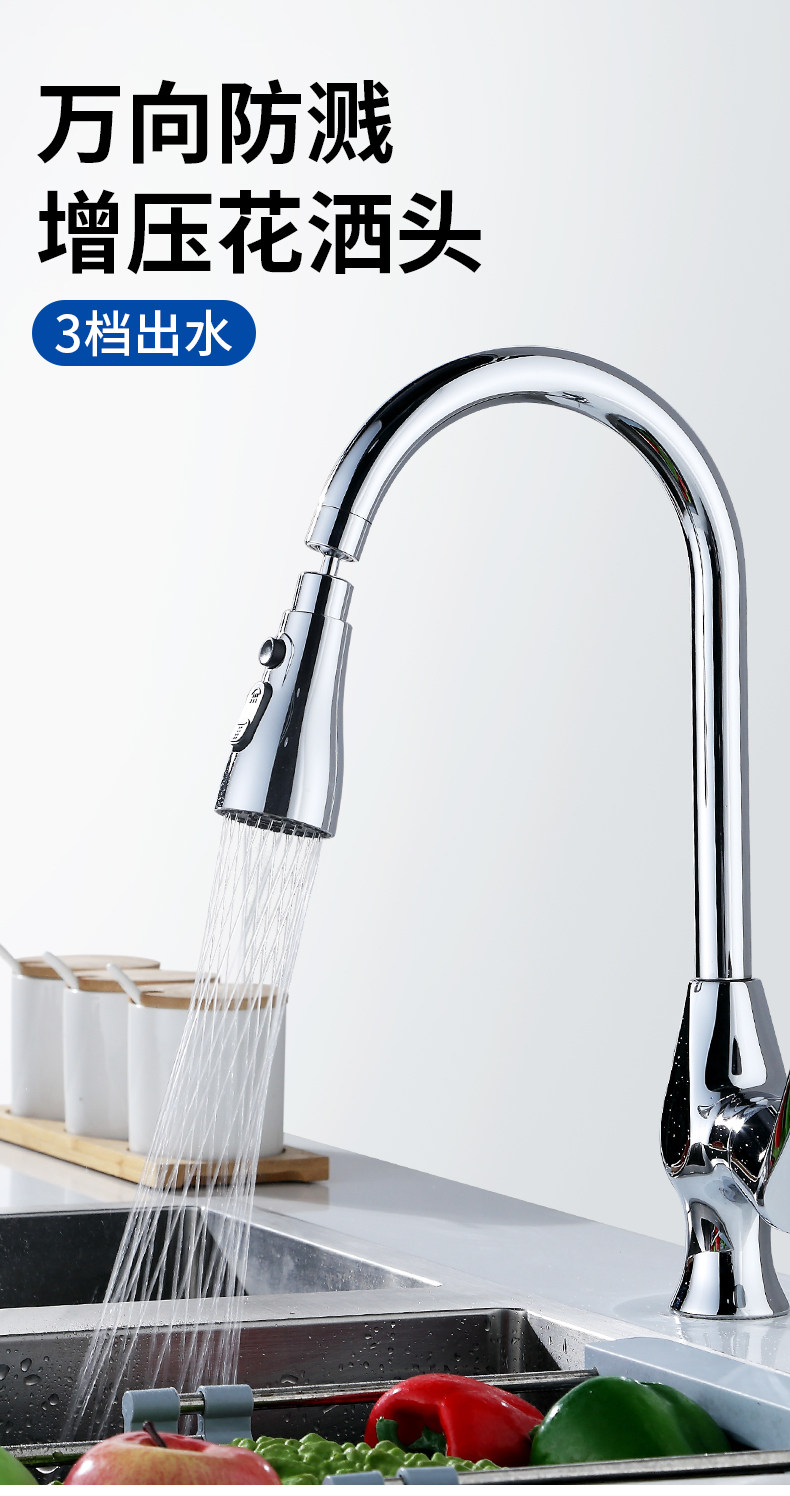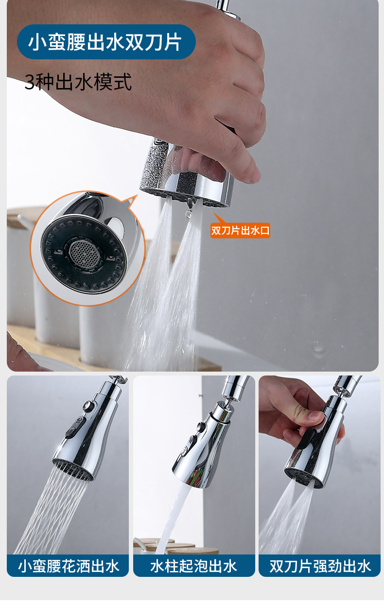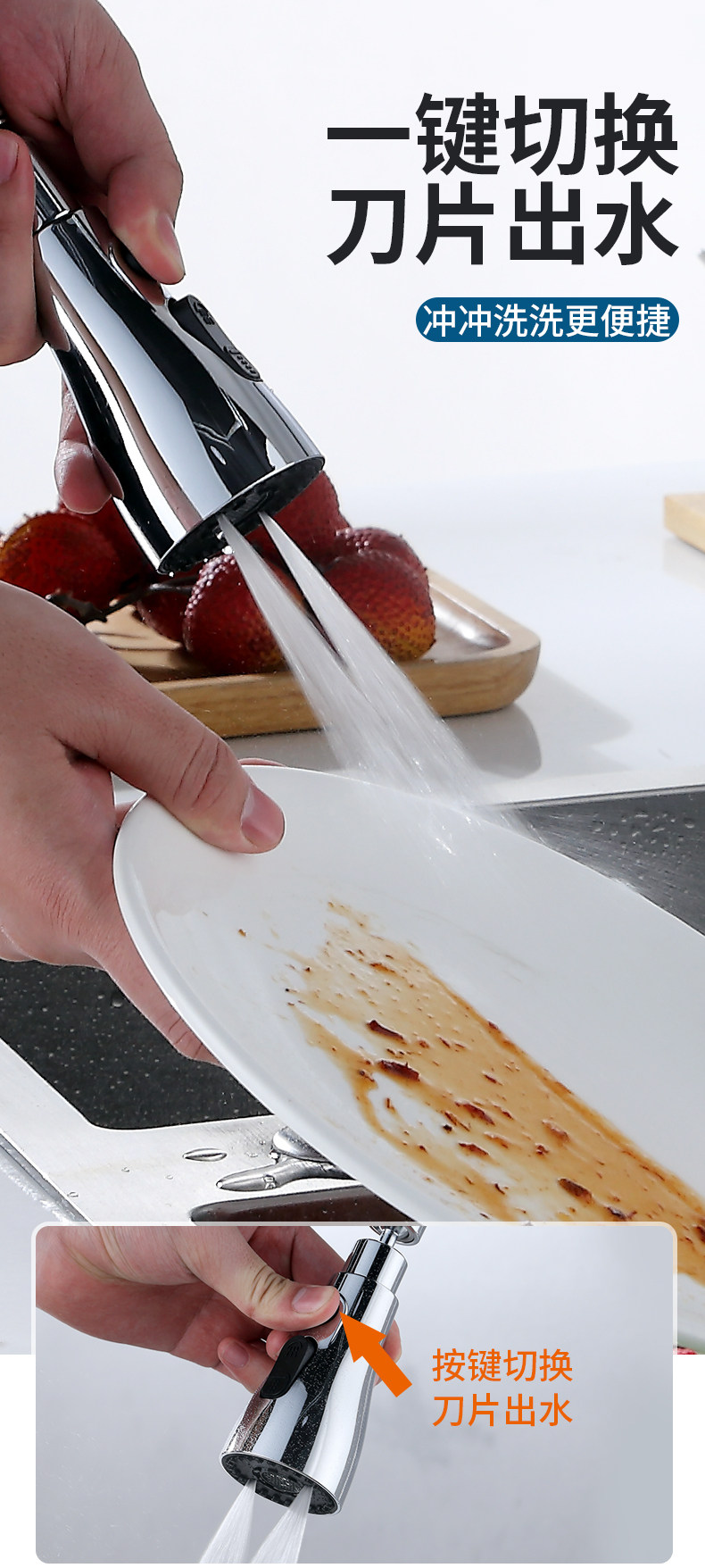 厨房水龙头多功能万向旋转带刮洗出水抽拉洗菜盆防溅喷头延伸神器
