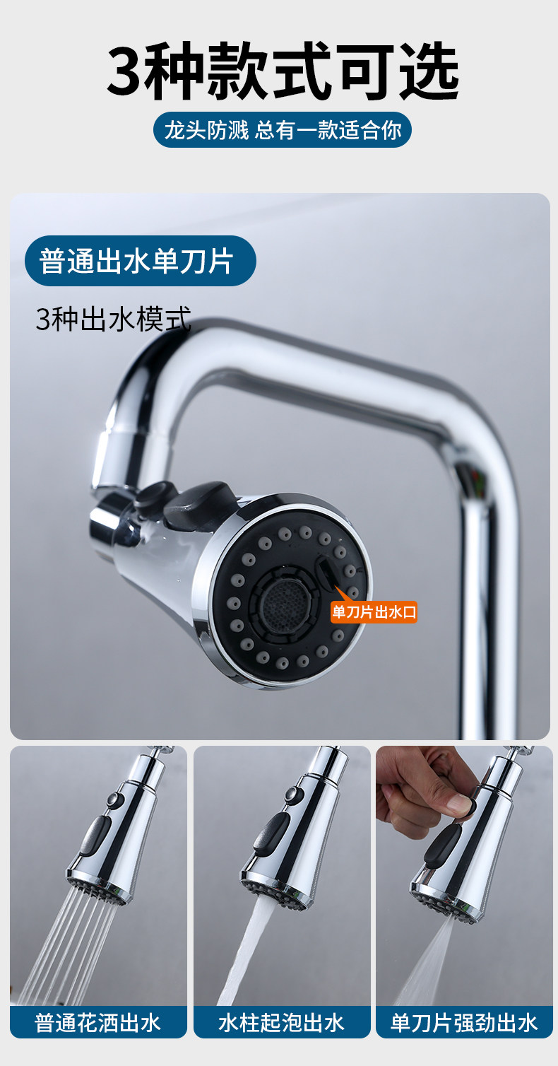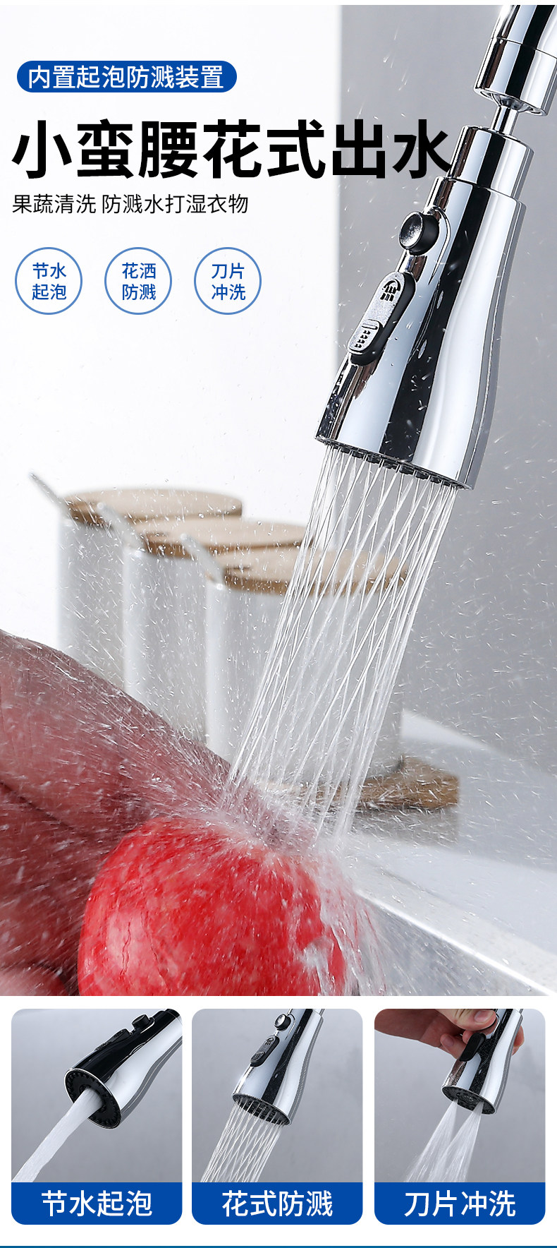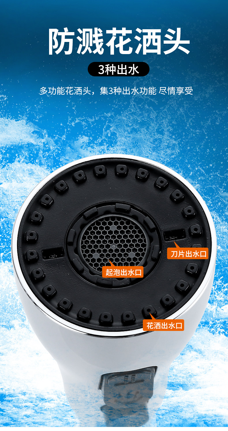 厨房水龙头多功能万向旋转带刮洗出水抽拉洗菜盆防溅喷头延伸神器
