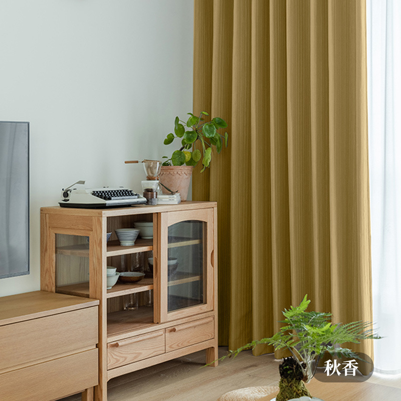抹茶绿日式窗帘2021年新款客厅高级感轻奢棉麻加厚卧室遮光ins风