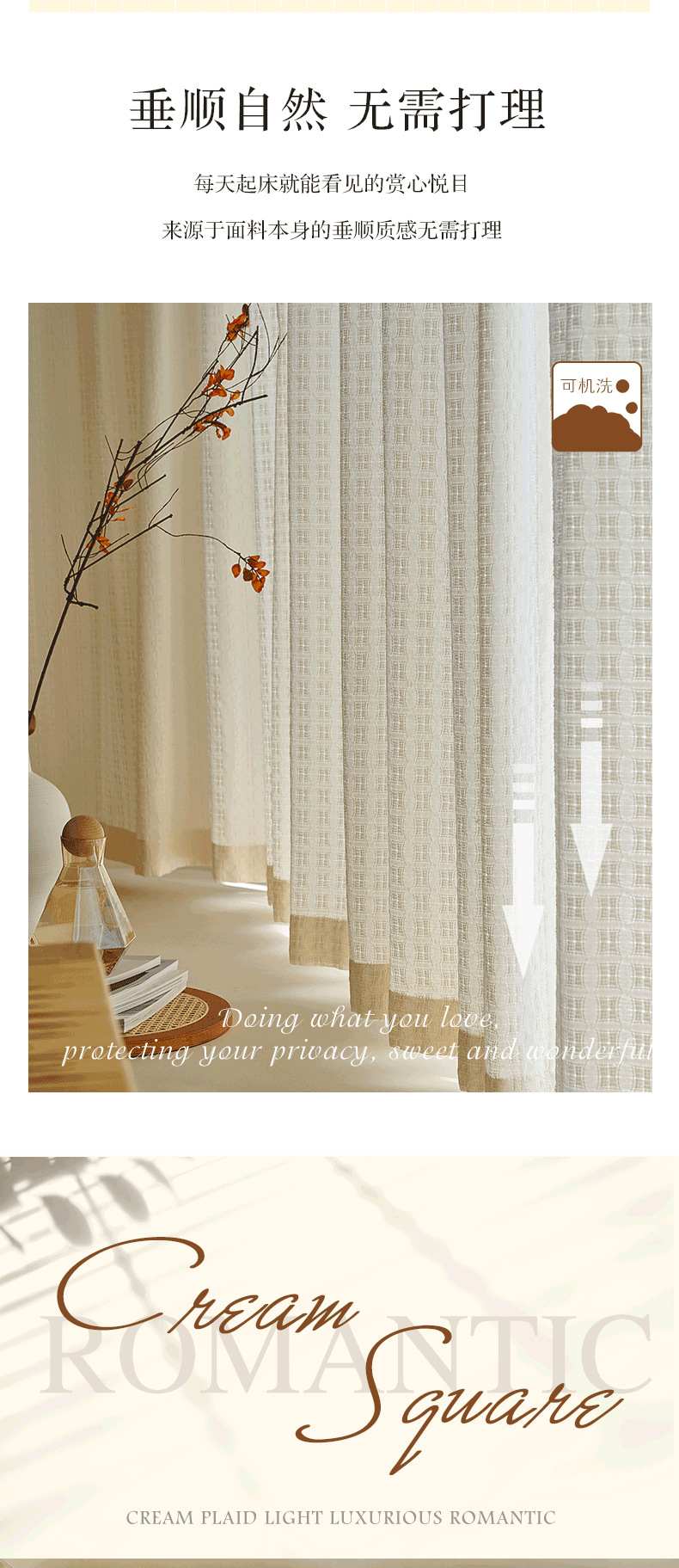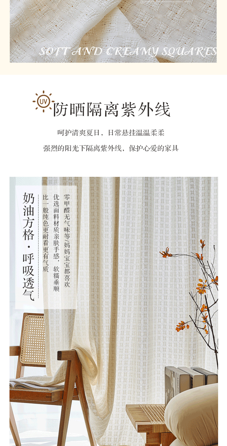 棉麻奶油白纱帘客厅阳台卧室透光不透人日式亚麻日式窗帘白色窗帘