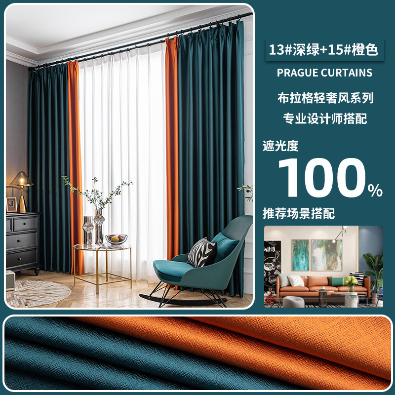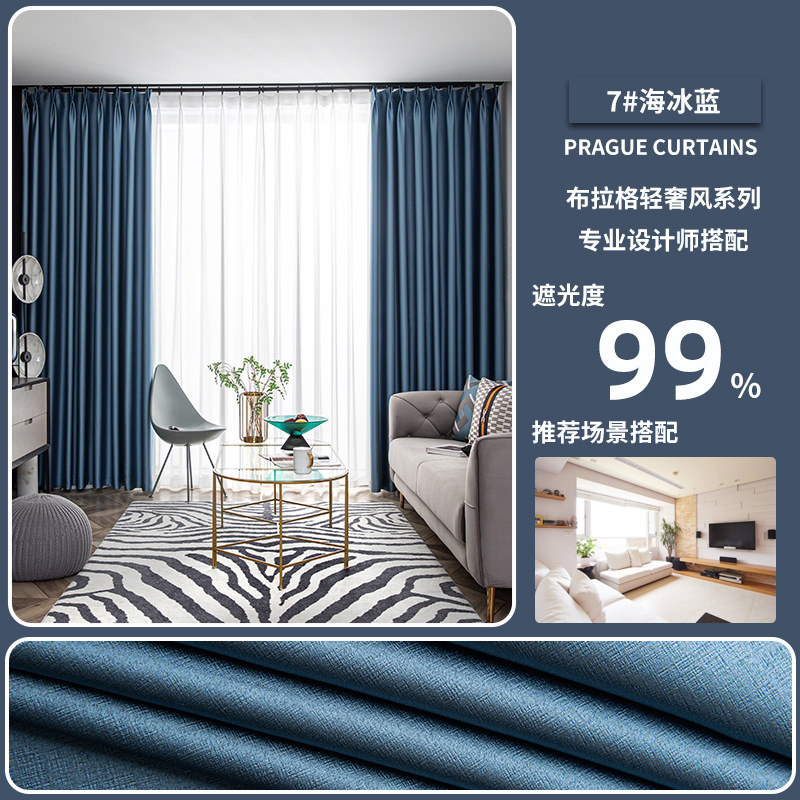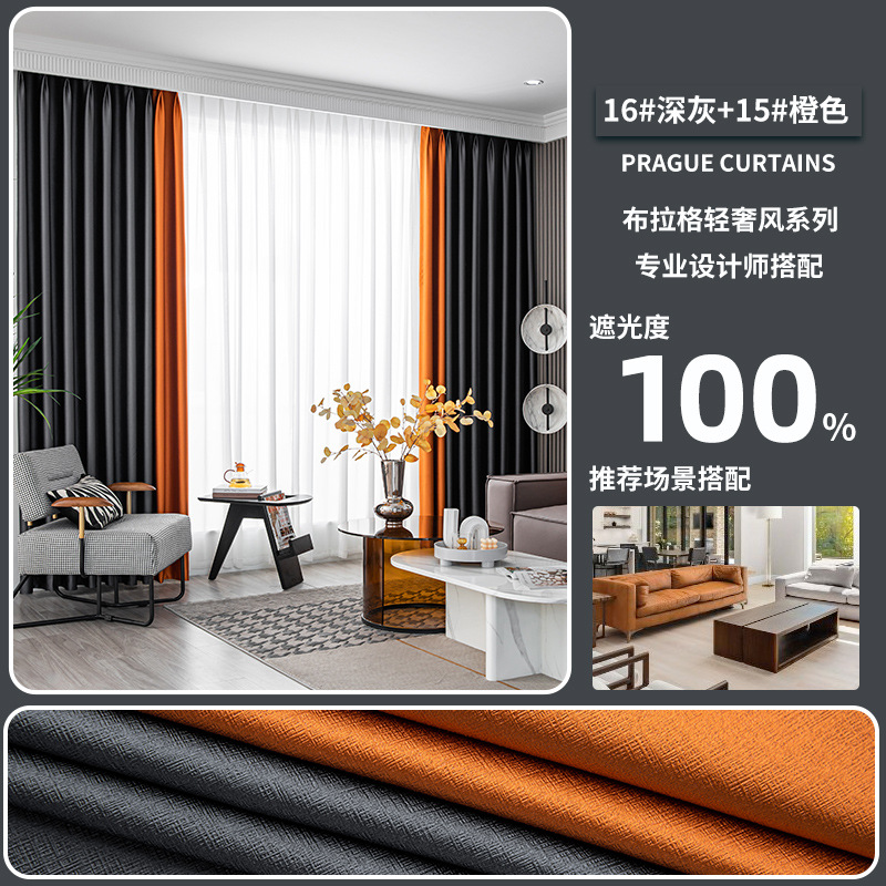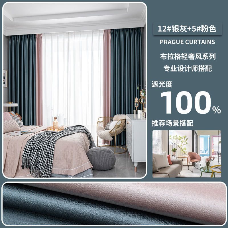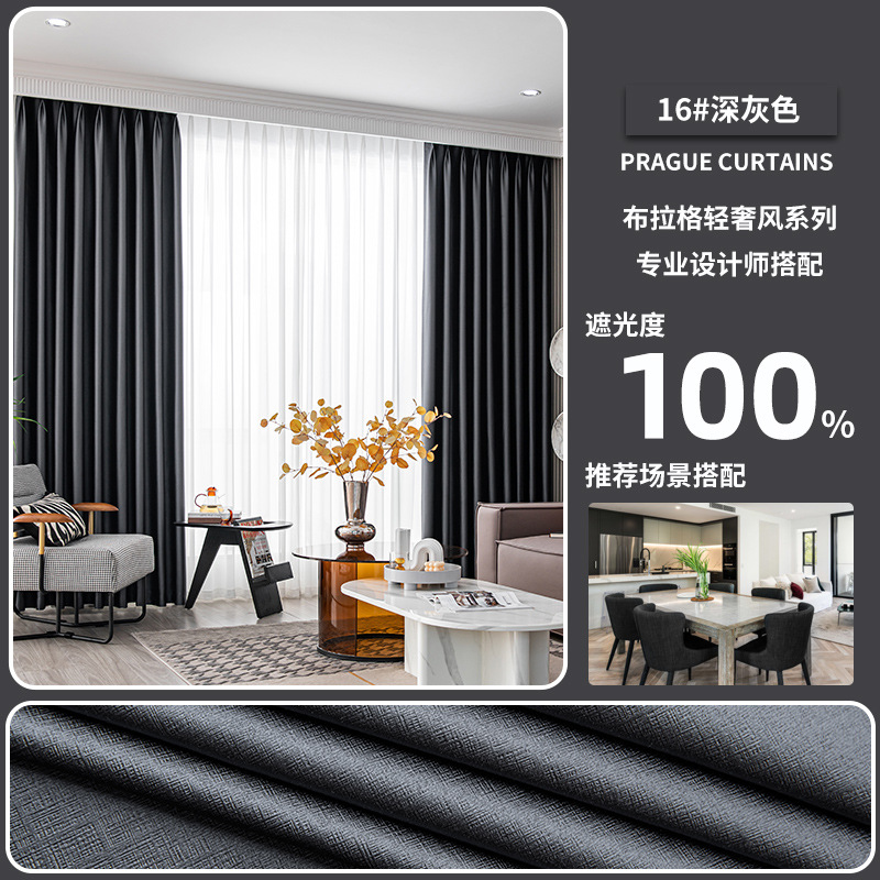 全遮光黑贝尼布拉格窗帘布批发零售家装工程酒店窗帘成品客厅卧室
