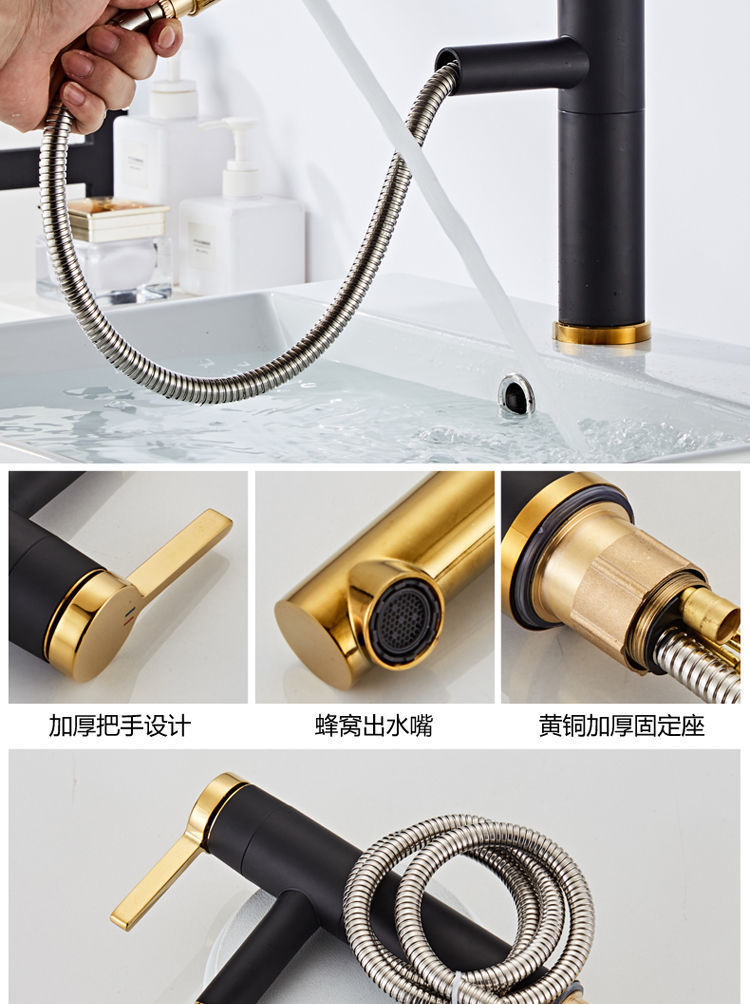 全铜多功能洗漱冷热水抽拉式台盆水龙头卫生间浴室洗脸盆面盆龙头