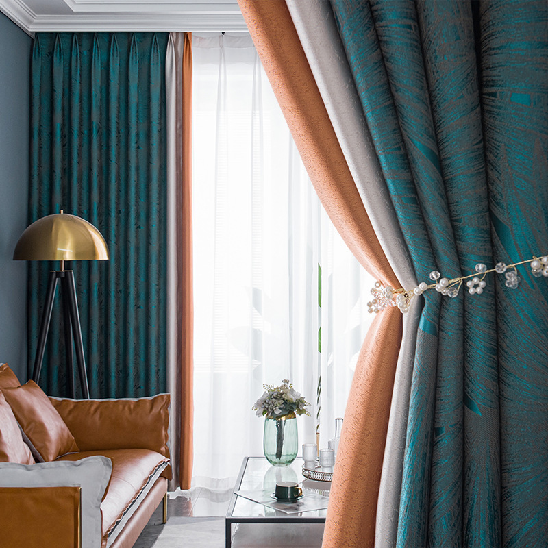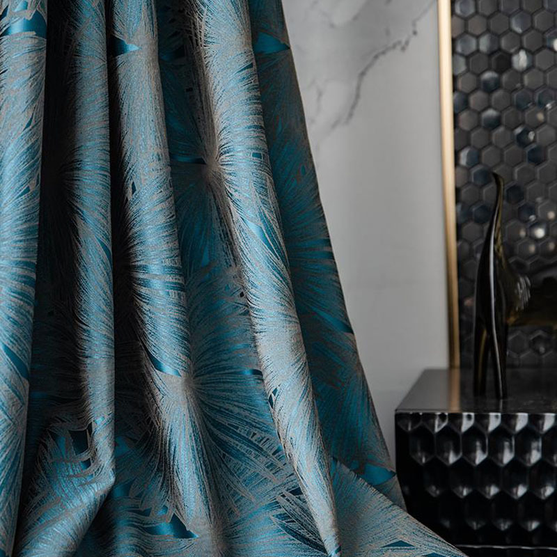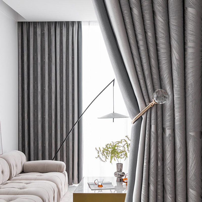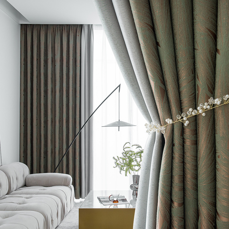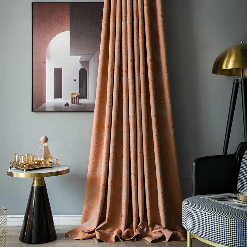 枫叶色织高精密提花窗帘布批发 北欧轻奢客厅成品窗帘 遮光布卧室