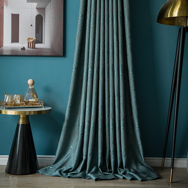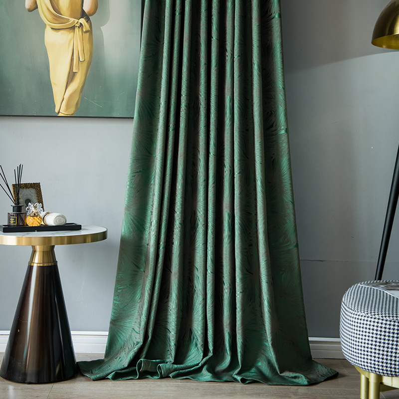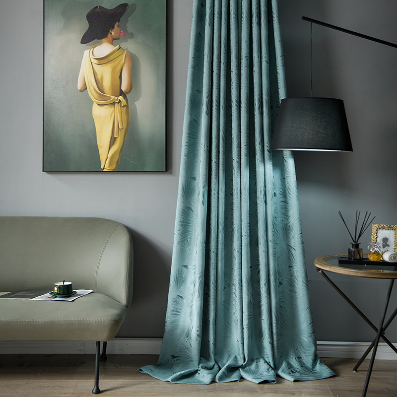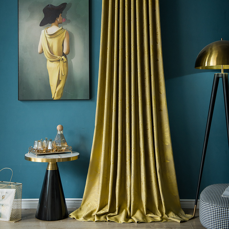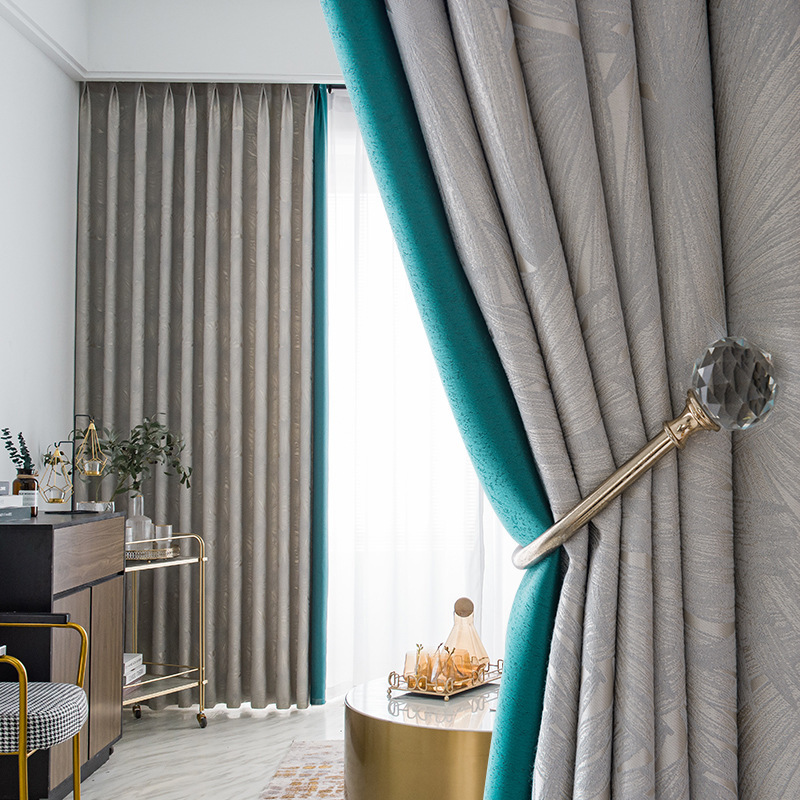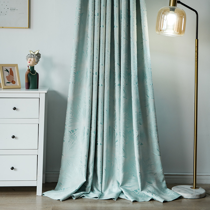 枫叶色织高精密提花窗帘布批发 北欧轻奢客厅成品窗帘 遮光布卧室