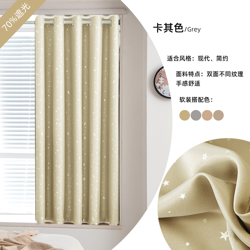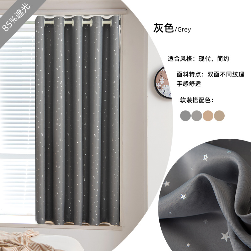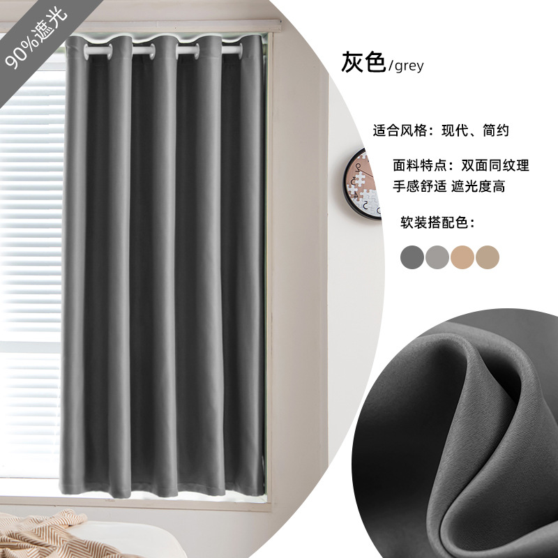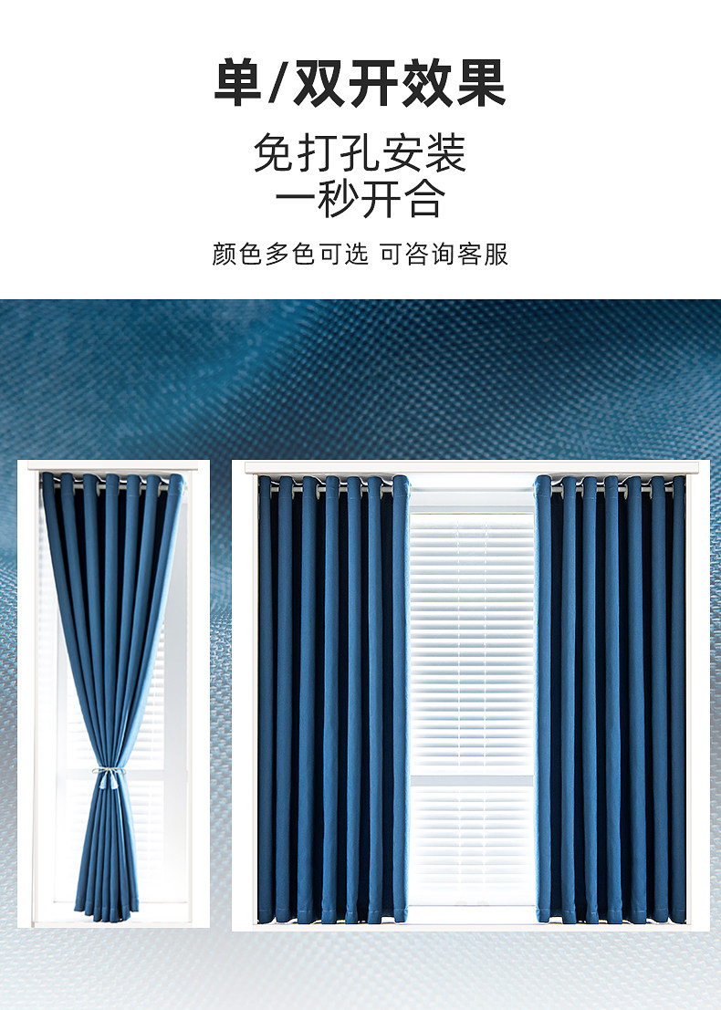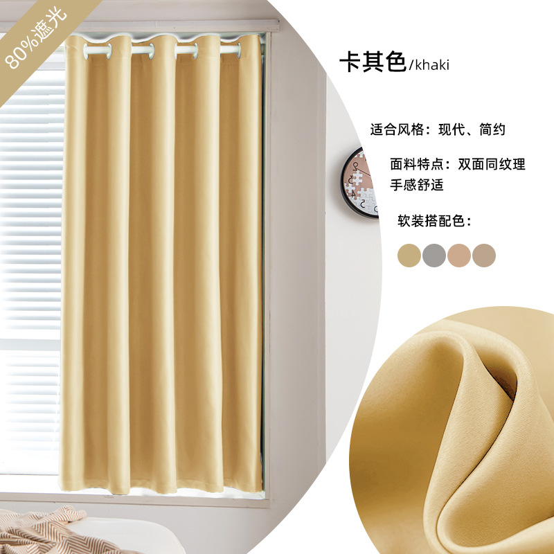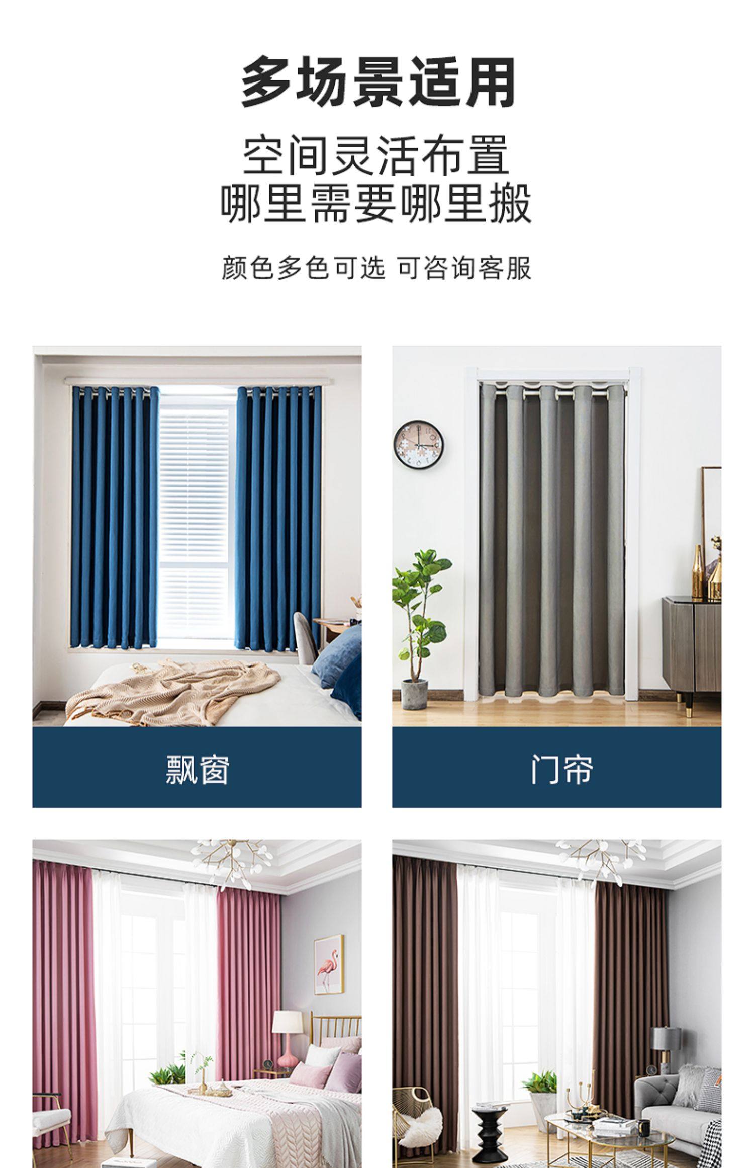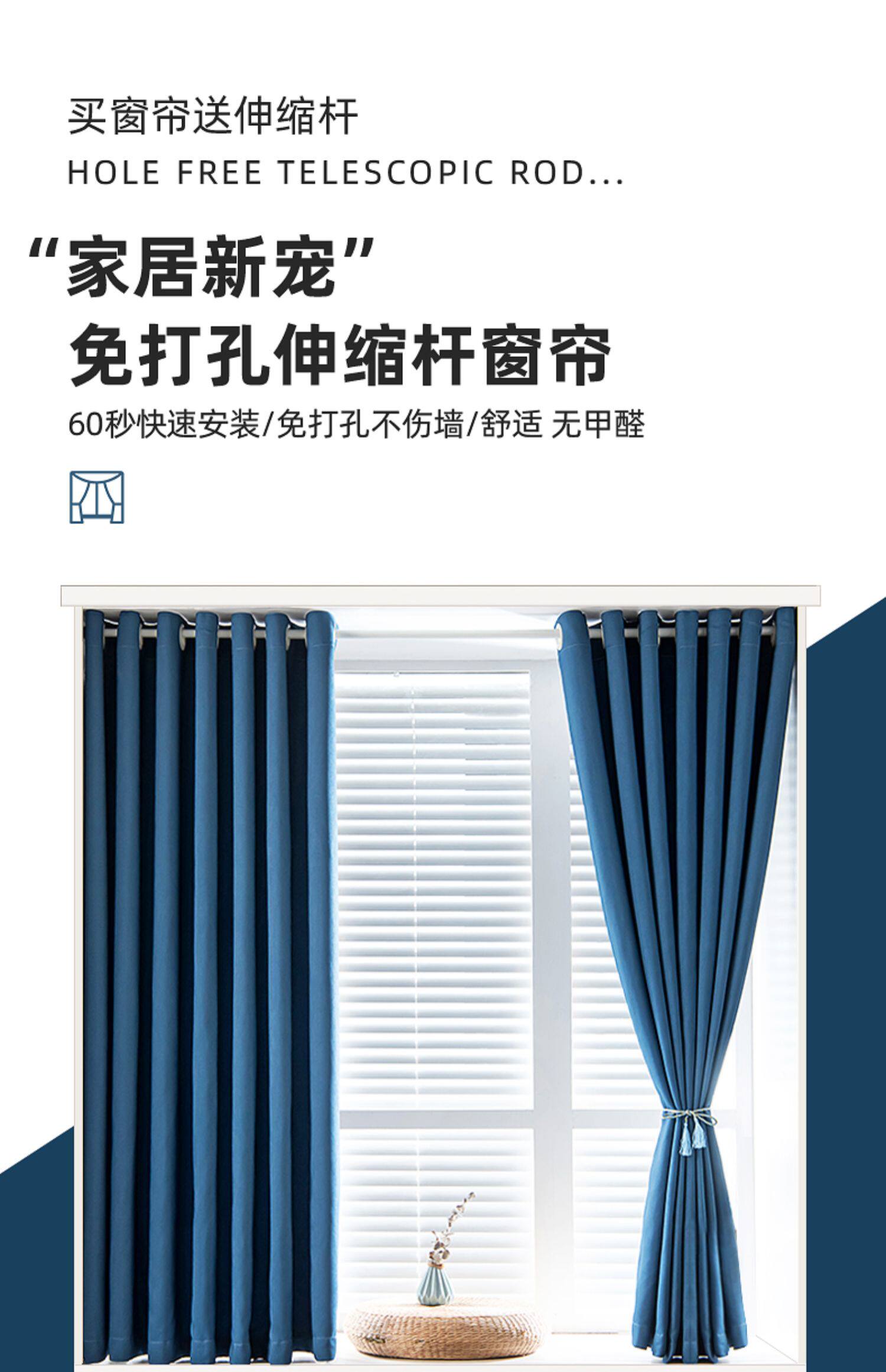 卧室飘窗简易窗帘免打孔安装2021年新款伸缩杆一整套遮阳全遮光布