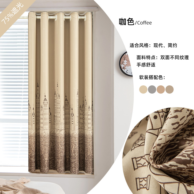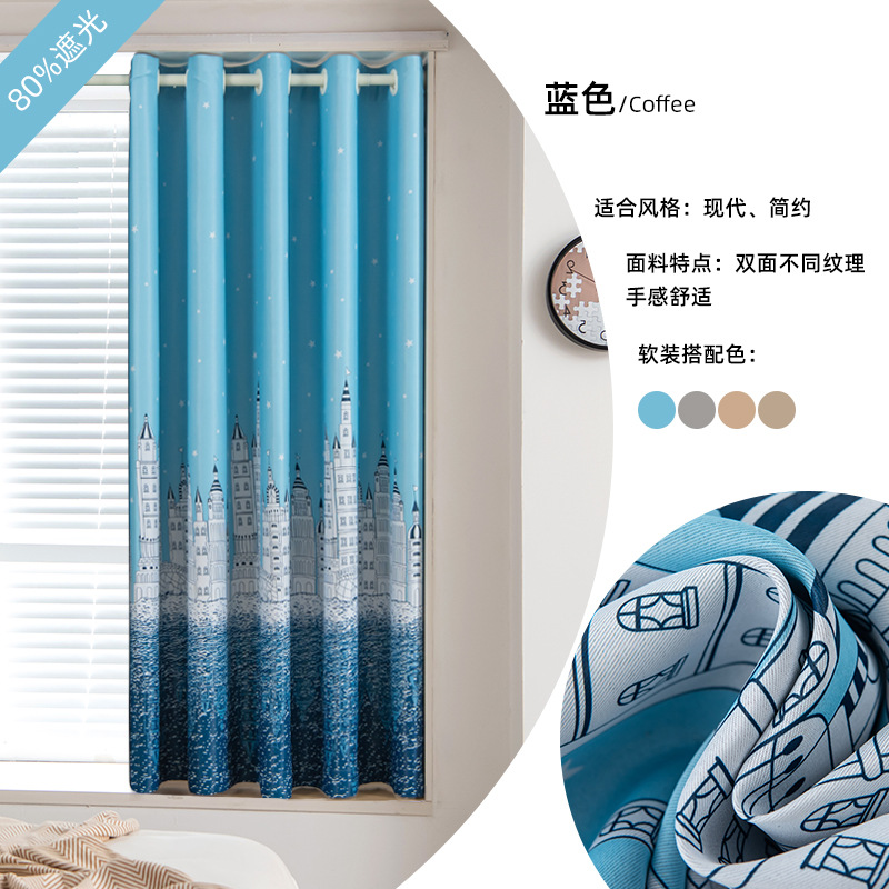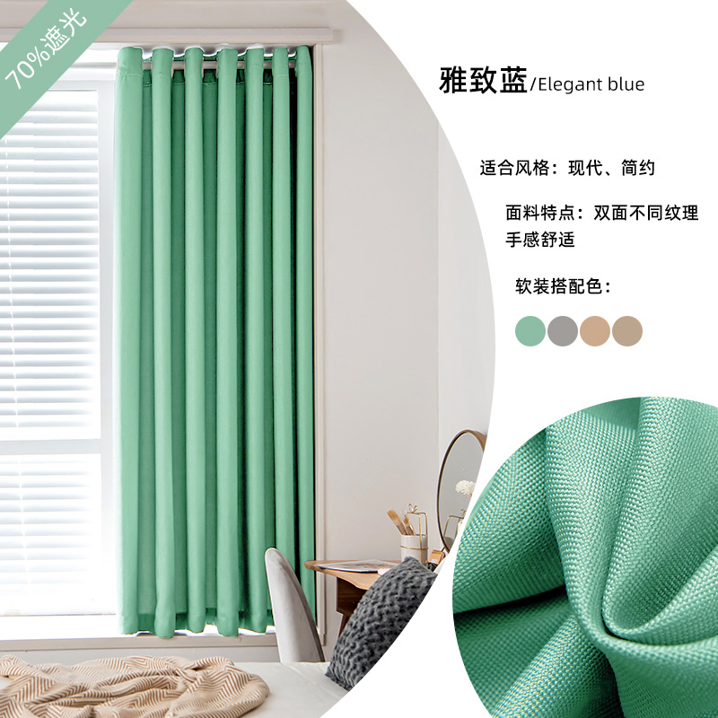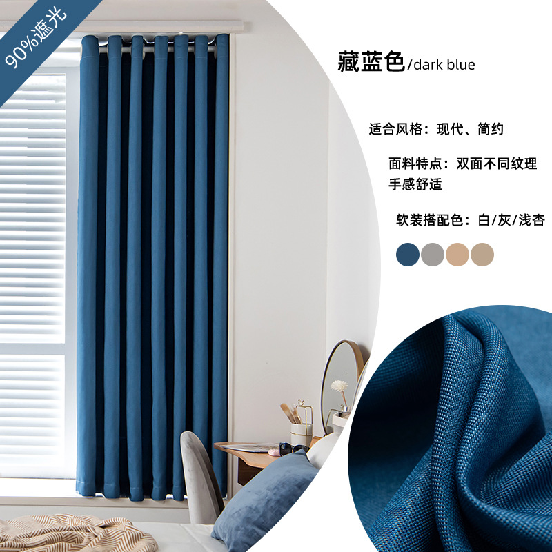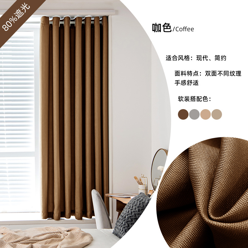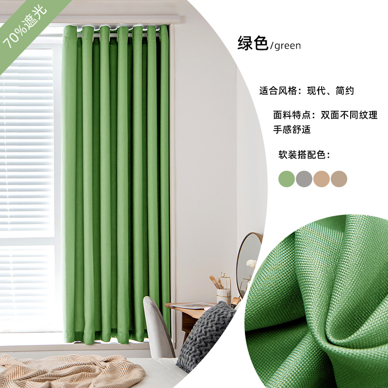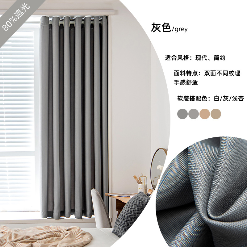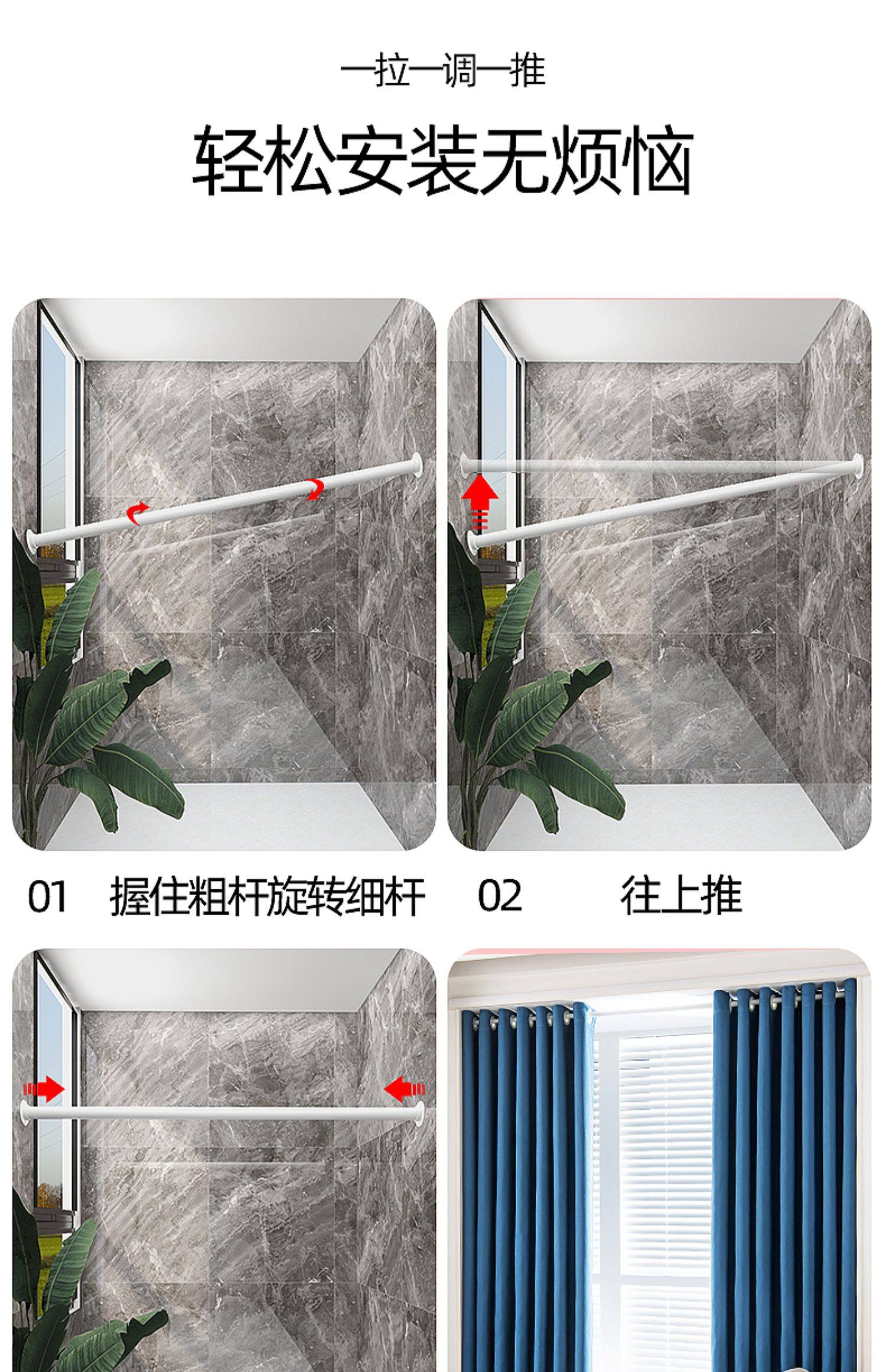 卧室飘窗简易窗帘免打孔安装2021年新款伸缩杆一整套遮阳全遮光布