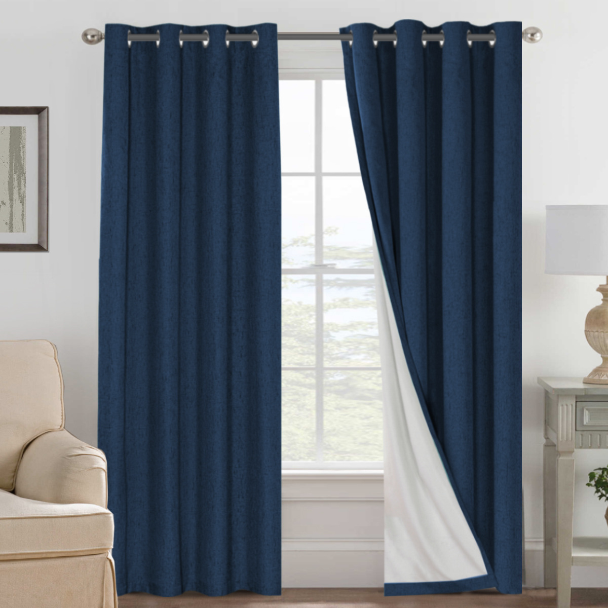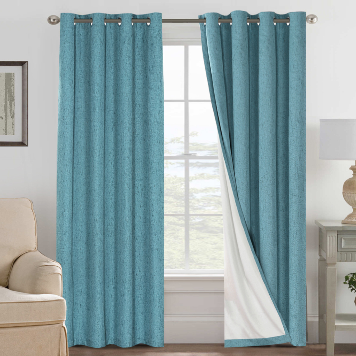 纯色高档窗帘布隔音全遮光窗帘成品美式亚麻涂层打孔成品窗帘跨境