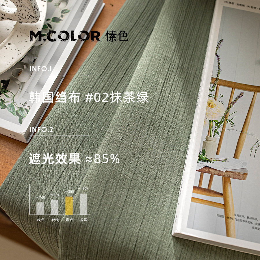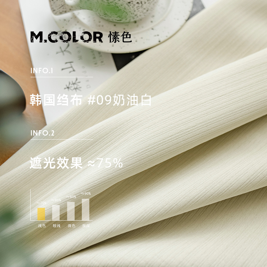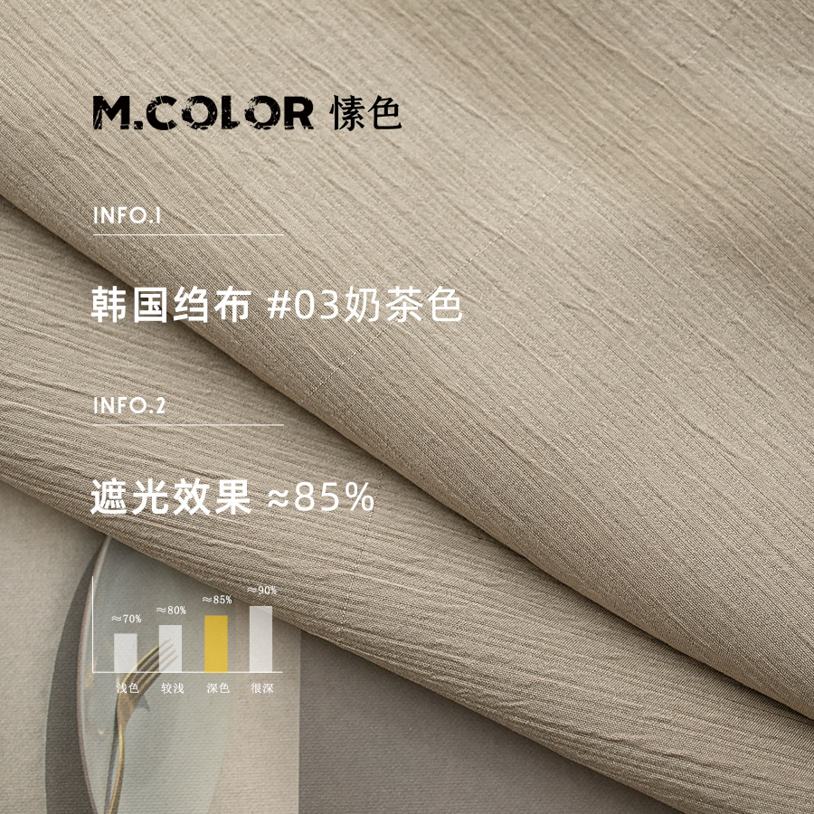 【韩国皱布】日式压皱细条纹遮光窗帘布侘寂风奶茶色奶油网红窗帘