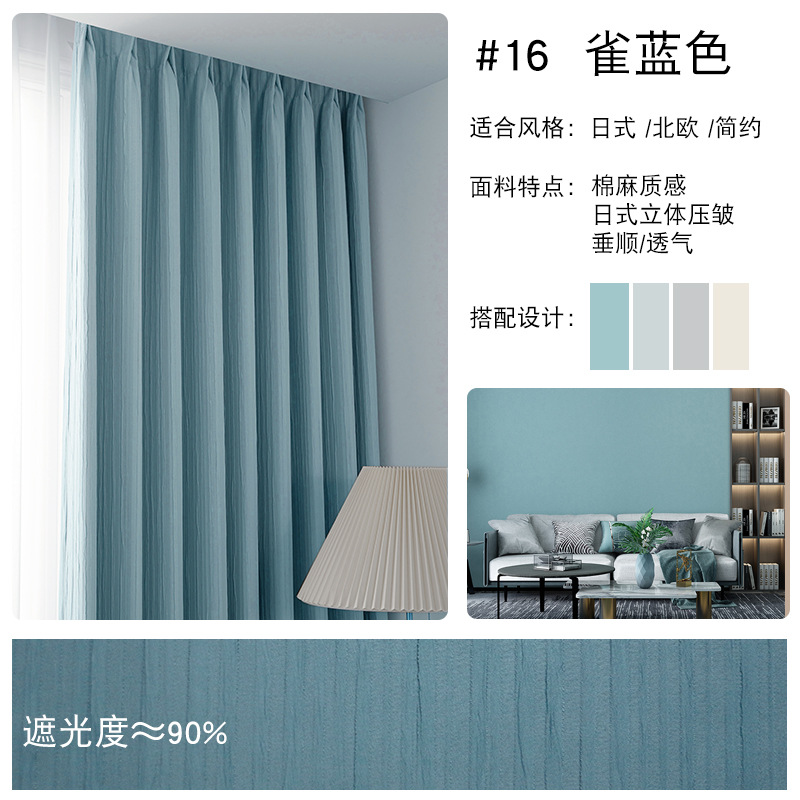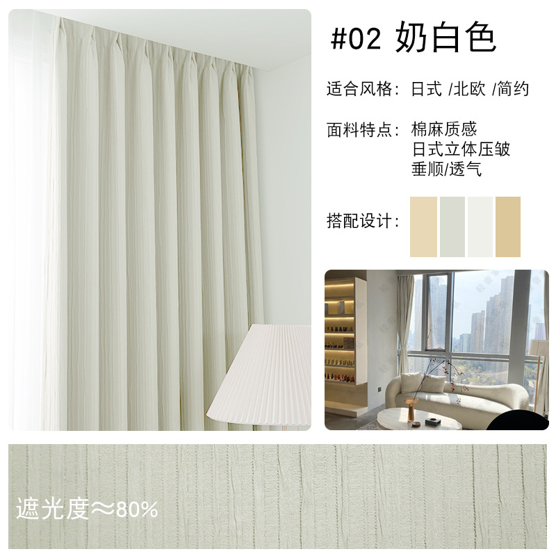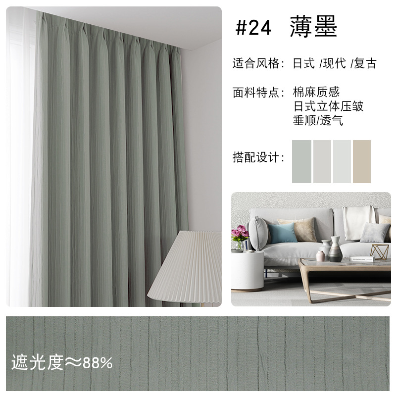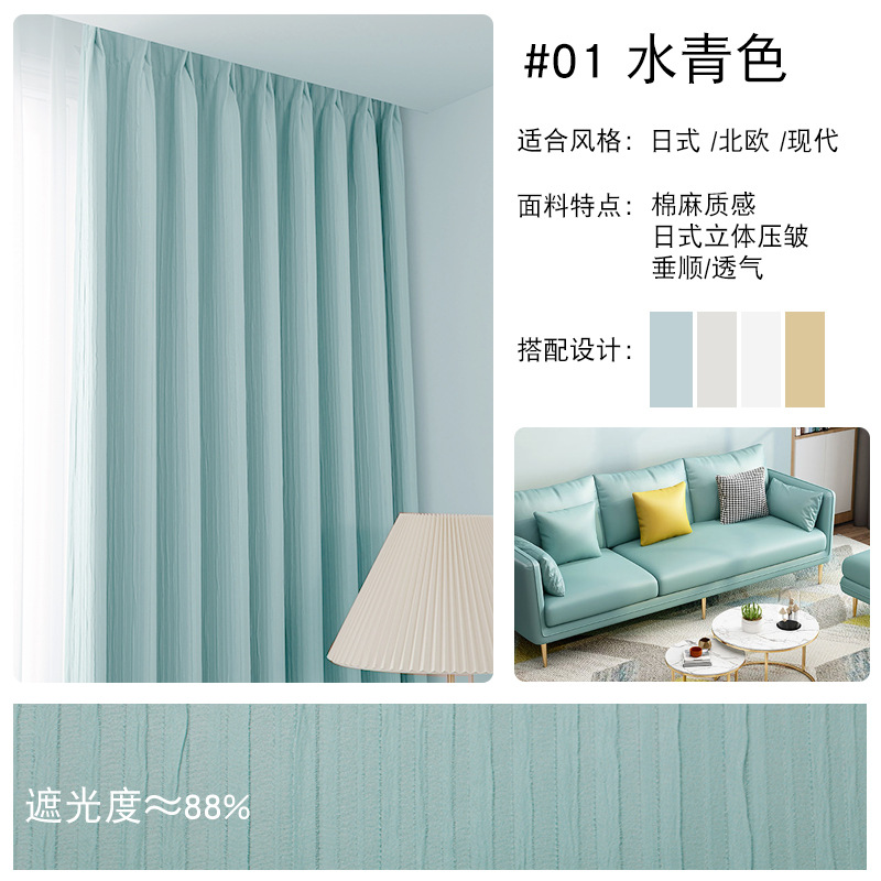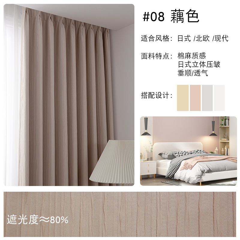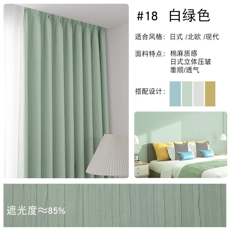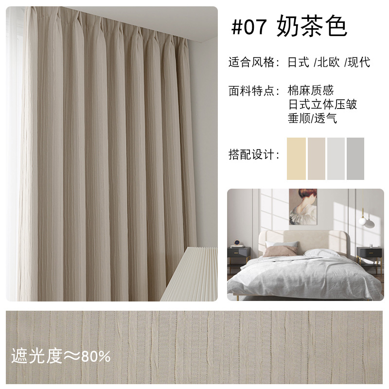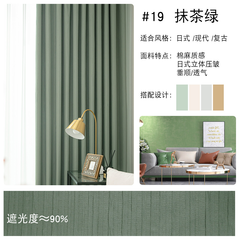 奶茶色窗帘布遮光窗帘卧室客厅飘窗奶油抹茶色遮光布帘简约风