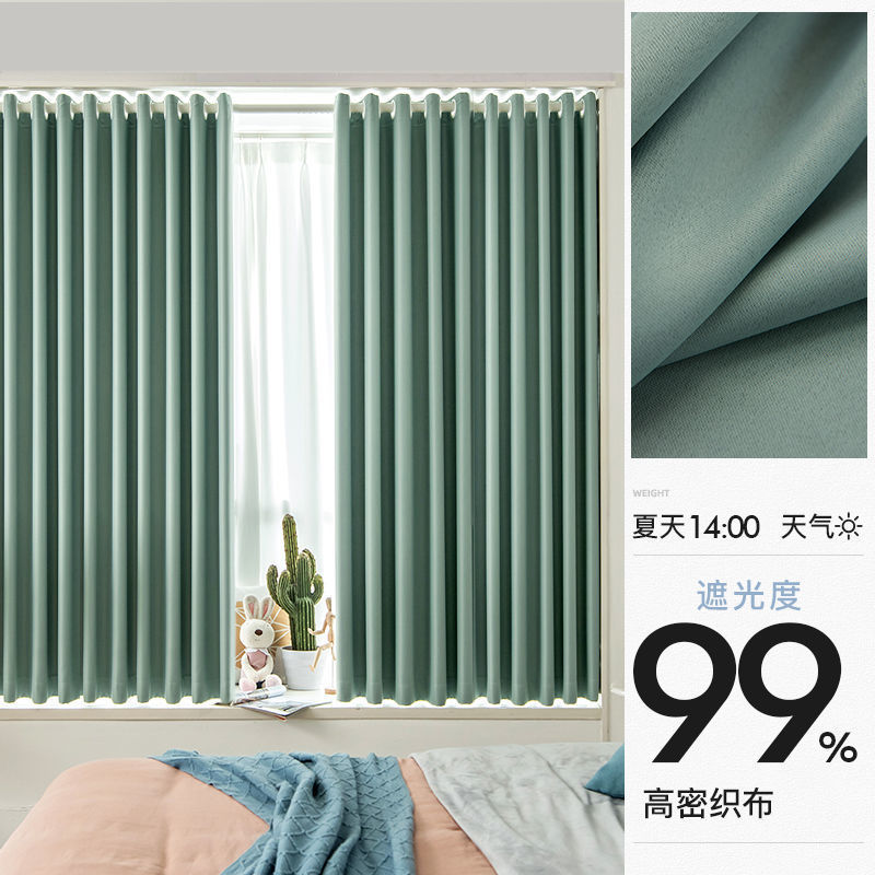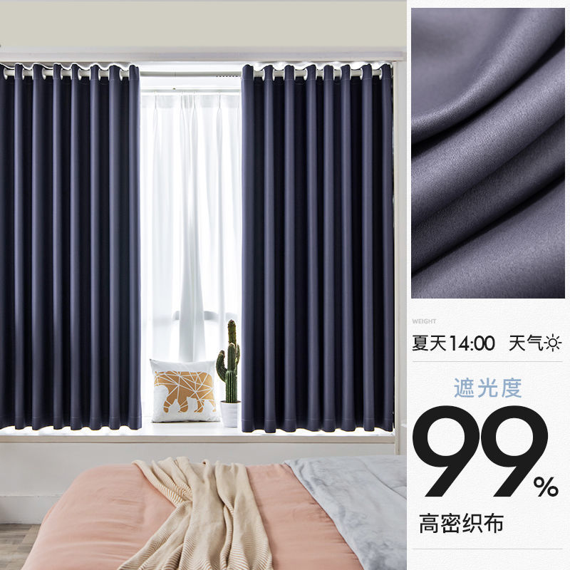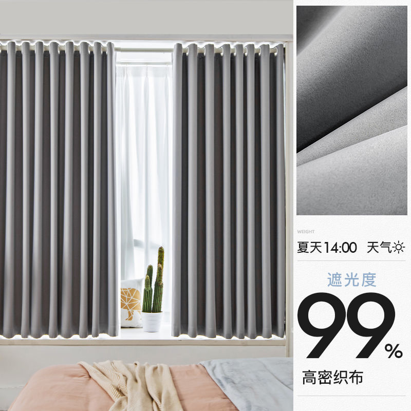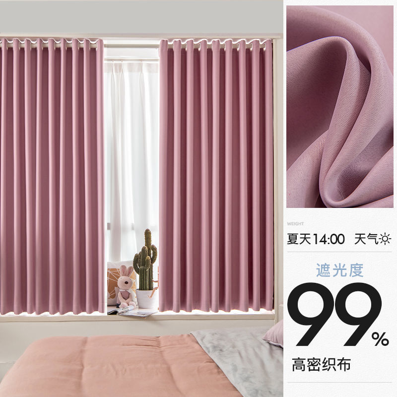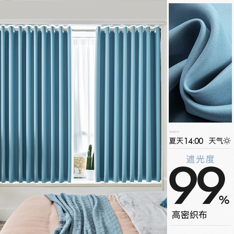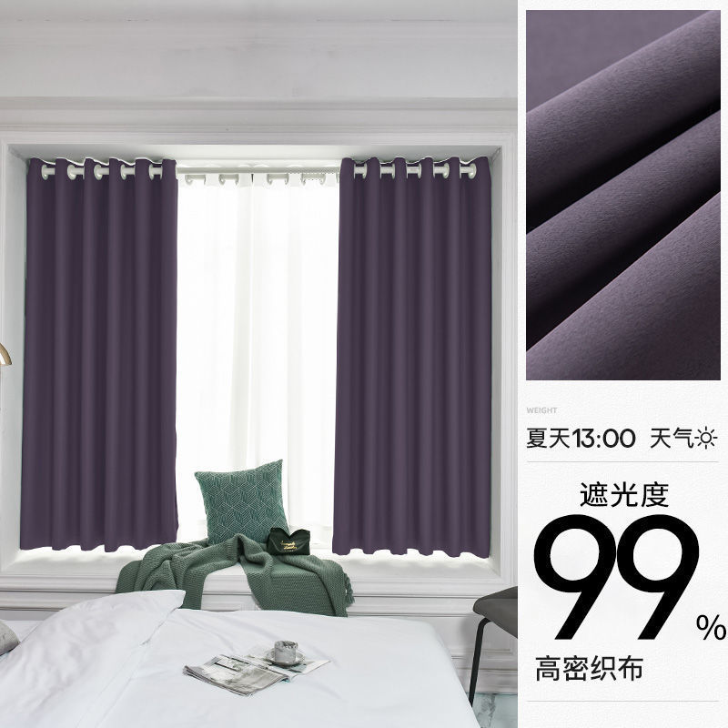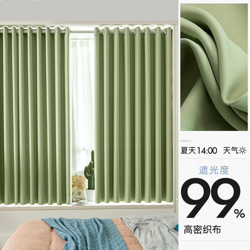 2022年新款窗帘卧室全遮光免打孔安装全套带杆飘窗宿舍客厅遮阳布
