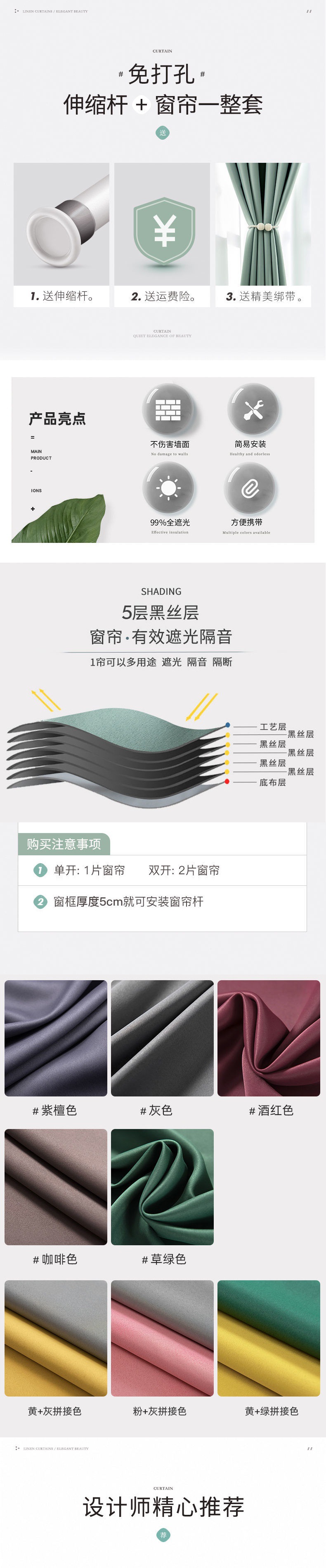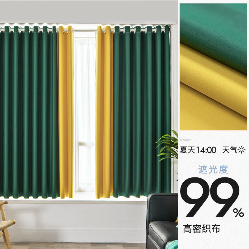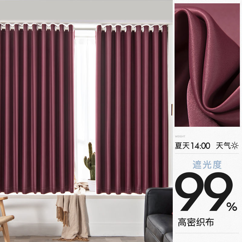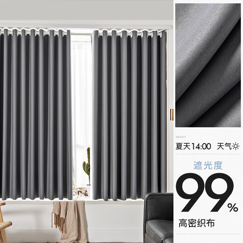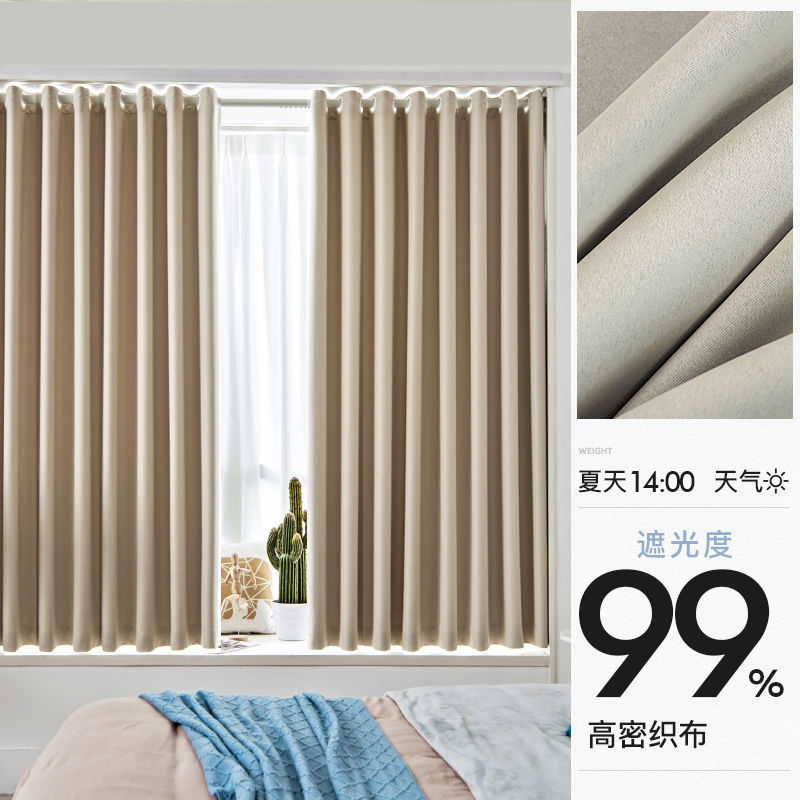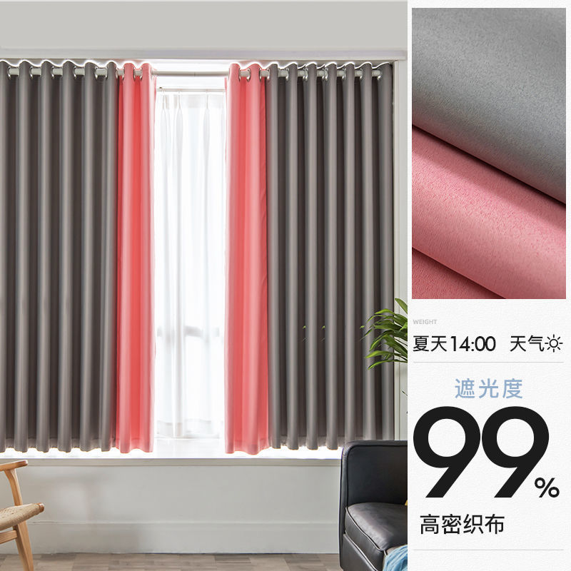 2022年新款窗帘卧室全遮光免打孔安装全套带杆飘窗宿舍客厅遮阳布