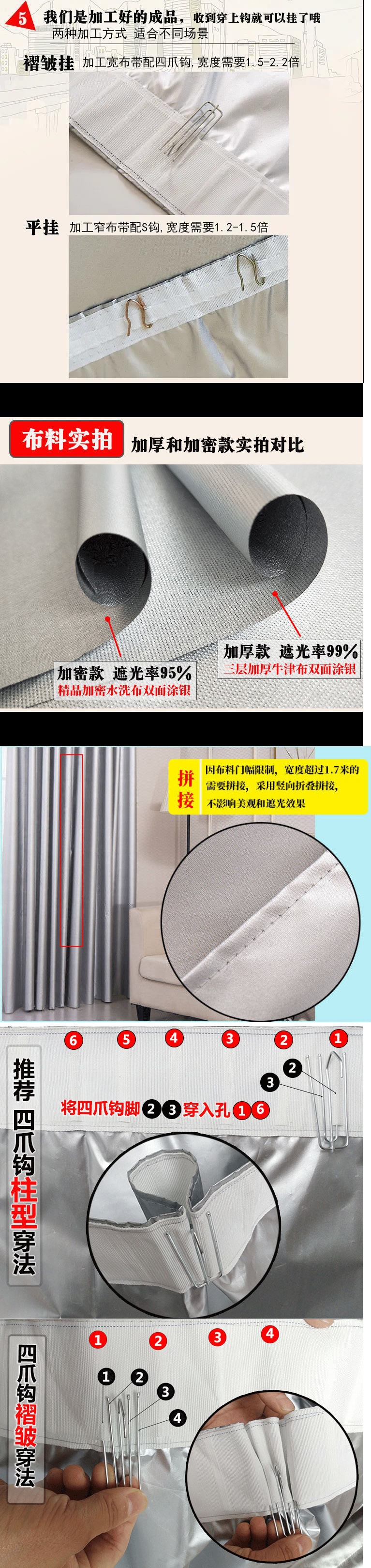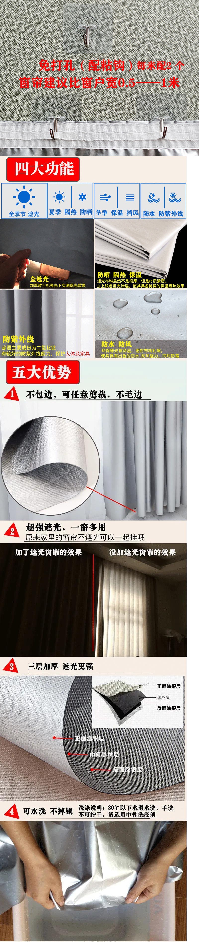 全遮光隔热窗帘遮光布成品防晒卧室阳台出租房免打孔遮阳布不透光