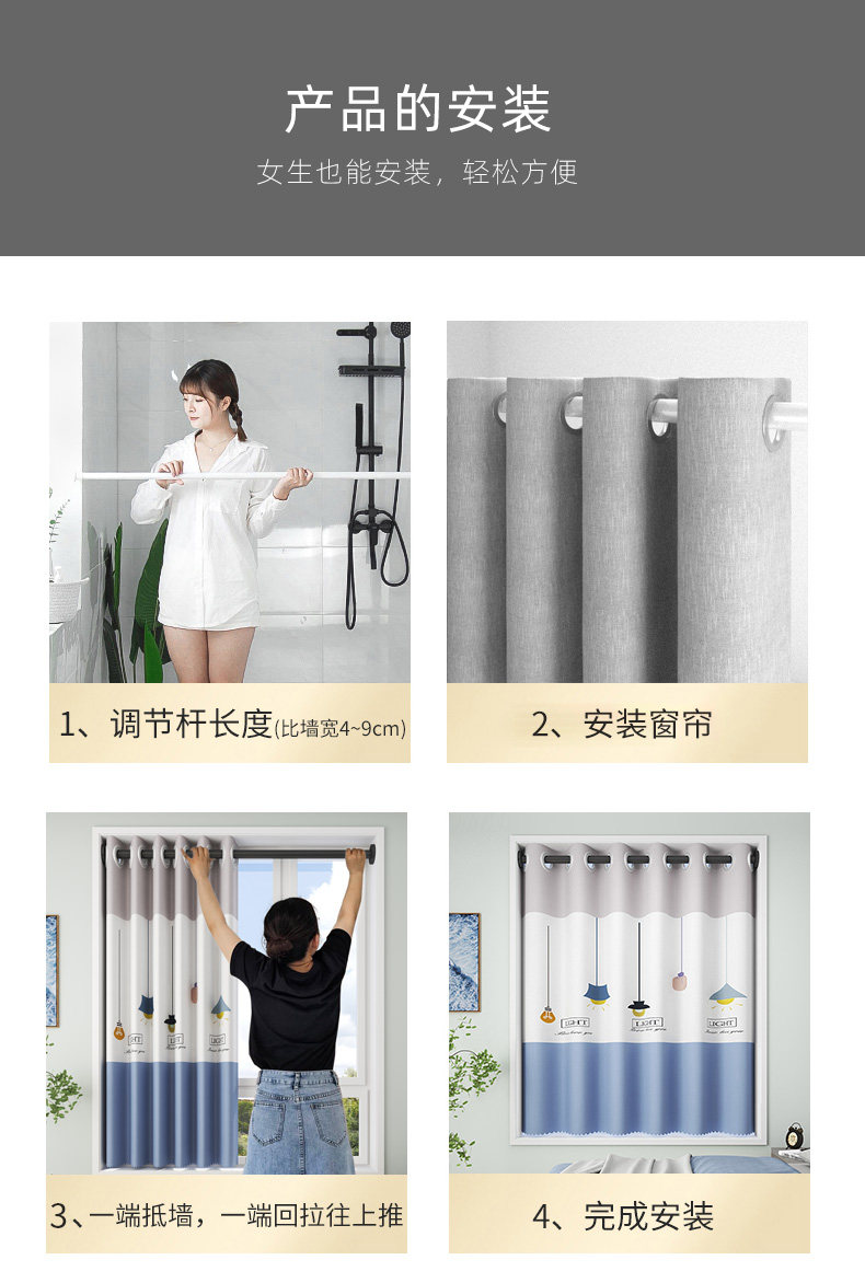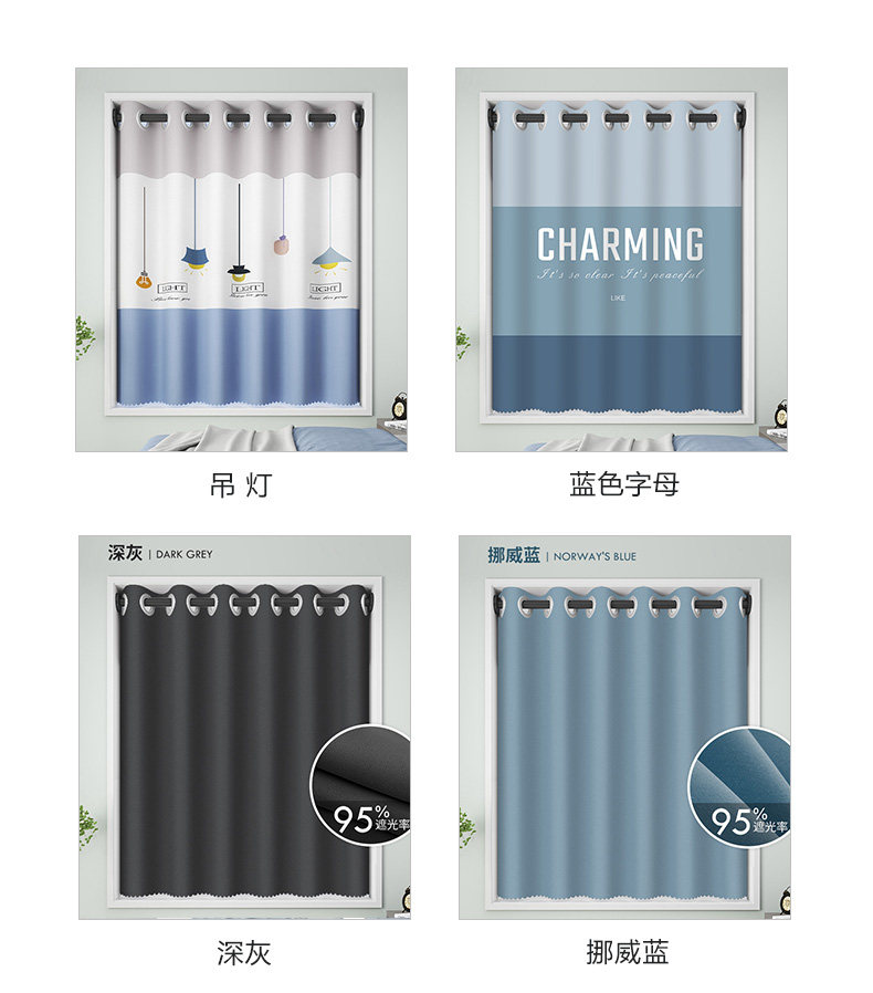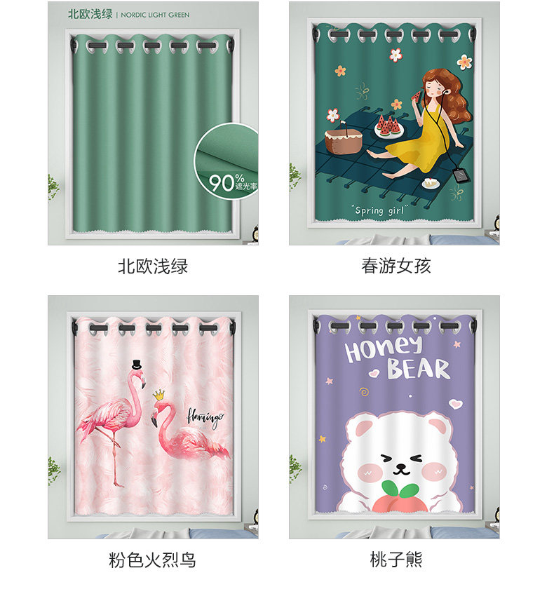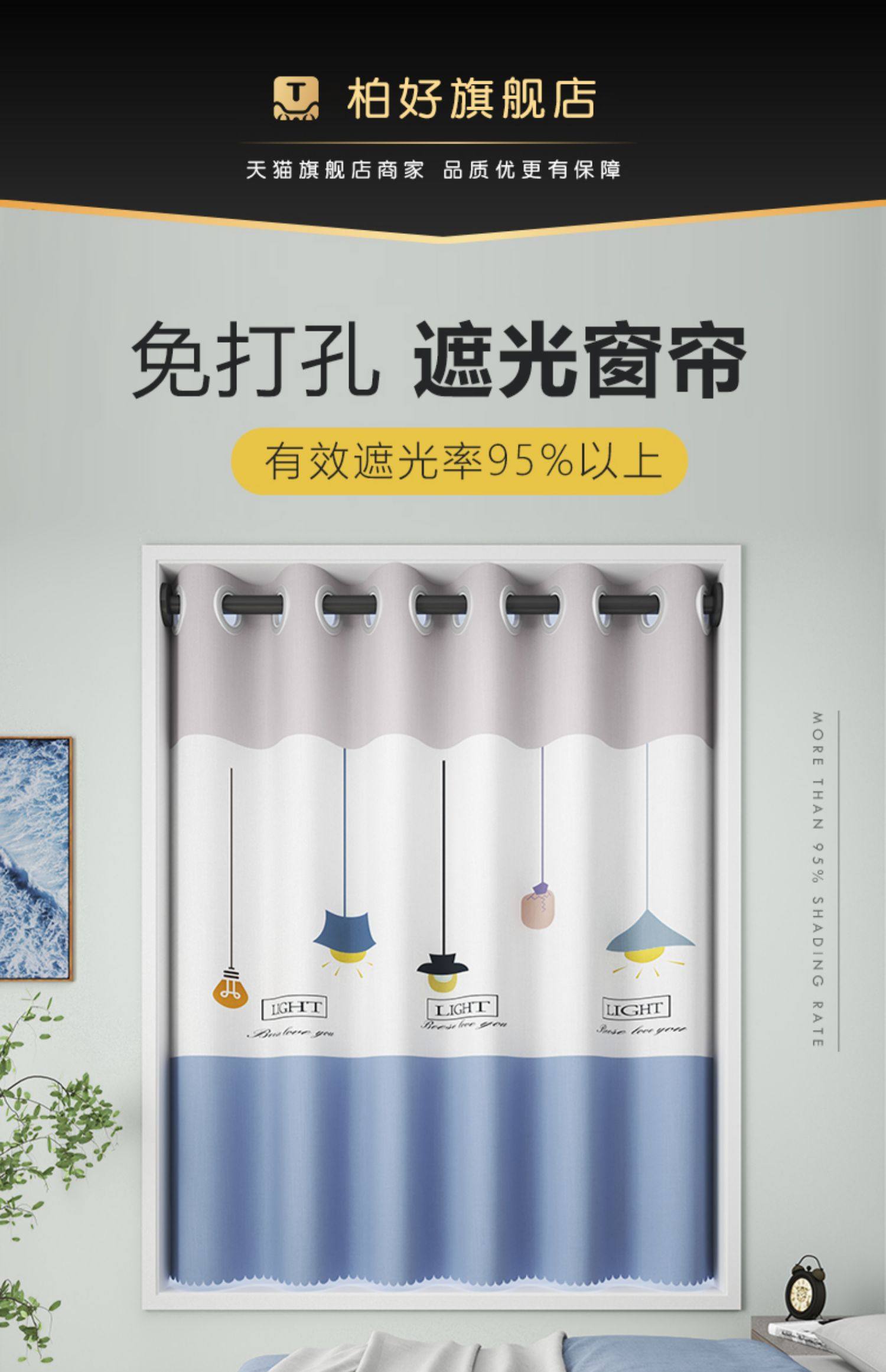 窗帘儿童房短款免打孔安装伸缩杆全遮光布飘窗卧室宿舍小窗户家用