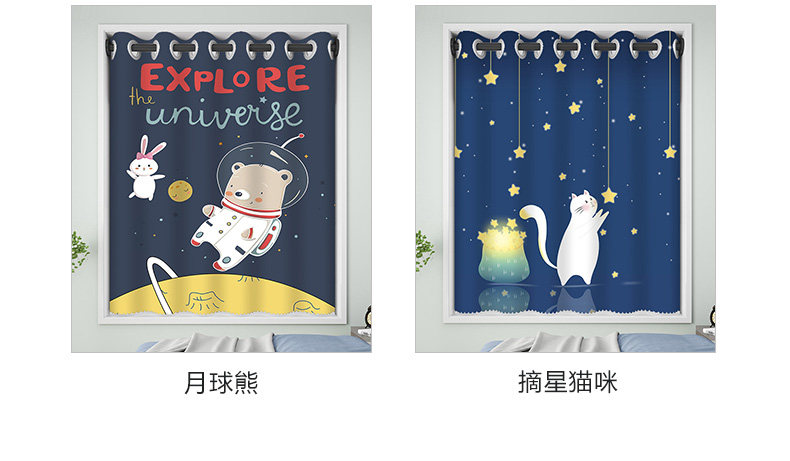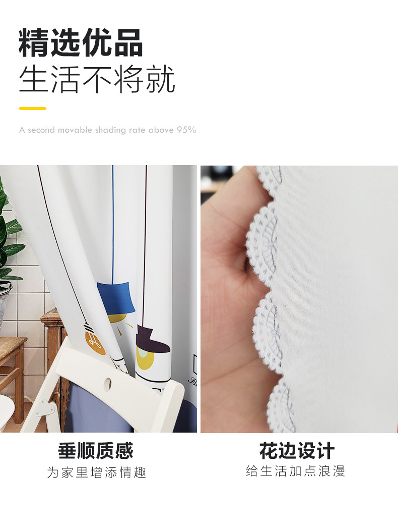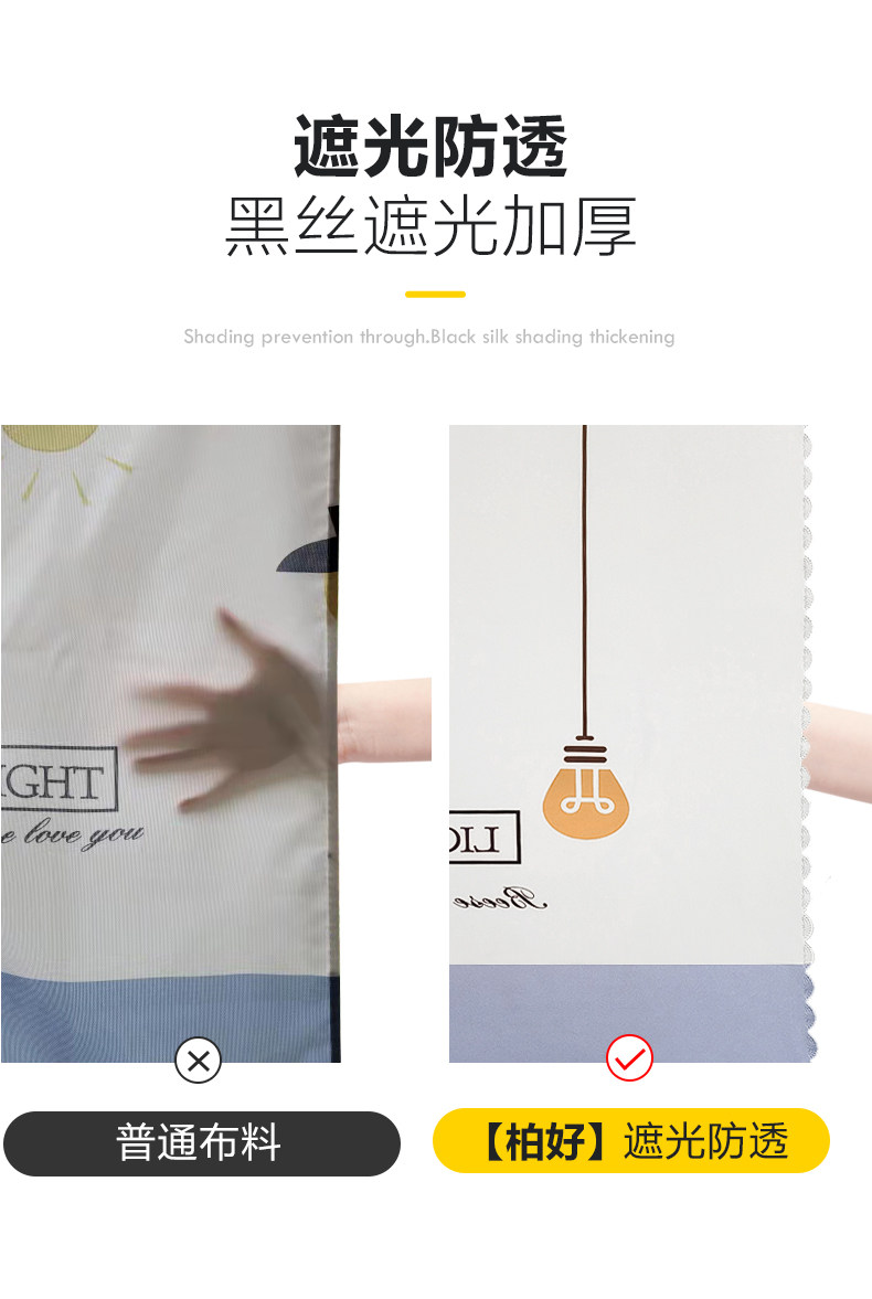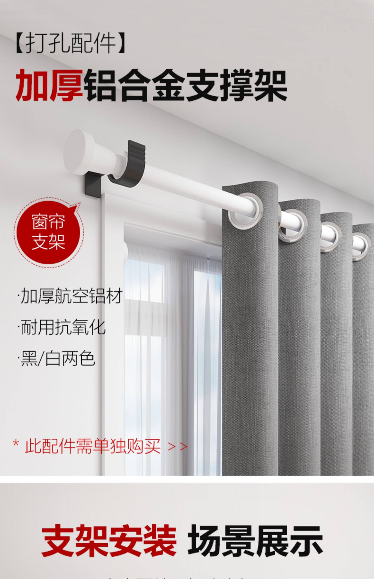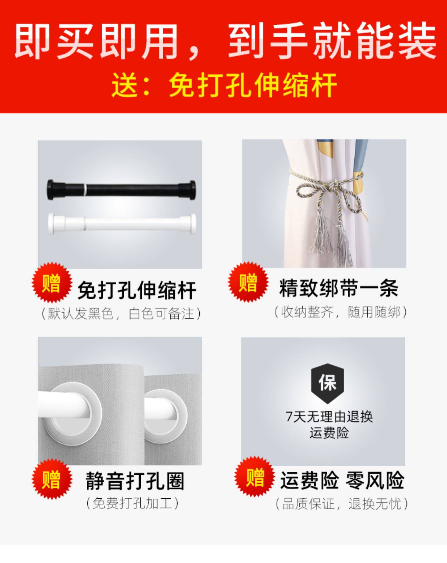 窗帘儿童房短款免打孔安装伸缩杆全遮光布飘窗卧室宿舍小窗户家用