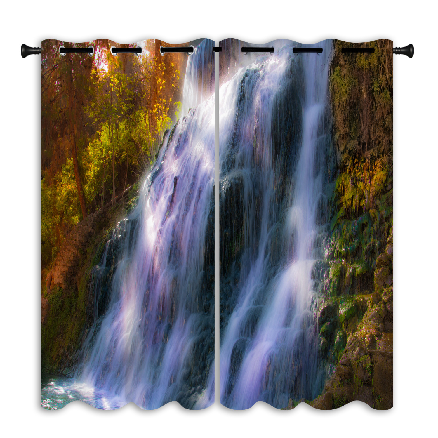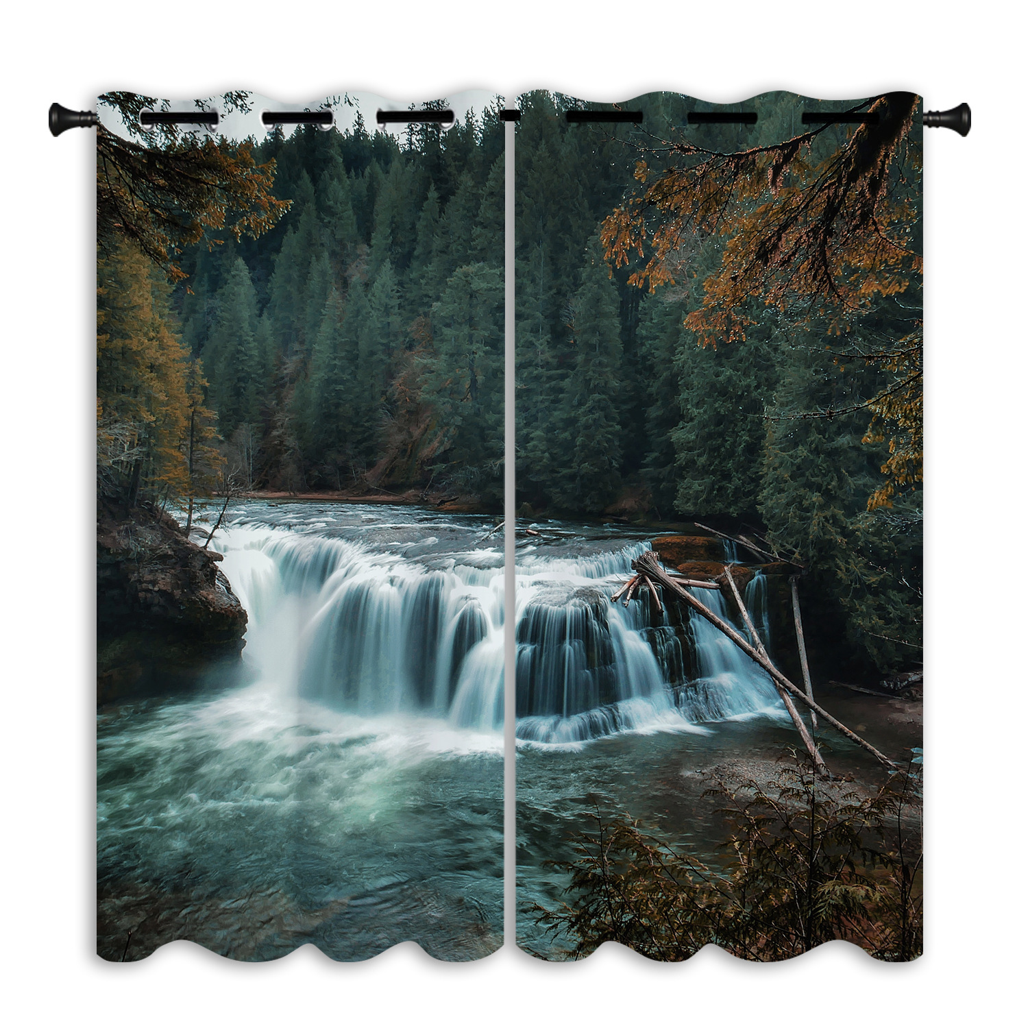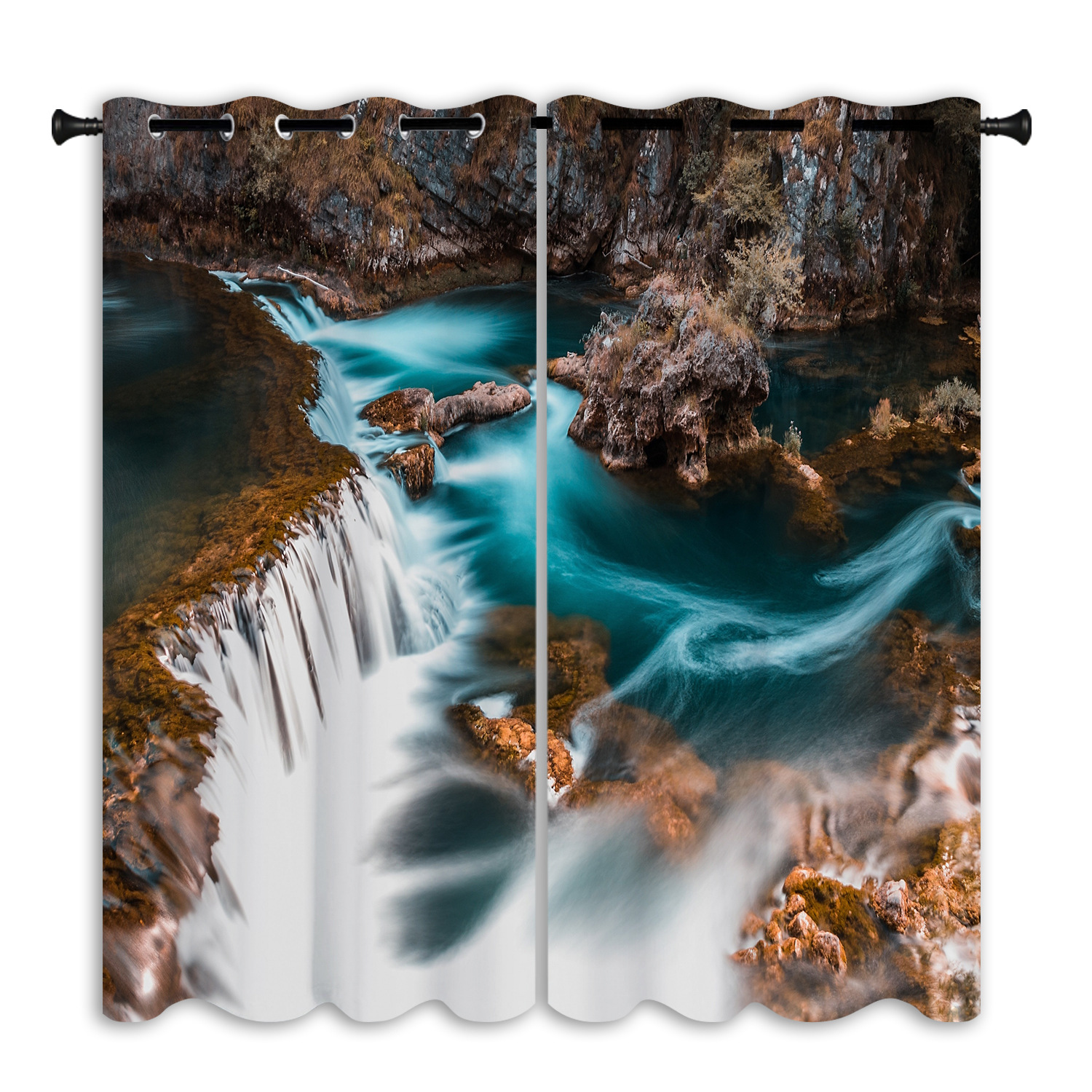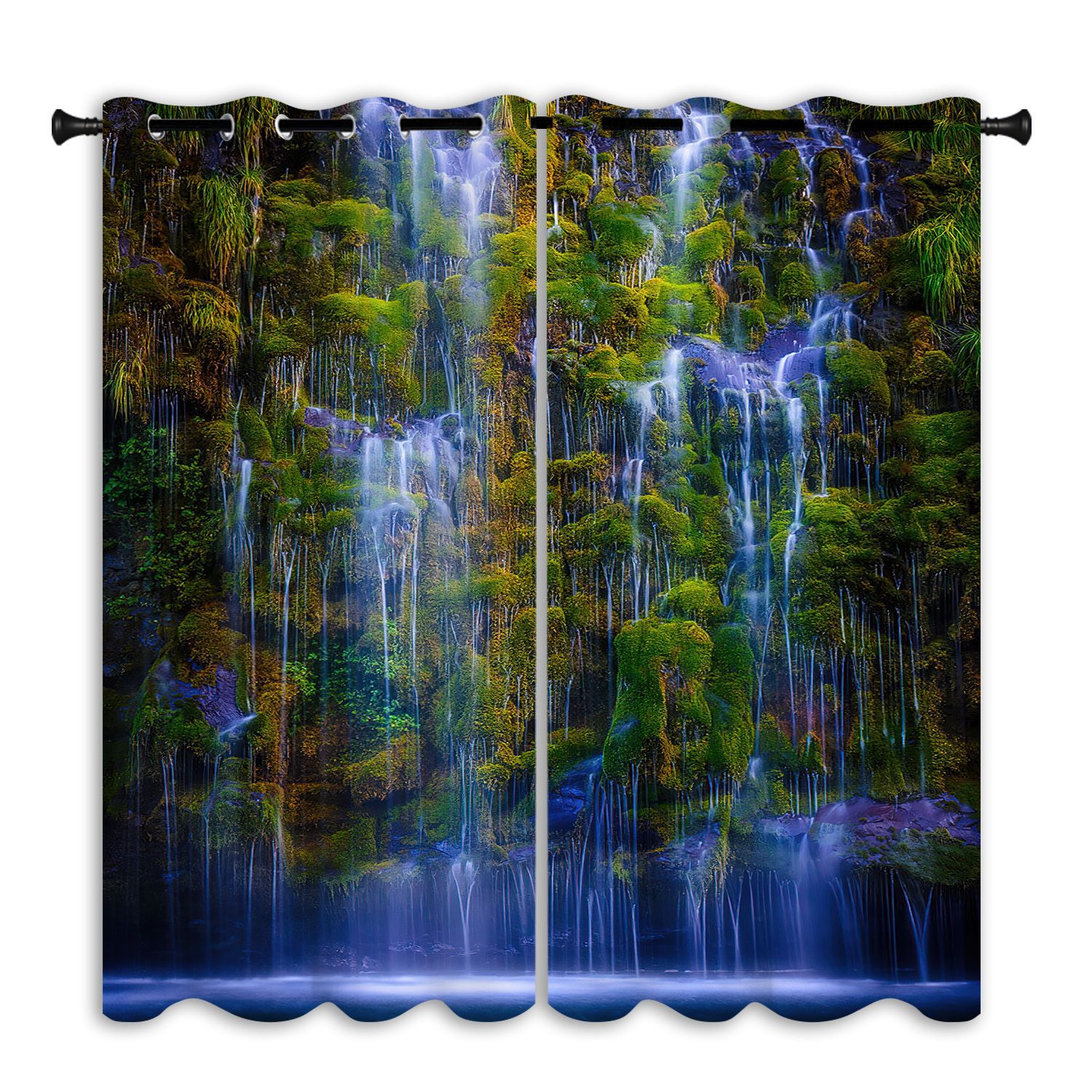 跨境亚马逊户外瀑布背景防水窗帘成品窗帘隔断帘防晒打孔布艺窗帘