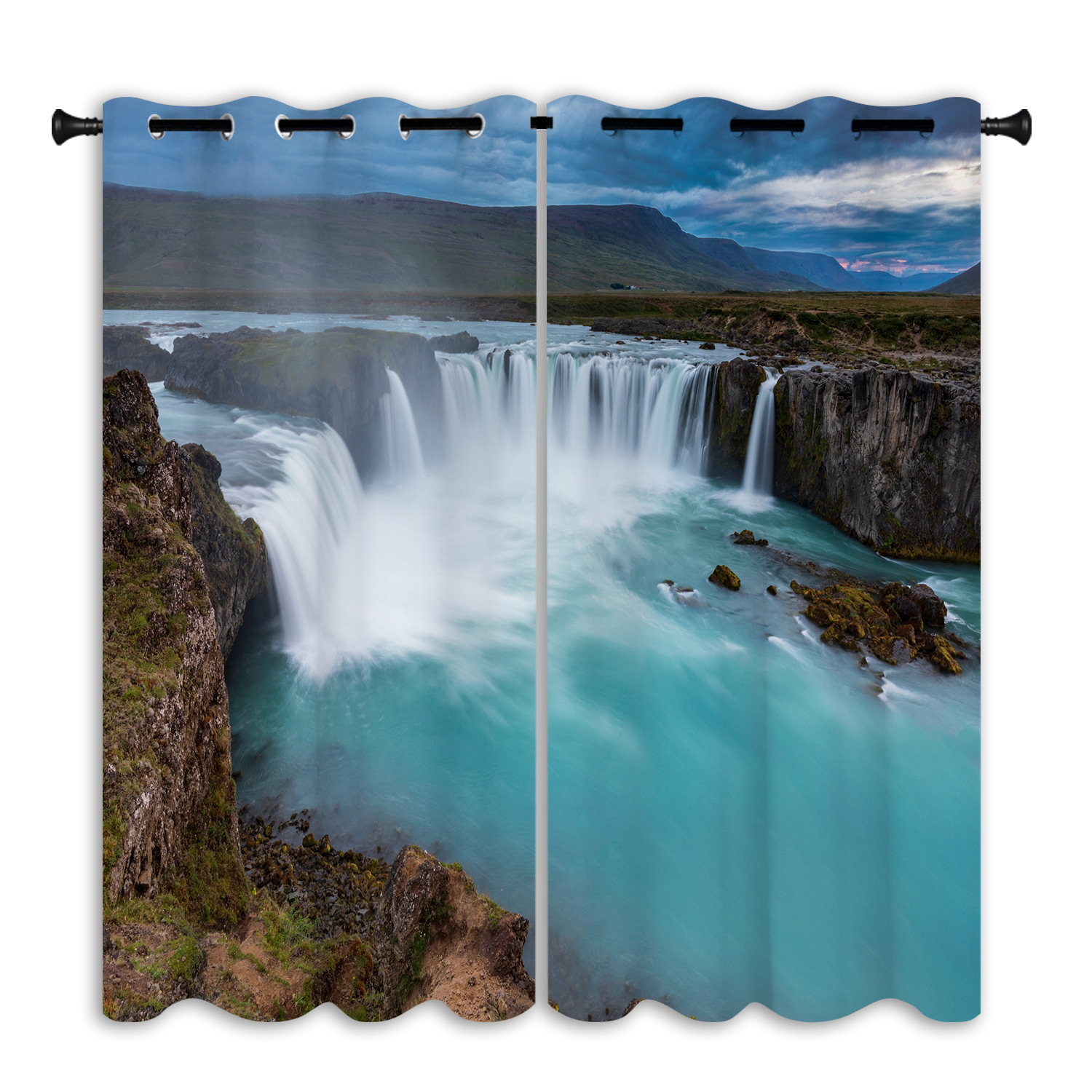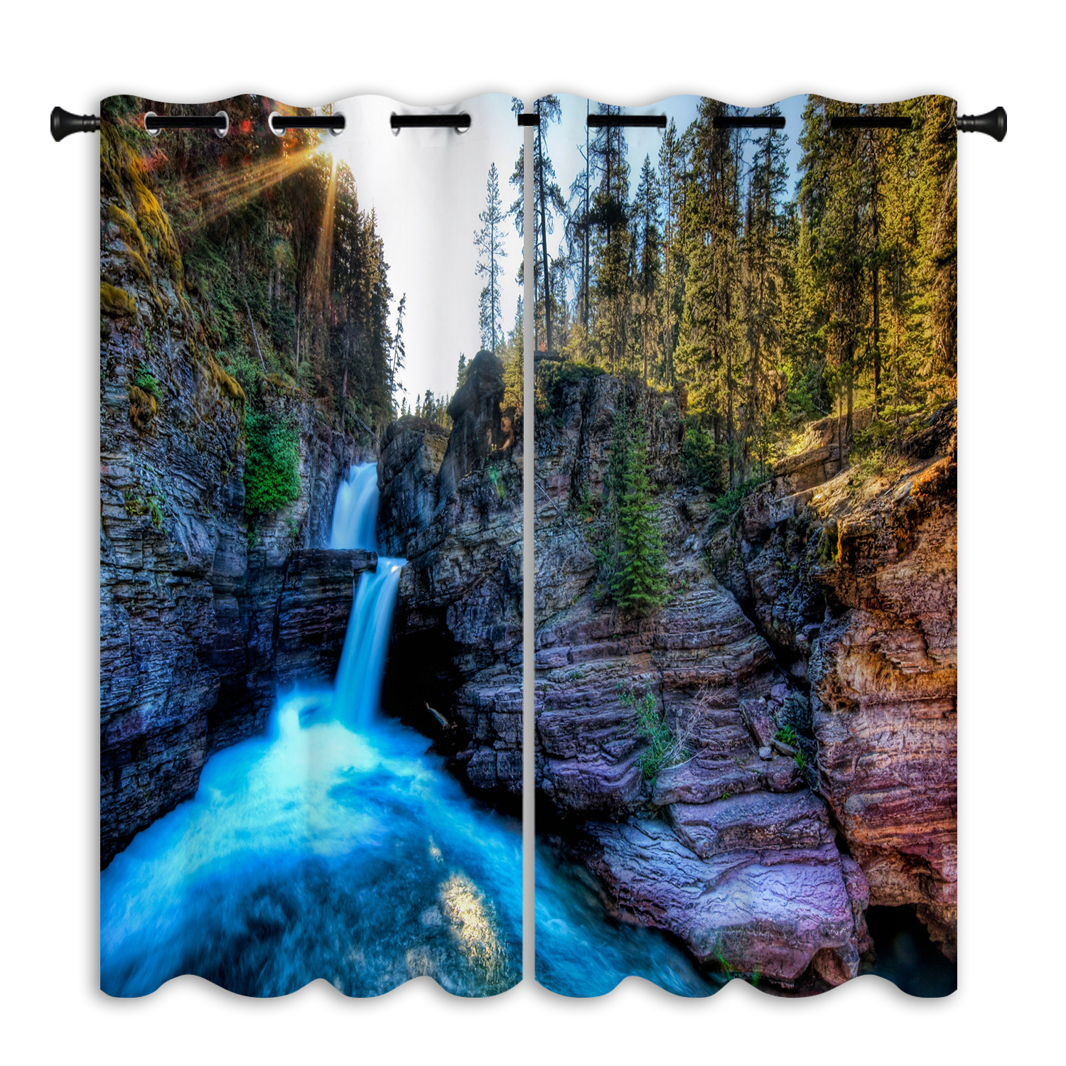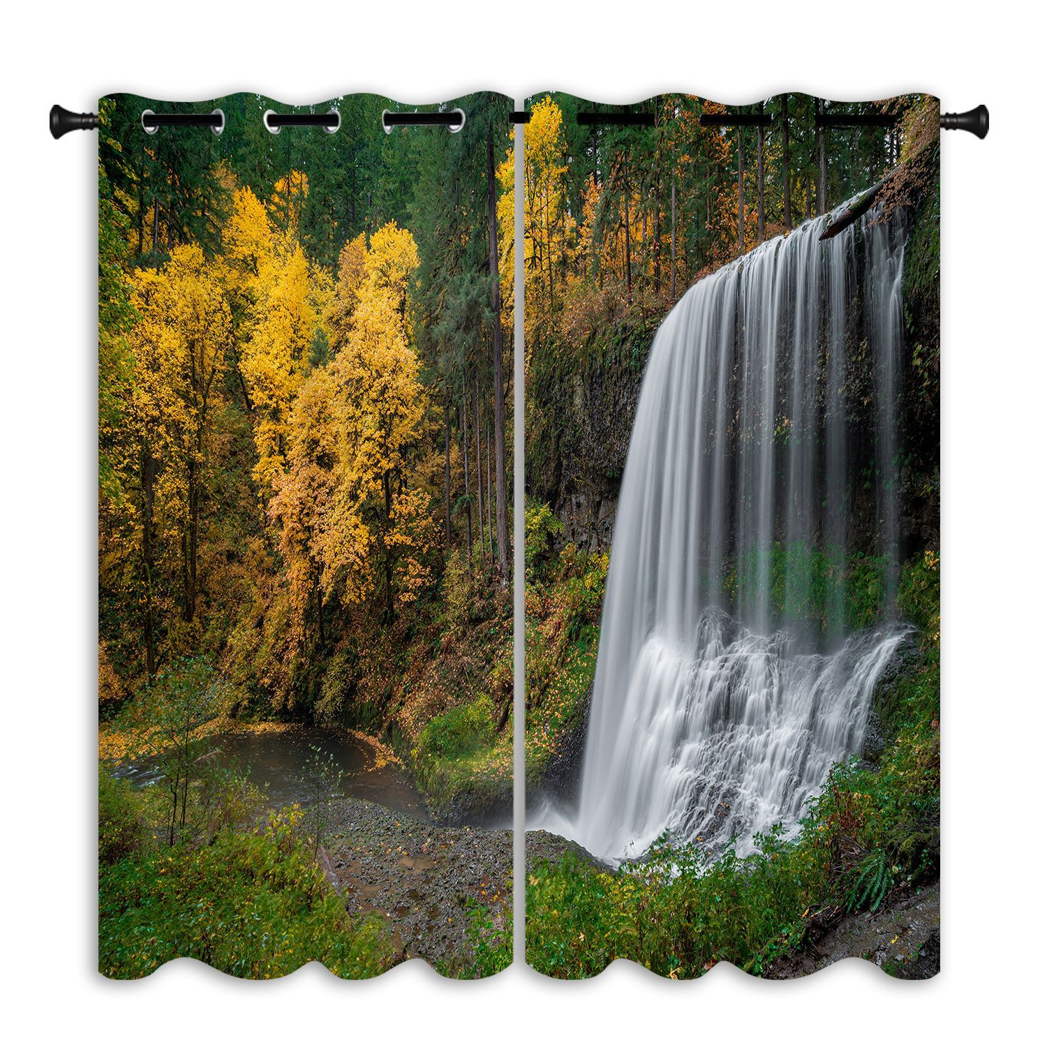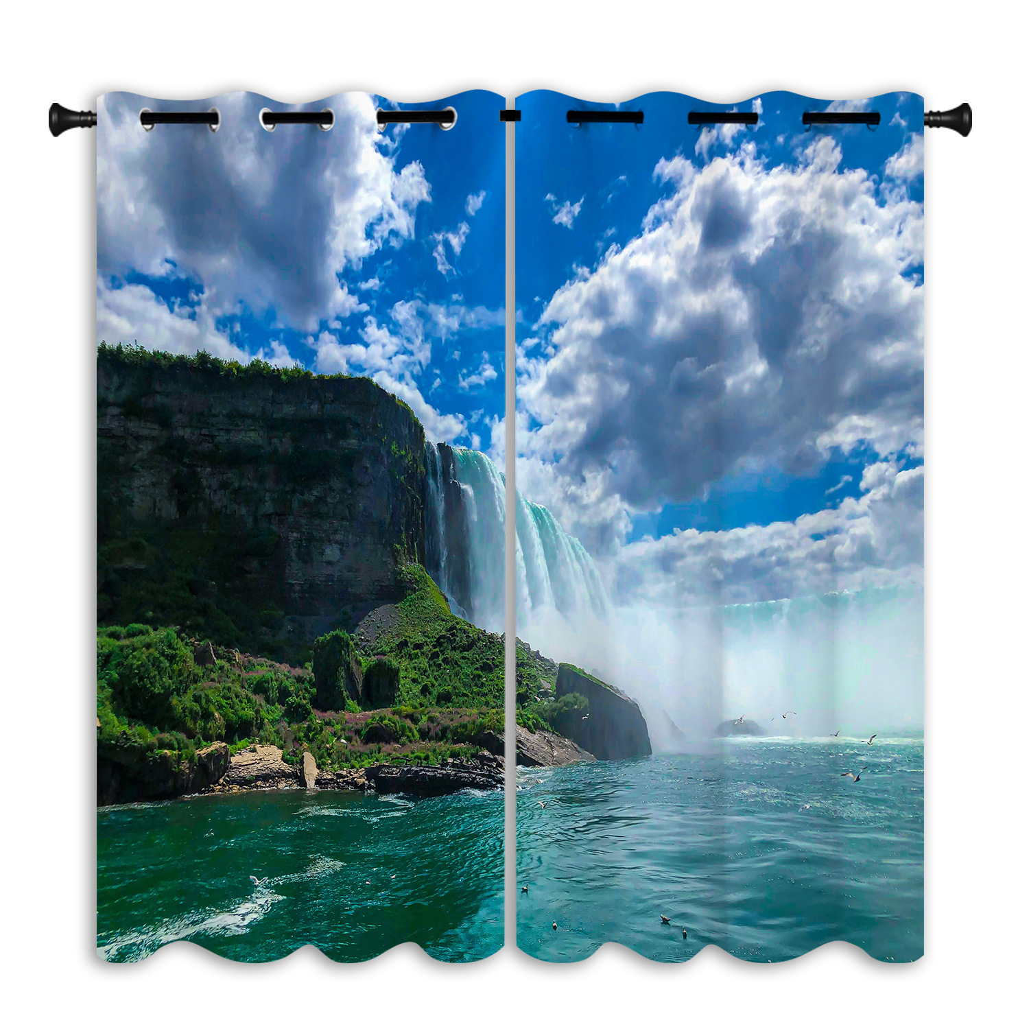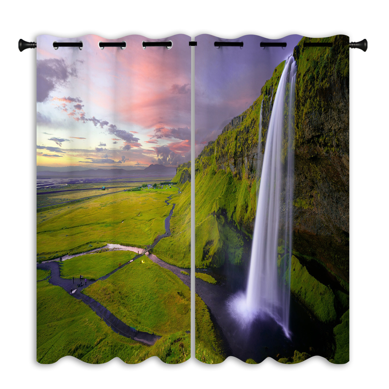 跨境亚马逊户外瀑布背景防水窗帘成品窗帘隔断帘防晒打孔布艺窗帘