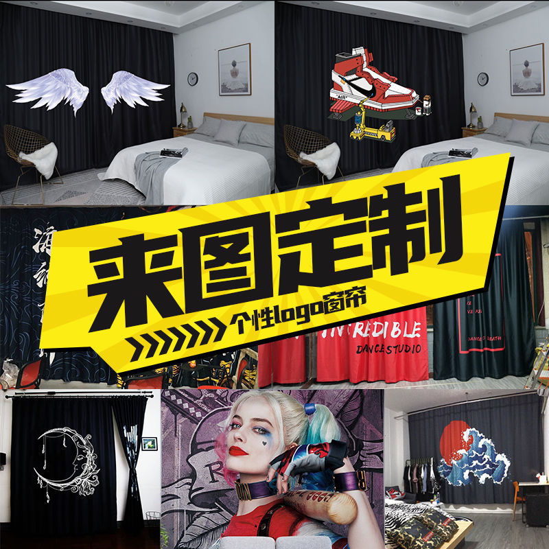 来图定制数码印花窗帘卡通动漫潮流遮光布成品现代卧室客厅落地窗
